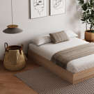 S'inspirant des esthétiques zen, ce lit arbore une finition en chêne lisse qui enveloppe gracieusement votre matelas.