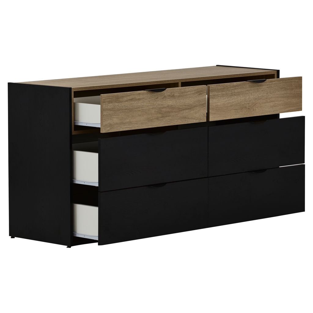 Cette commode double transformera votre espace avec son design bicolore raffiné. Ses six tiroirs spacieux offrent un rangement optimal pour tous vos essentiels, tandis que les poignées intégrées créent des lignes épurées et modernes.