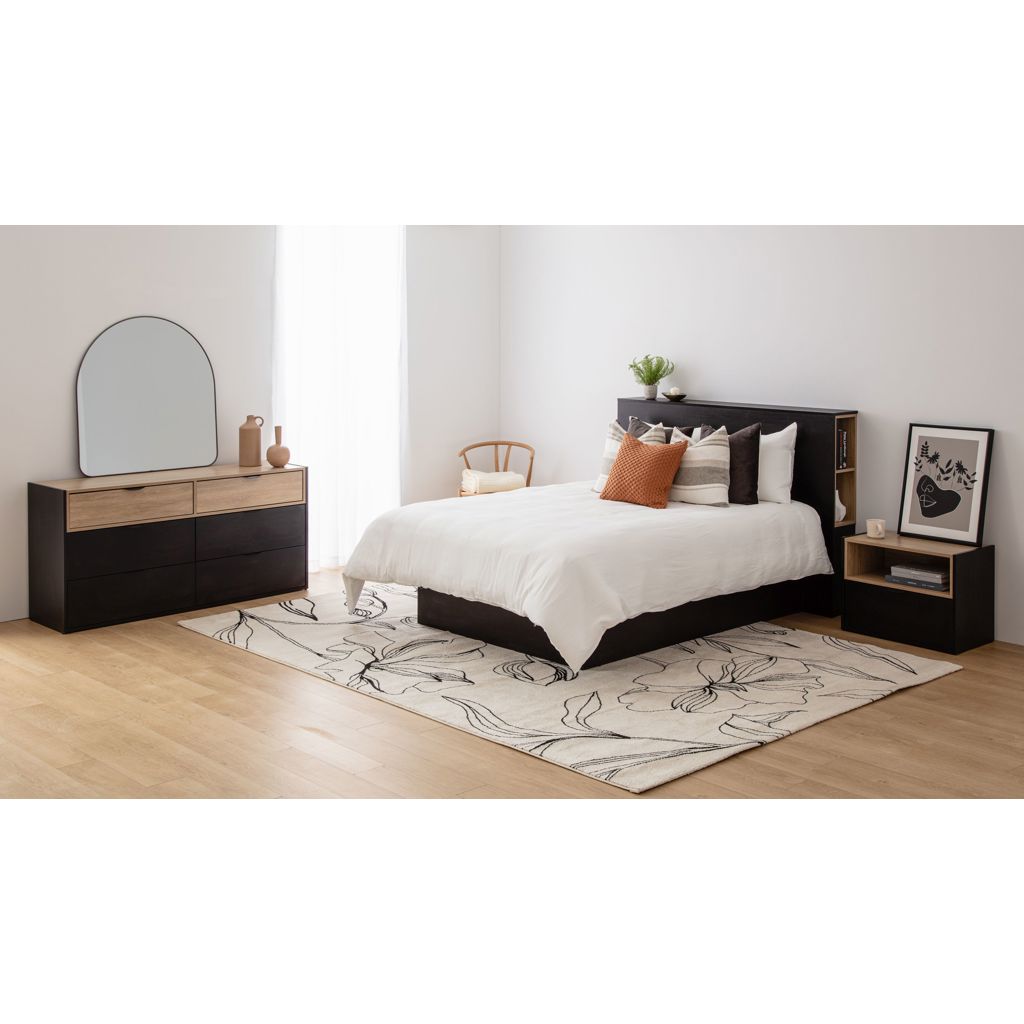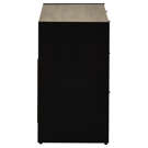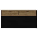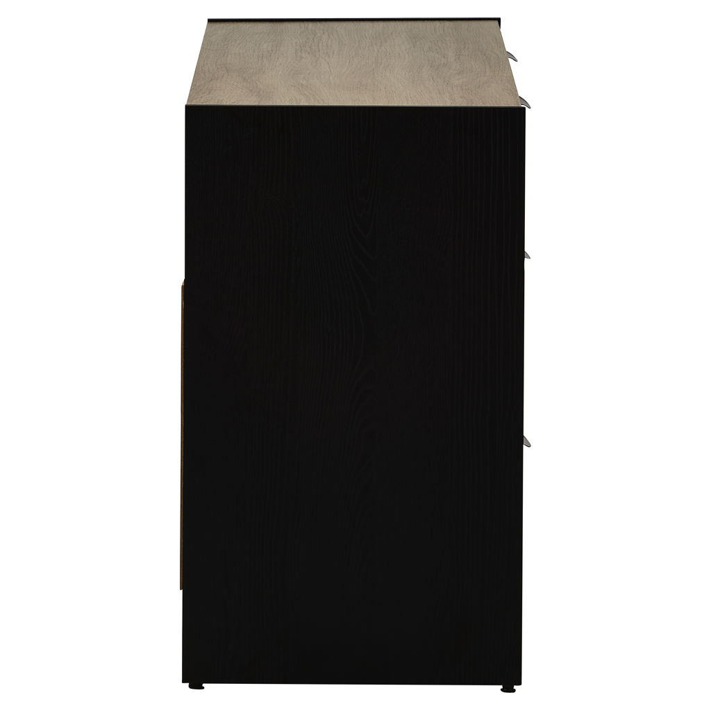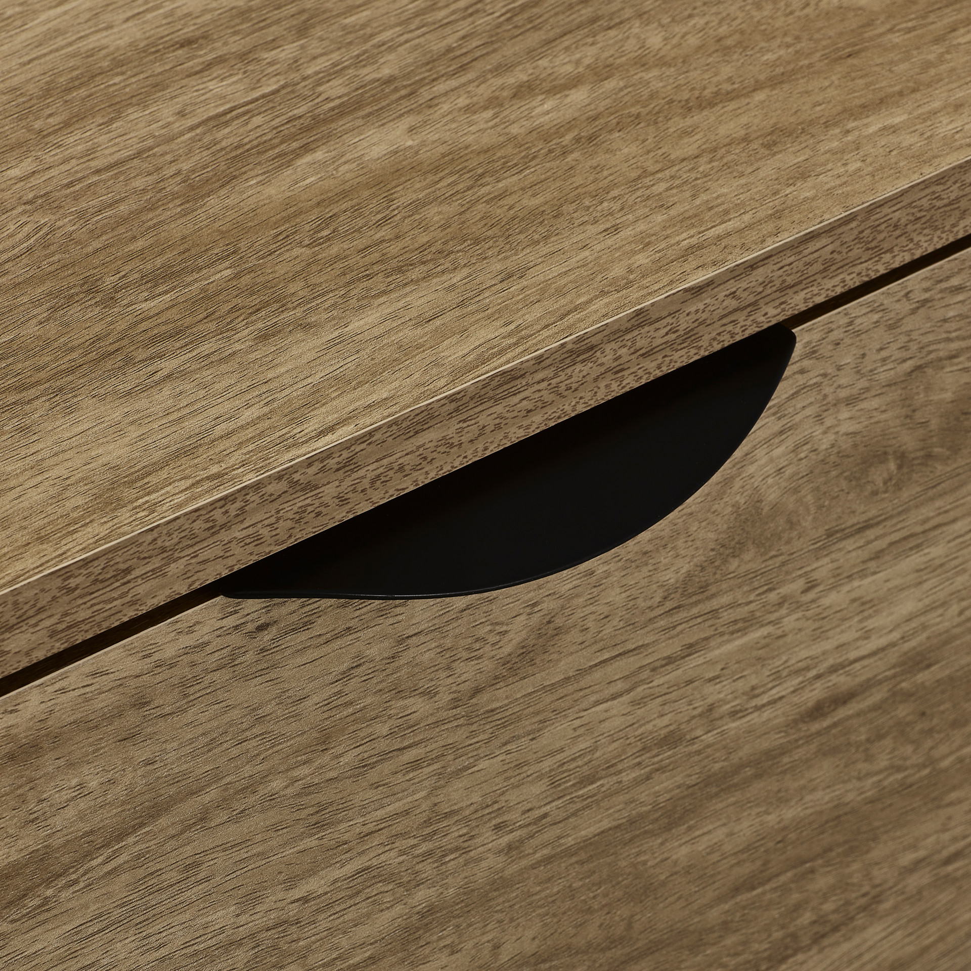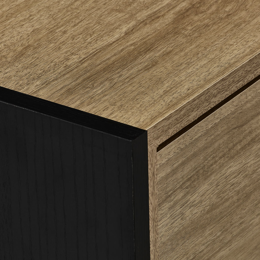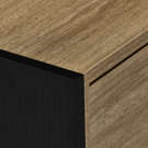 La combinaison de teintes bois naturel et noir mat apporte chaleur et sophistication à votre décor. Les tiroirs glissent en douceur grâce à leurs rails de qualité, assurant une utilisation agréable au quotidien.