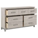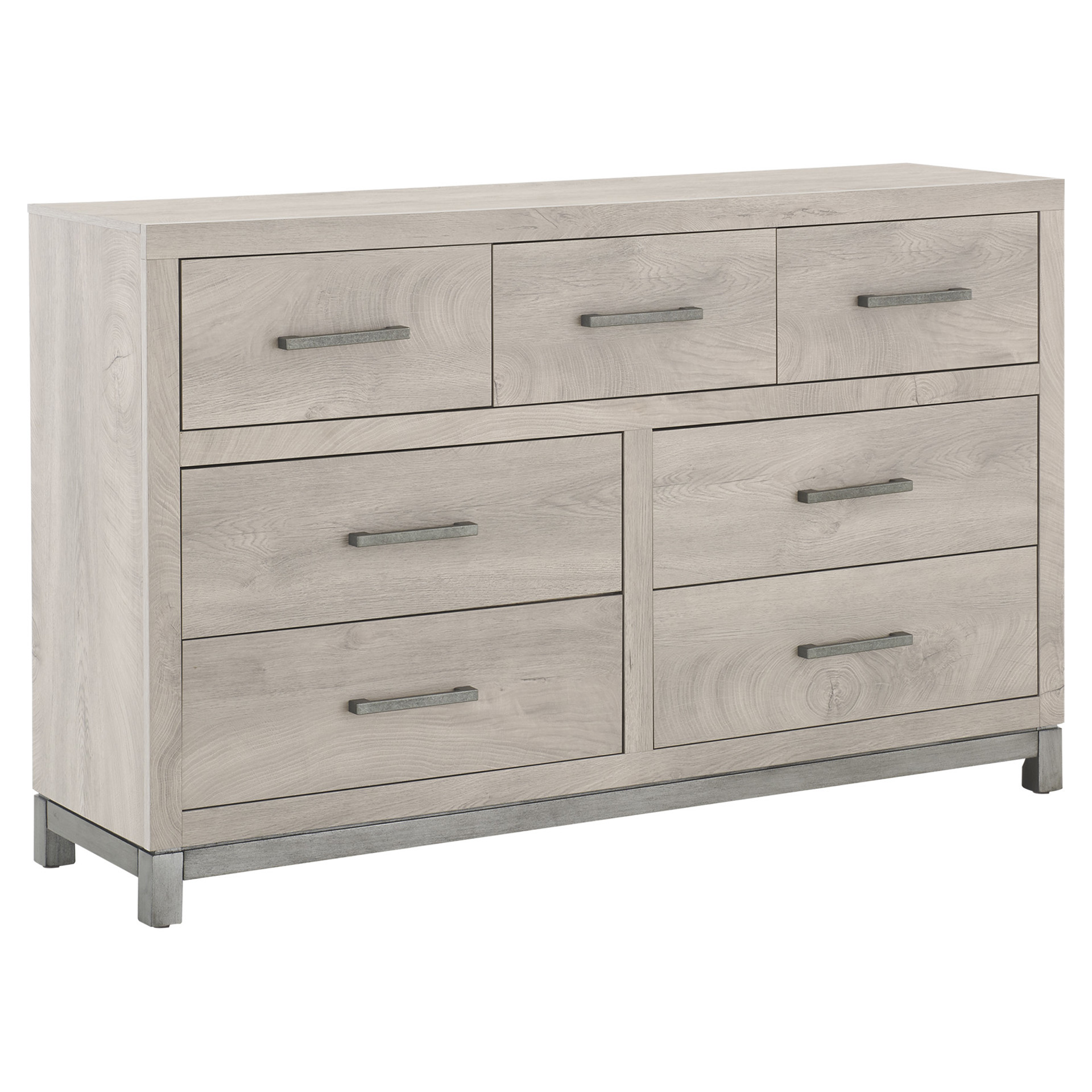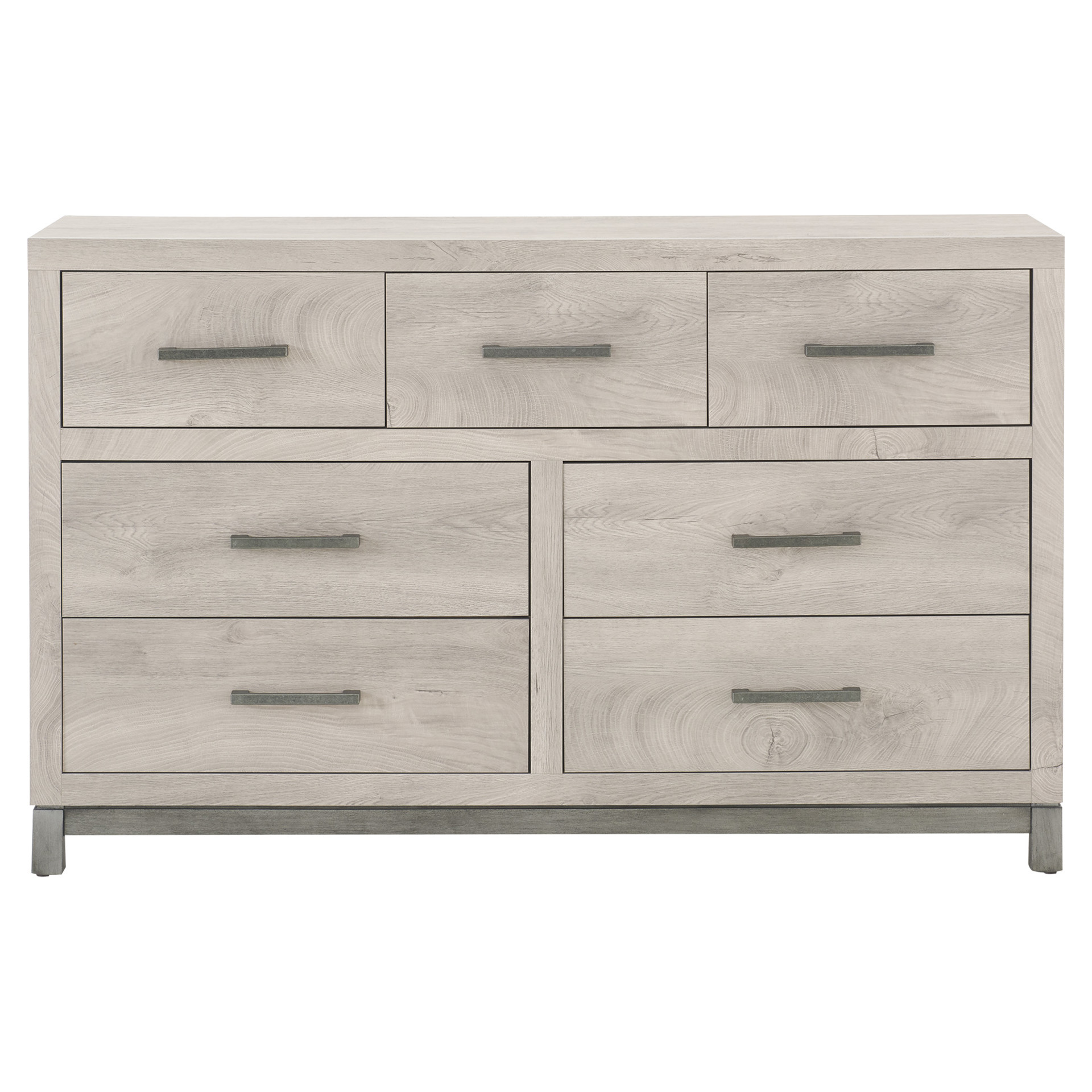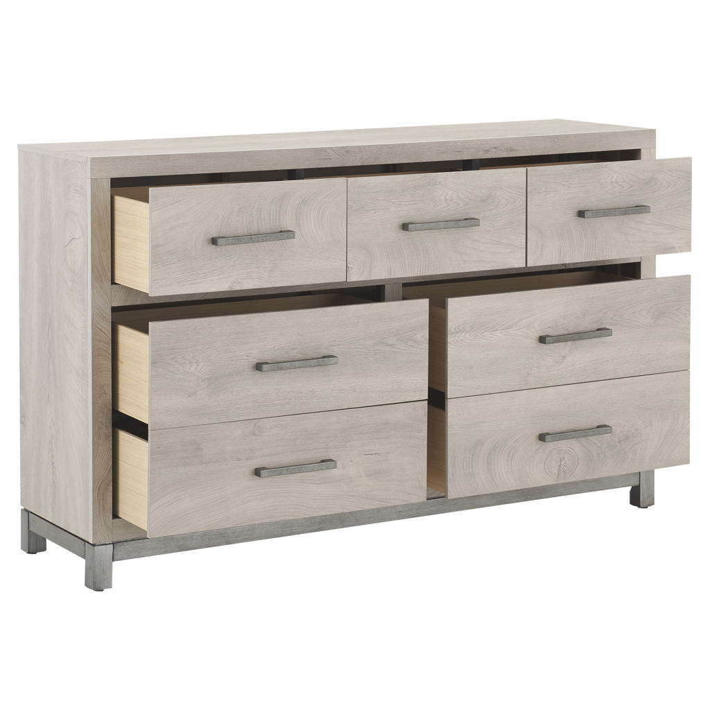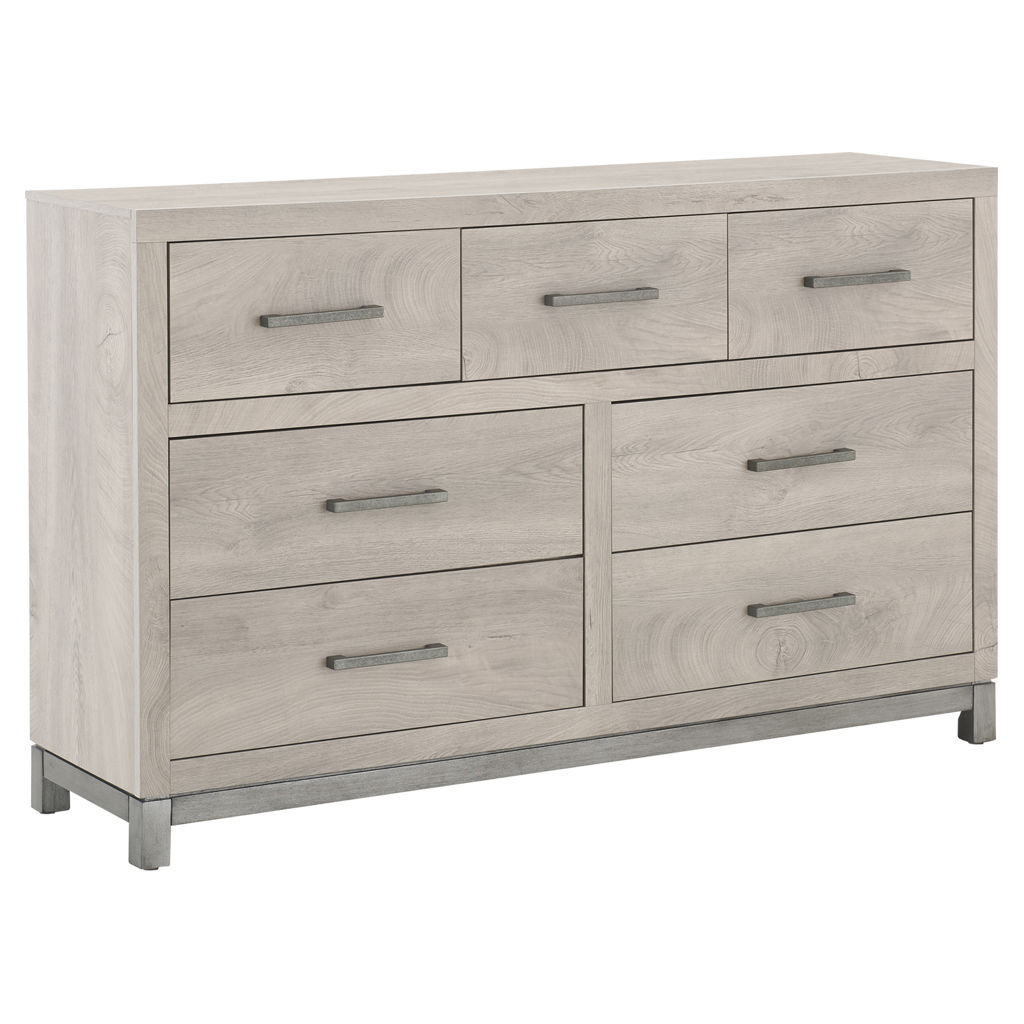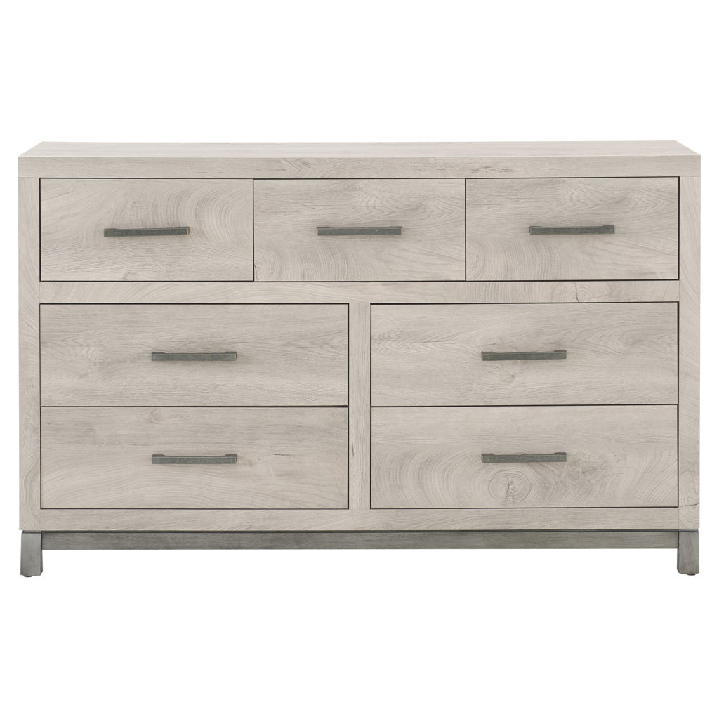 Cette commode double de 7 tiroirs transforme votre chambre en un havre d'ordre et de sérénité. Son fini clair apporte luminosité et douceur à votre décor, tandis que ses poignées métalliques ajoutent une touche de raffinement discret.