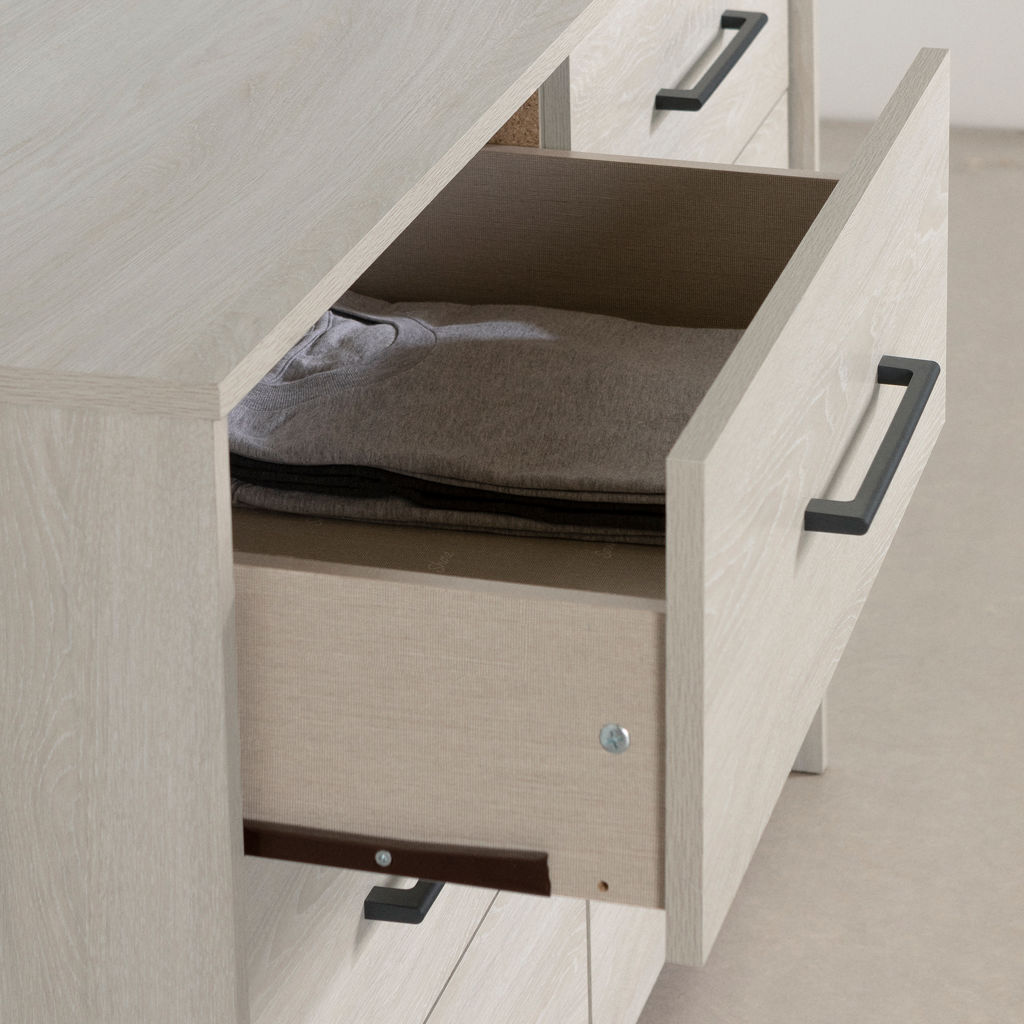Facilitez votre organisation en rangeant vos vêtements par catégorie dans ces 6 grands tiroirs. Montés sur coulisses de métal, chaque tiroir peut supporter une charge allant jusqu’à 25 livres.