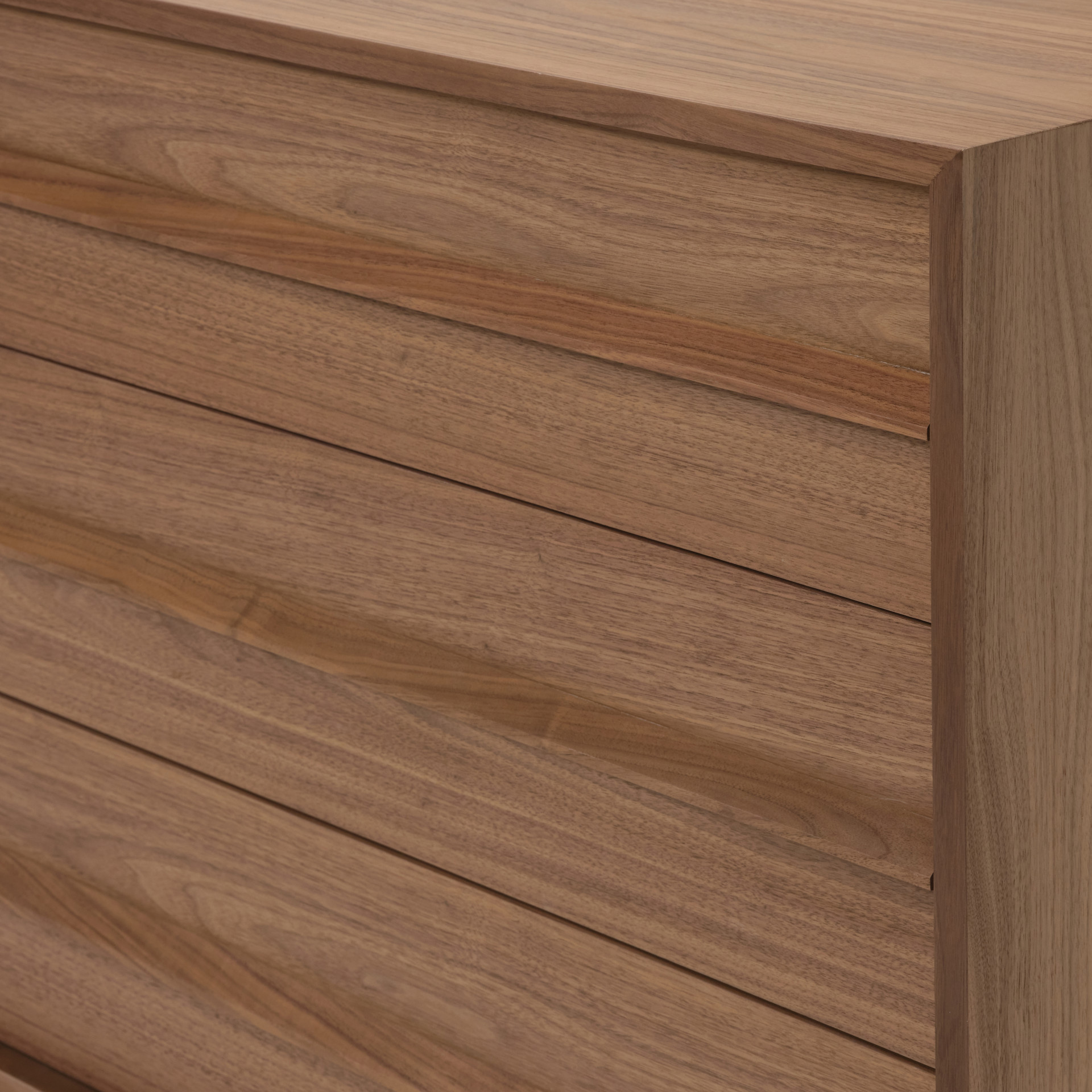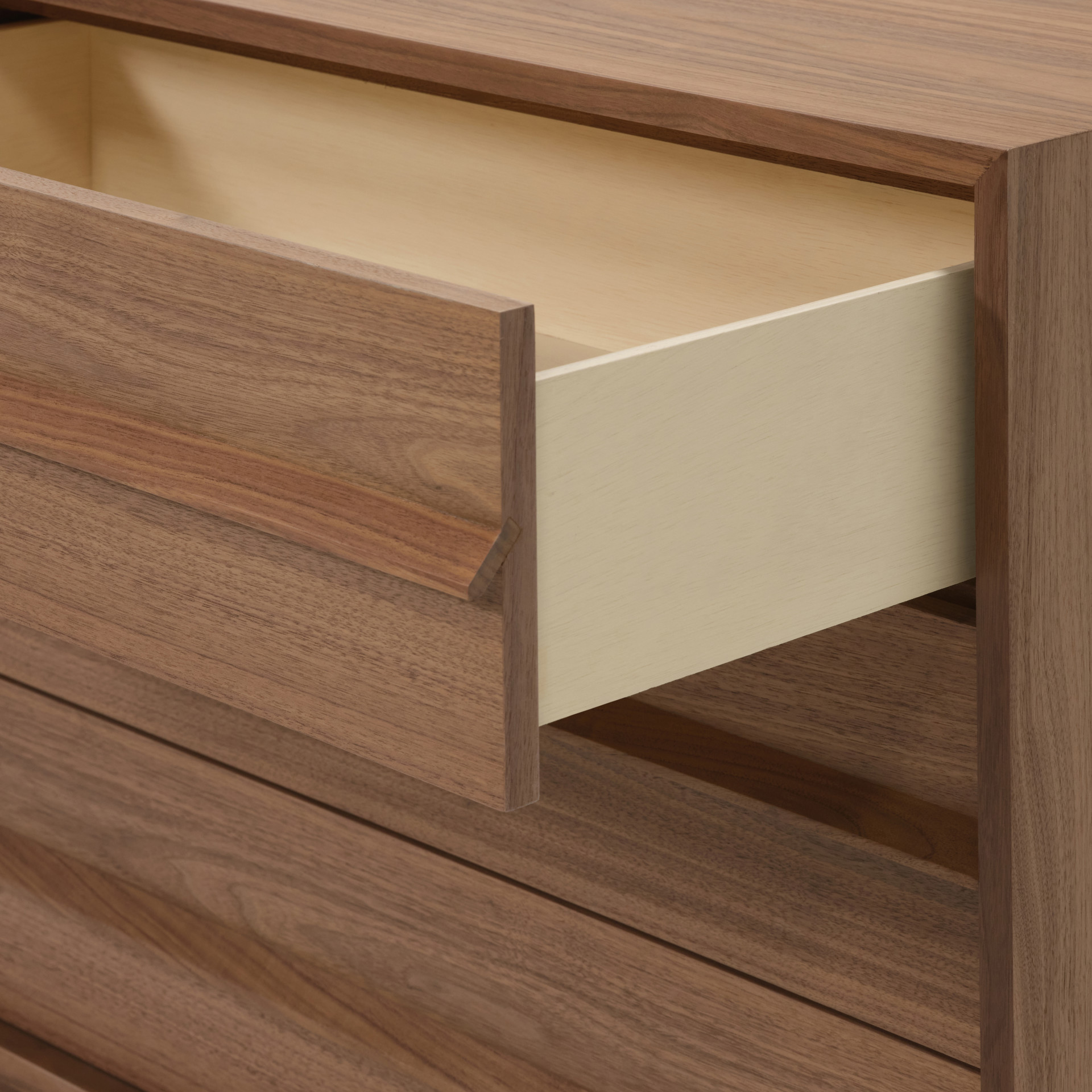 • La finition noyer comprend des glissières de tiroir encastrées à simple extension ¾, à fermeture douce.