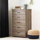 Ordonnez votre linge en séparant vos vêtements par catégorie dans les 5 tiroirs pratiques de cette commode. Chaque tiroir peut supporter un poids allant jusqu’à 25 livres dû à la rigidité des coulisses en métal. En plus de pouvoir facilement classer vos fringues, ce meuble de rangement prend moins d’espace dans la chambre à coucher qu’une commode fait sur le long.