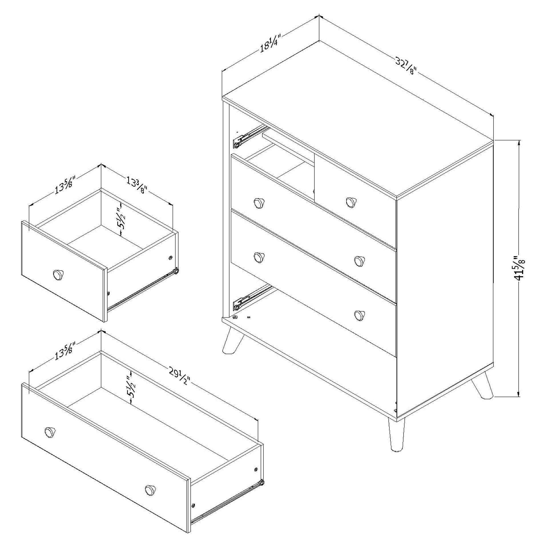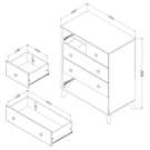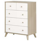 Les 3 tiroirs du bas sont assez spacieux pour contenir tous les vêtements ainsi que la literie, alors que les 2 tiroirs du haut, côte à côte, sont parfaits pour les accessoires, les chaussettes et les sous-vêtements.