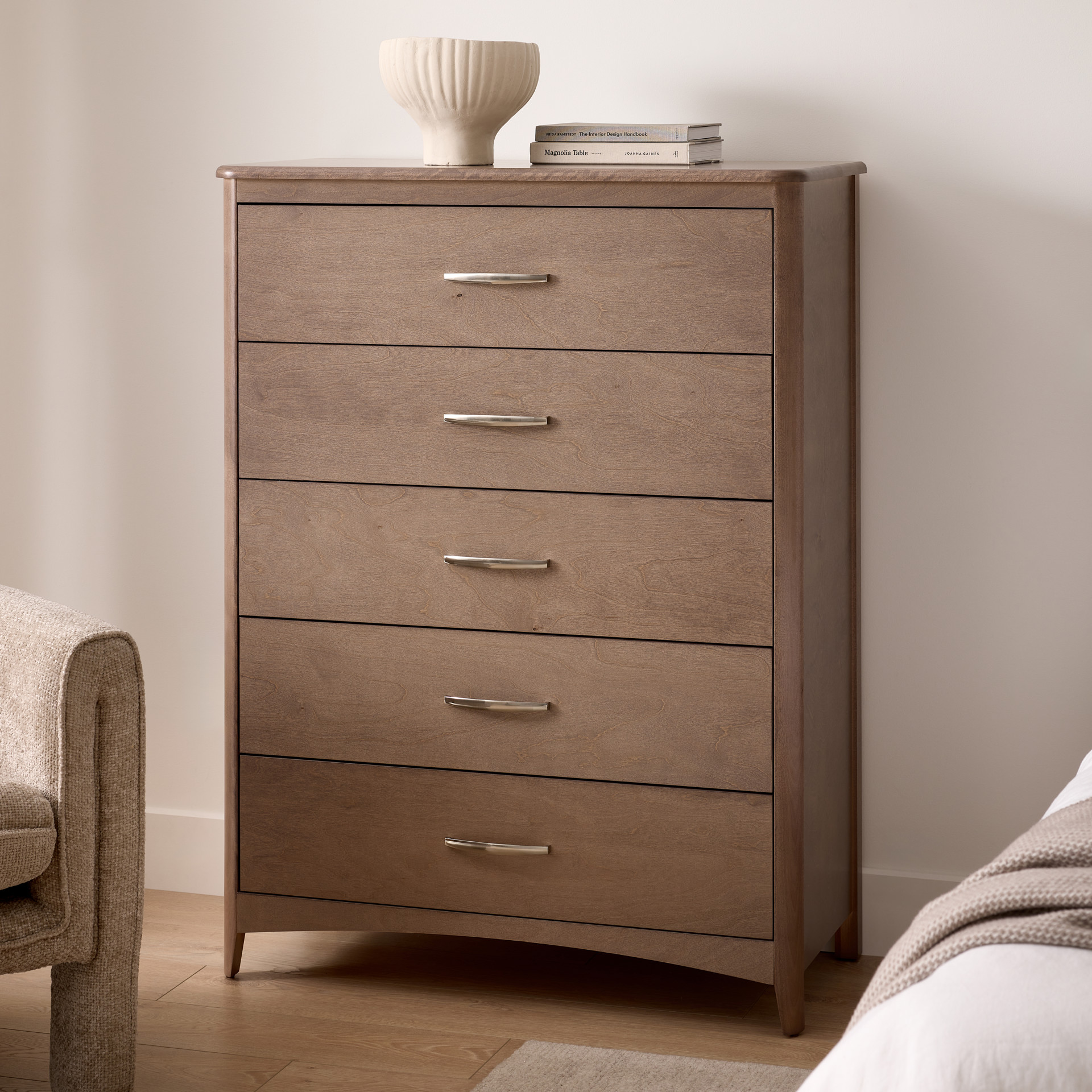 Sa construction en bois et sa finition chaleureuse apportent une touche raffinée, tandis que ses cinq tiroirs spacieux permettent d’organiser facilement vêtements et accessoires.