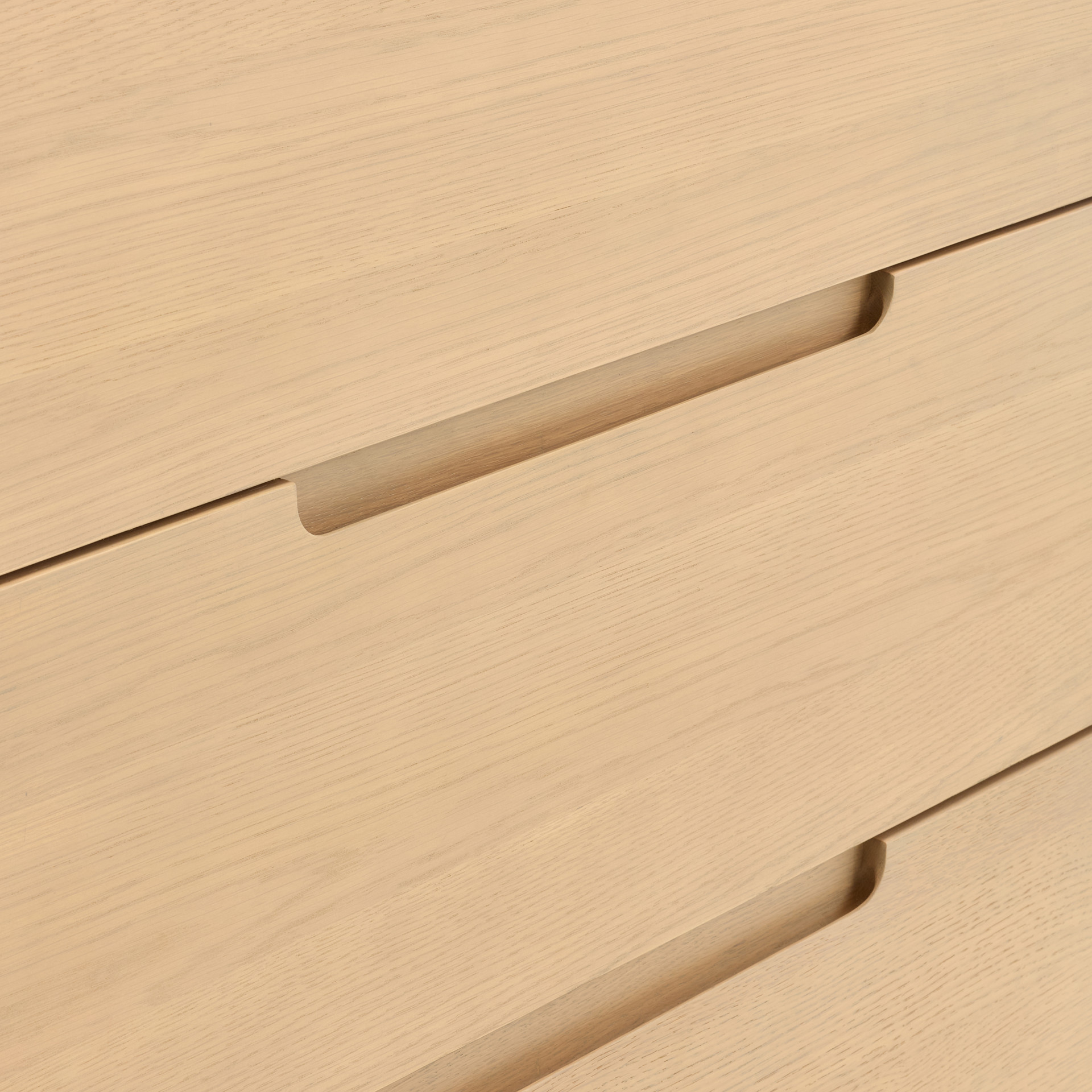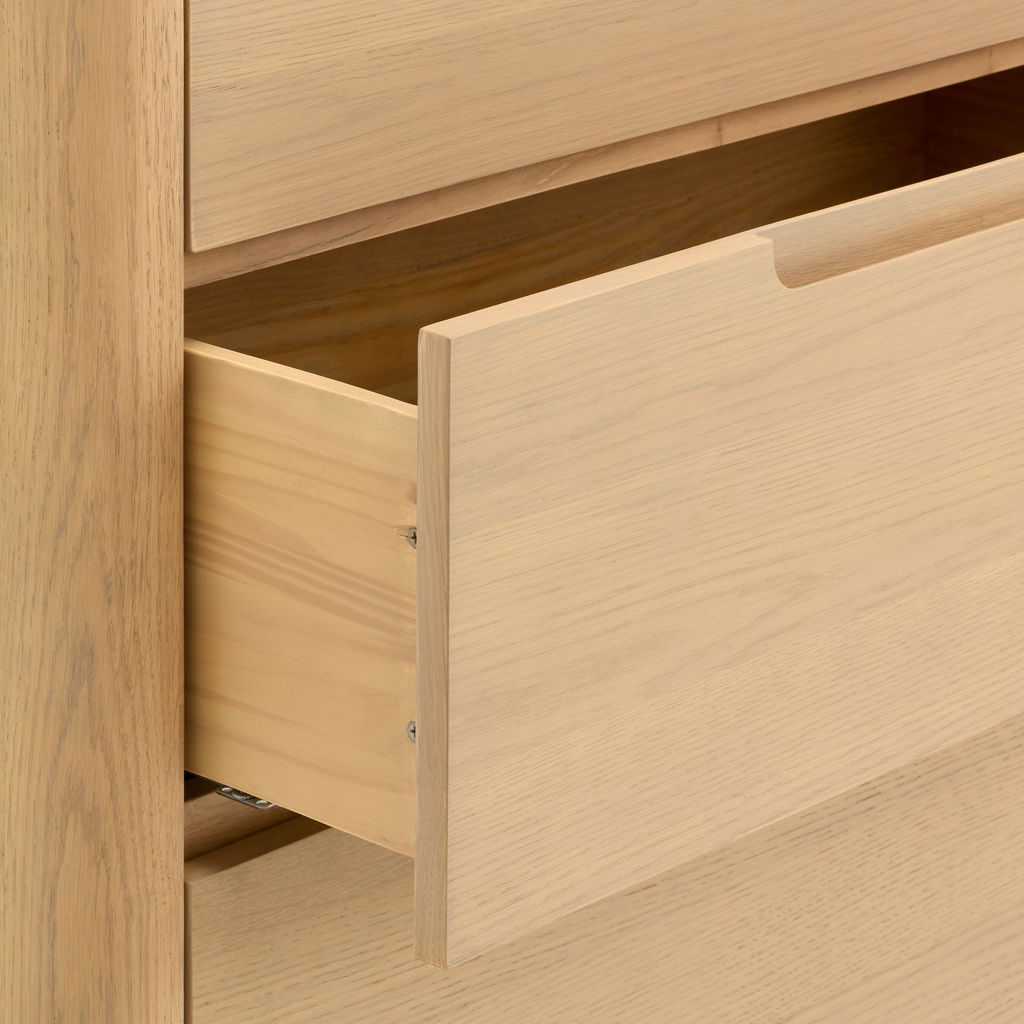 Commode haute Nori 4 tiroirs en bois de chêne blanc naturel