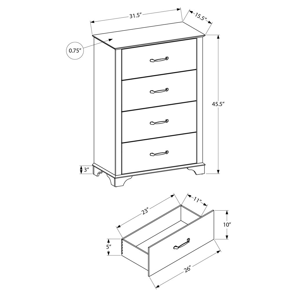 Voici cette élégante commode à 4 tiroirs qui allie design transitionnel et fonctionnalité inégalée, offrant une solution de rangement sophistiquée pour la chambre.