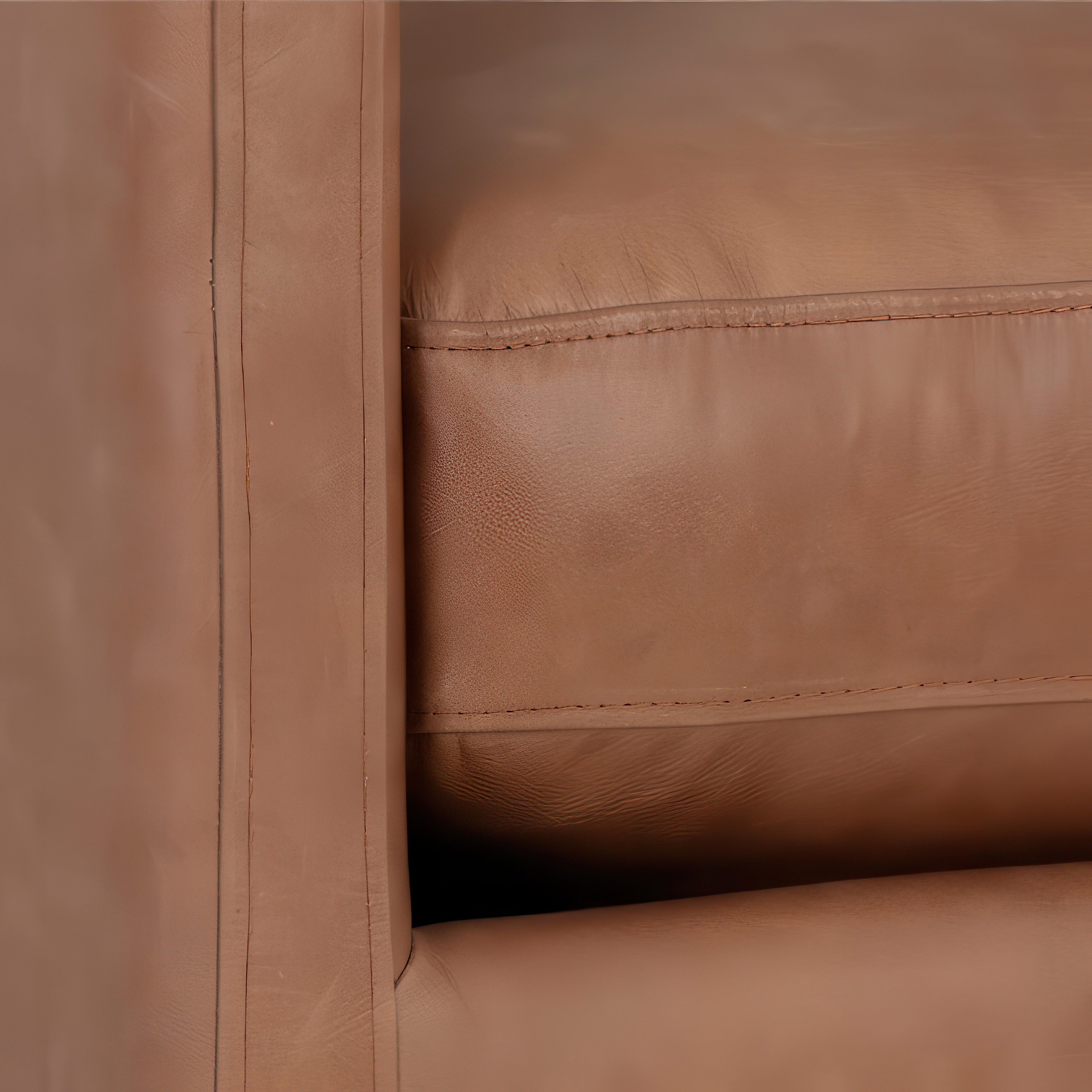 Ses lignes épurées et sa silhouette généreuse s'adaptent parfaitement aux intérieurs modernes comme classiques. Le cuir noble patinera avec le temps, lui conférant un caractère unique et authentique. Sa base solide assure une stabilité parfaite, tandis que ses proportions équilibrées invitent à la détente.