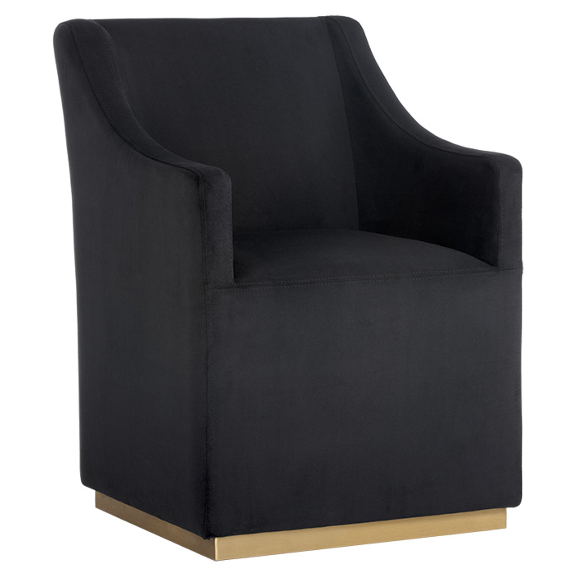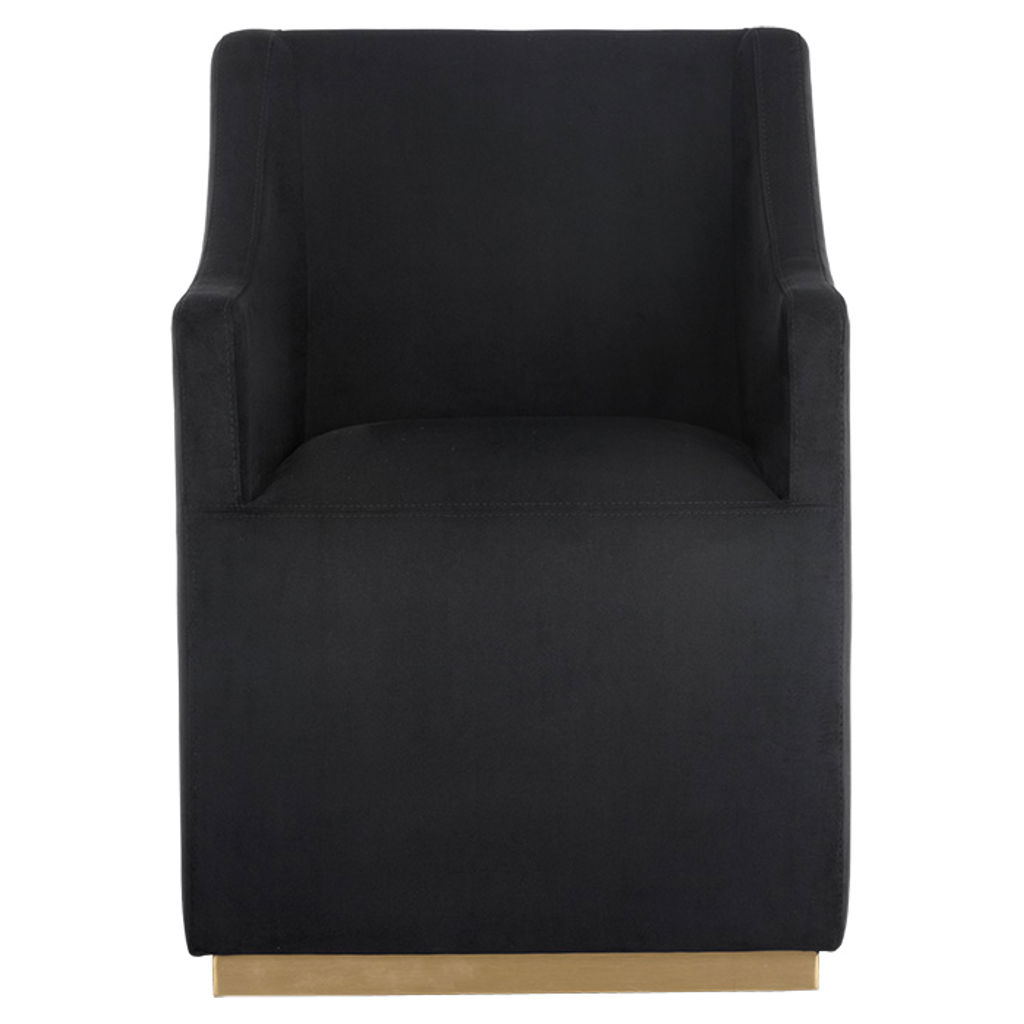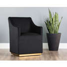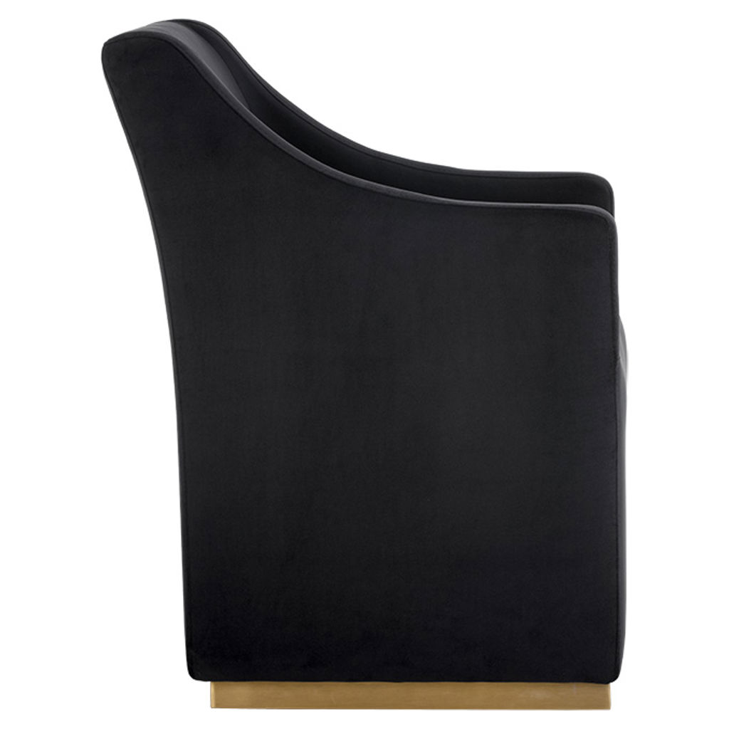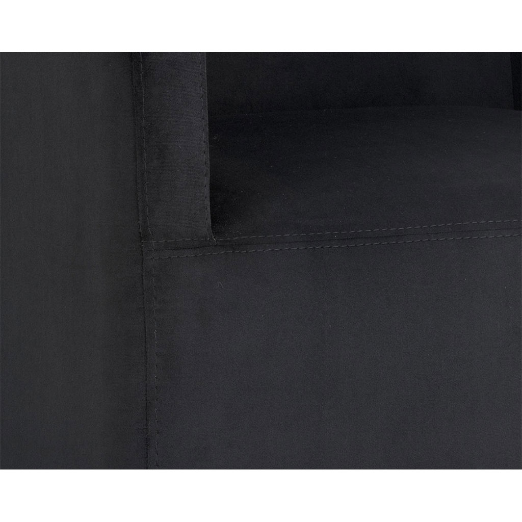 Avec son revêtement en tissu noir profond et sa base dorée élégante, le fauteuil d’appoint Zane se distingue par son allure chic et contemporaine.