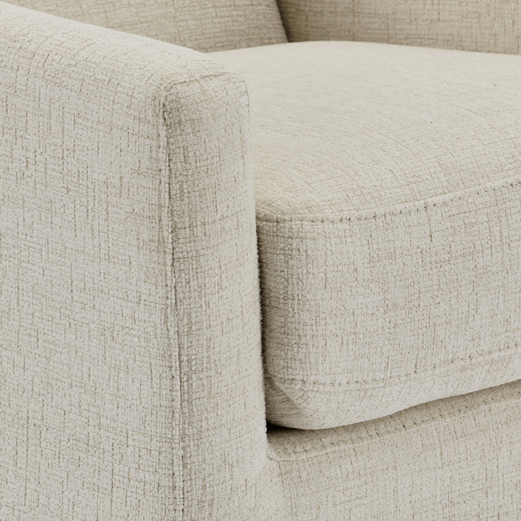 Découvrez le parfait équilibre entre confort et raffinement avec le fauteuil Pia. Son revêtement en tissu beige chiné apporte une douceur naturelle à votre intérieur, tandis que ses lignes épurées s'adaptent à tous les styles de décoration.
