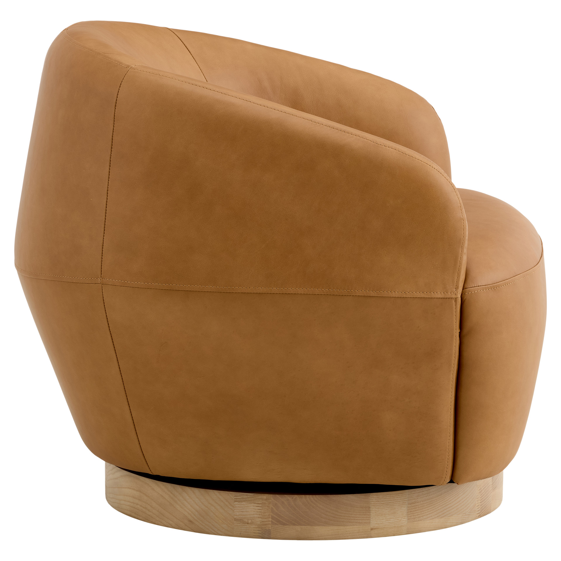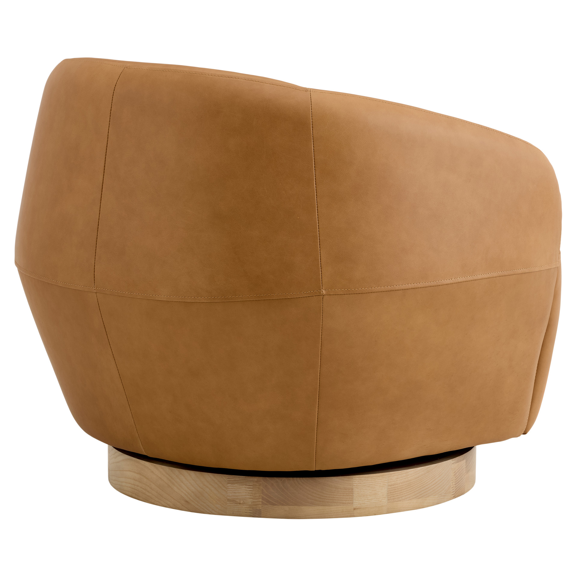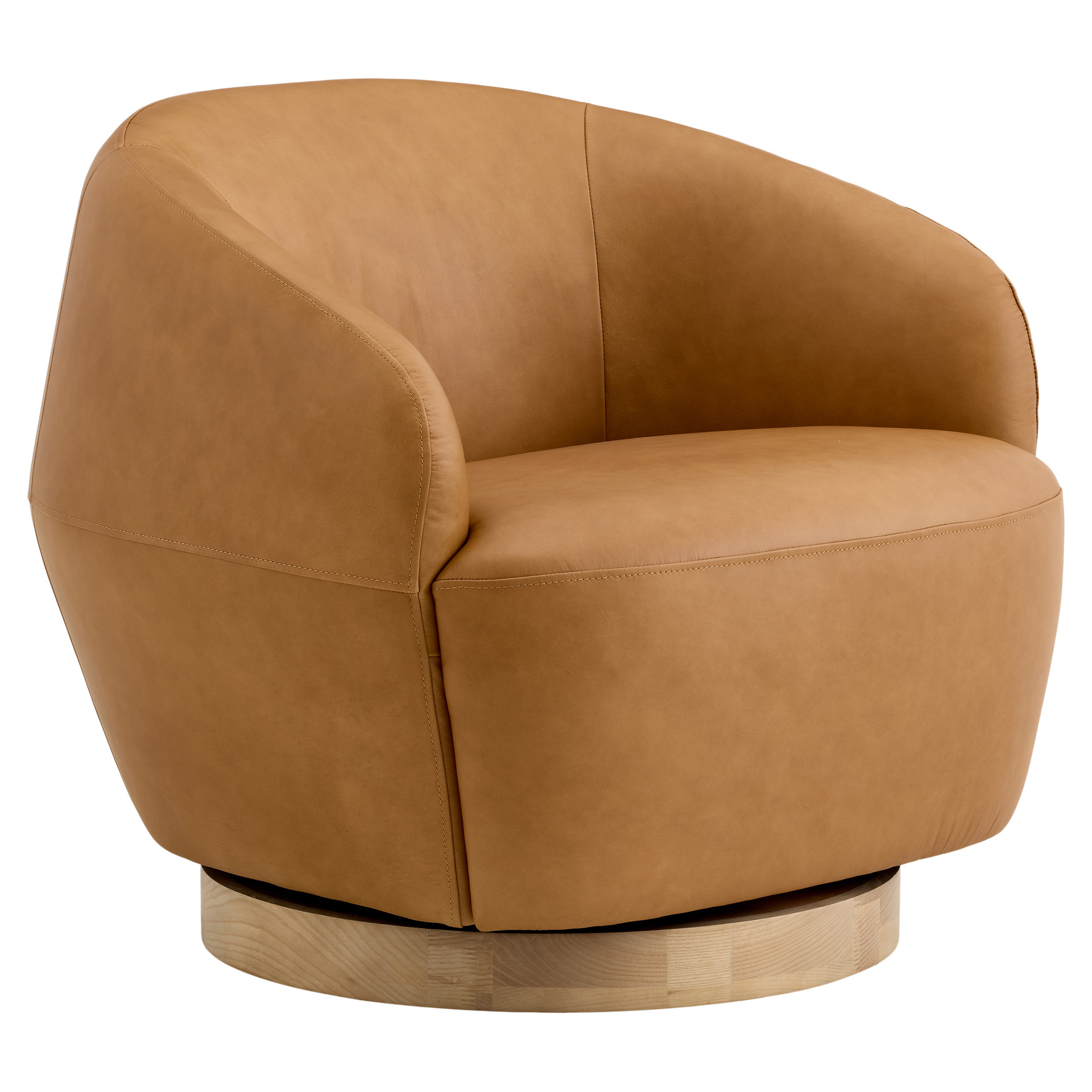 Prenez place avec style grâce à ce fauteuil pivotant en cuir design contemporain.