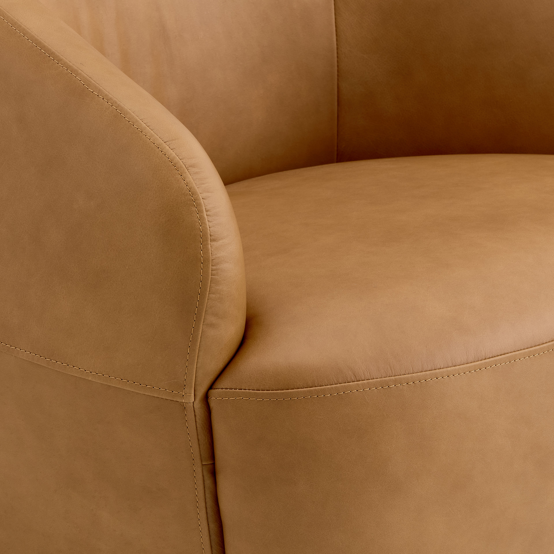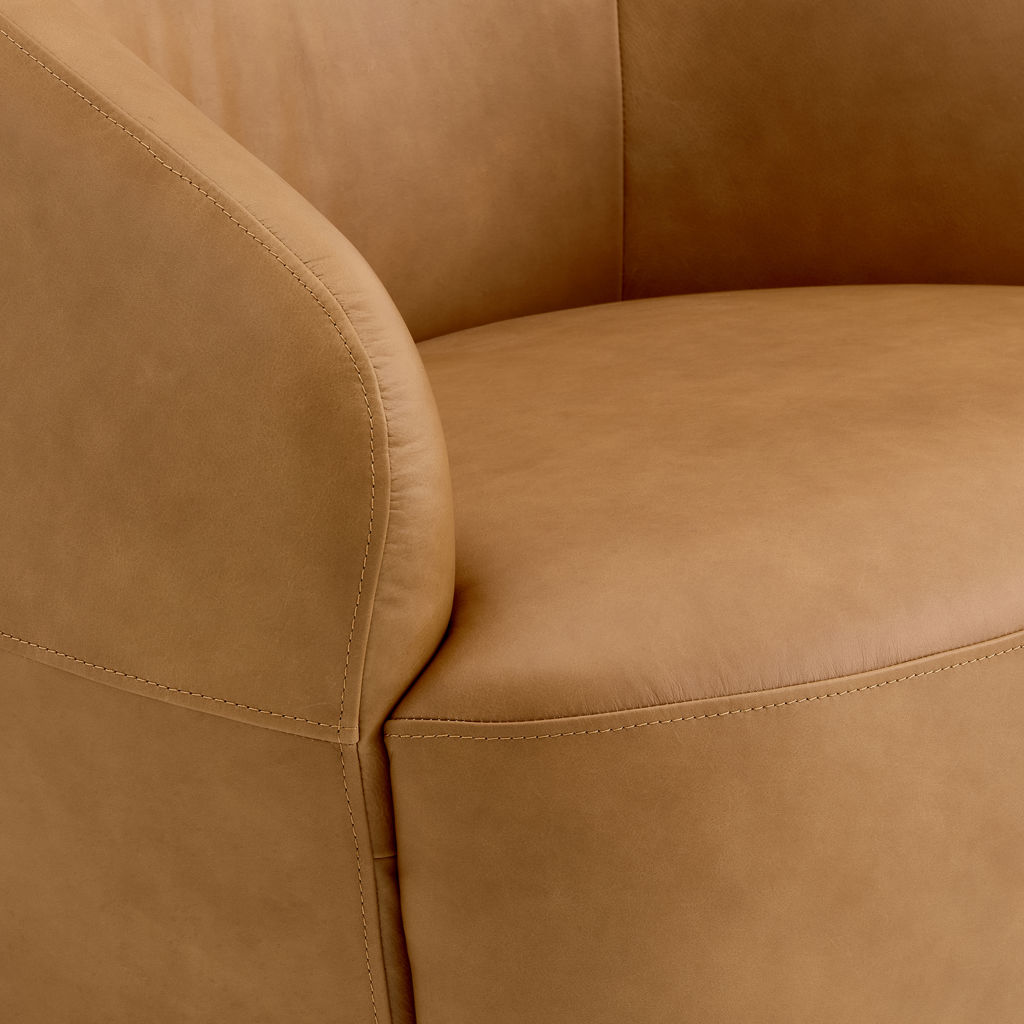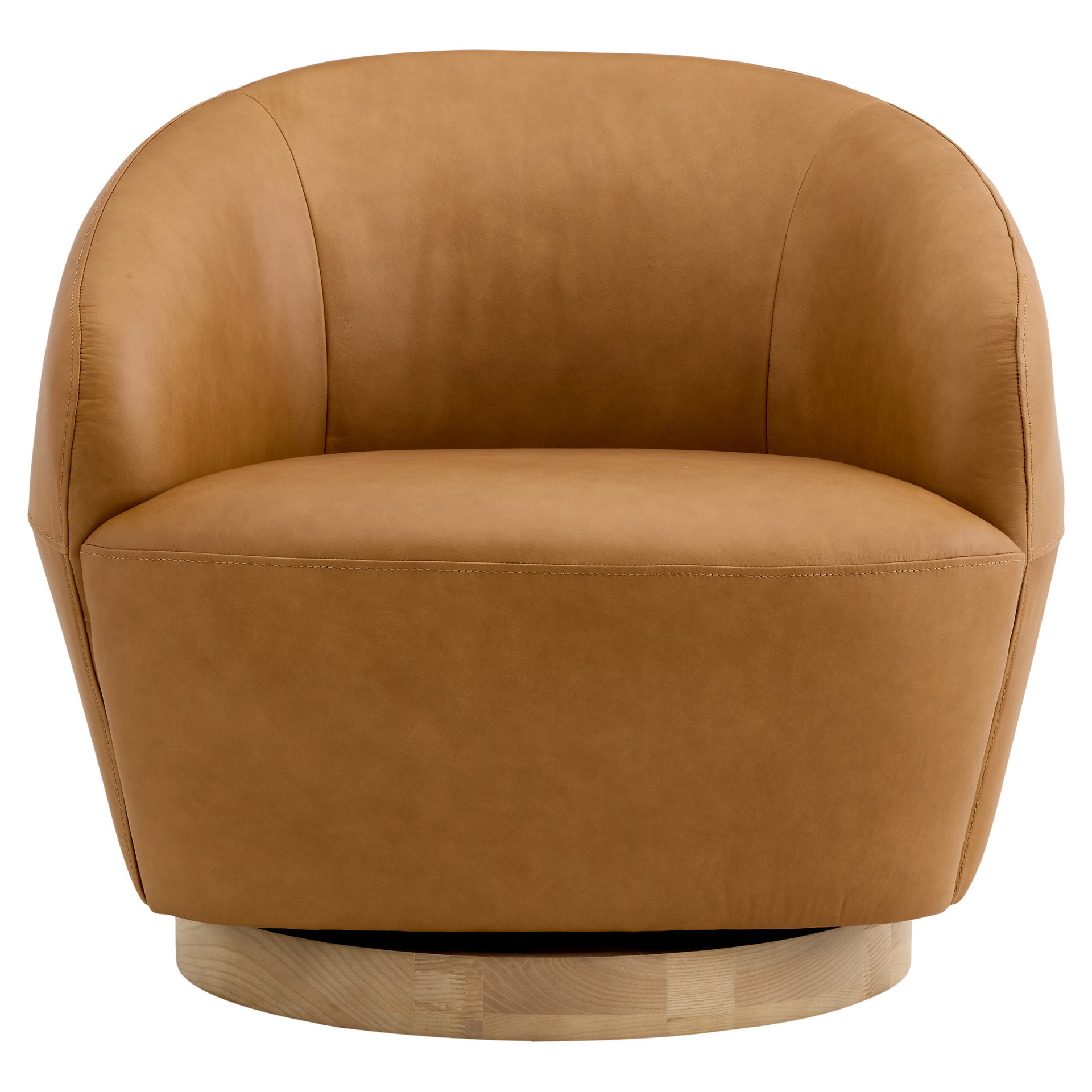 Prenez place avec style grâce à ce fauteuil pivotant en cuir design contemporain.