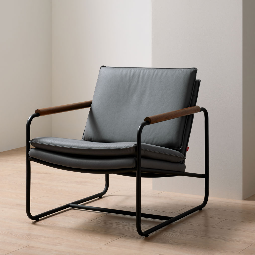 Des détails comme une structure en acier tubulaire et des accoudoirs en bois intégrés confèrent à Kelso une esthétique industrielle moderne et confiante qui est juxtaposée à des coussins de siège et de dossier délicats et tranchants qui offrent un endroit étonnamment confortable pour se détendre.