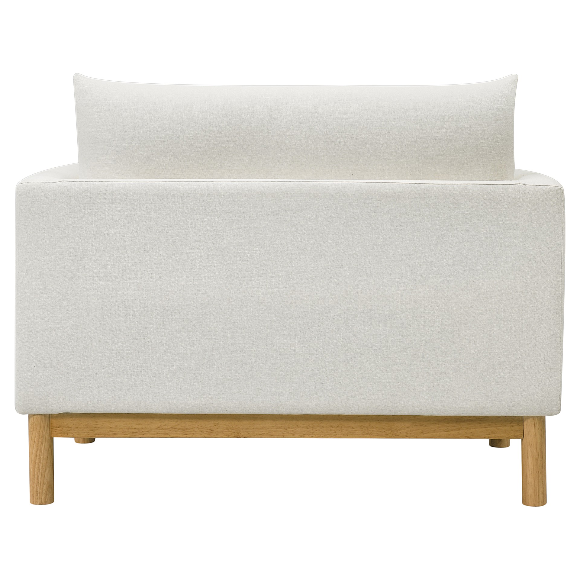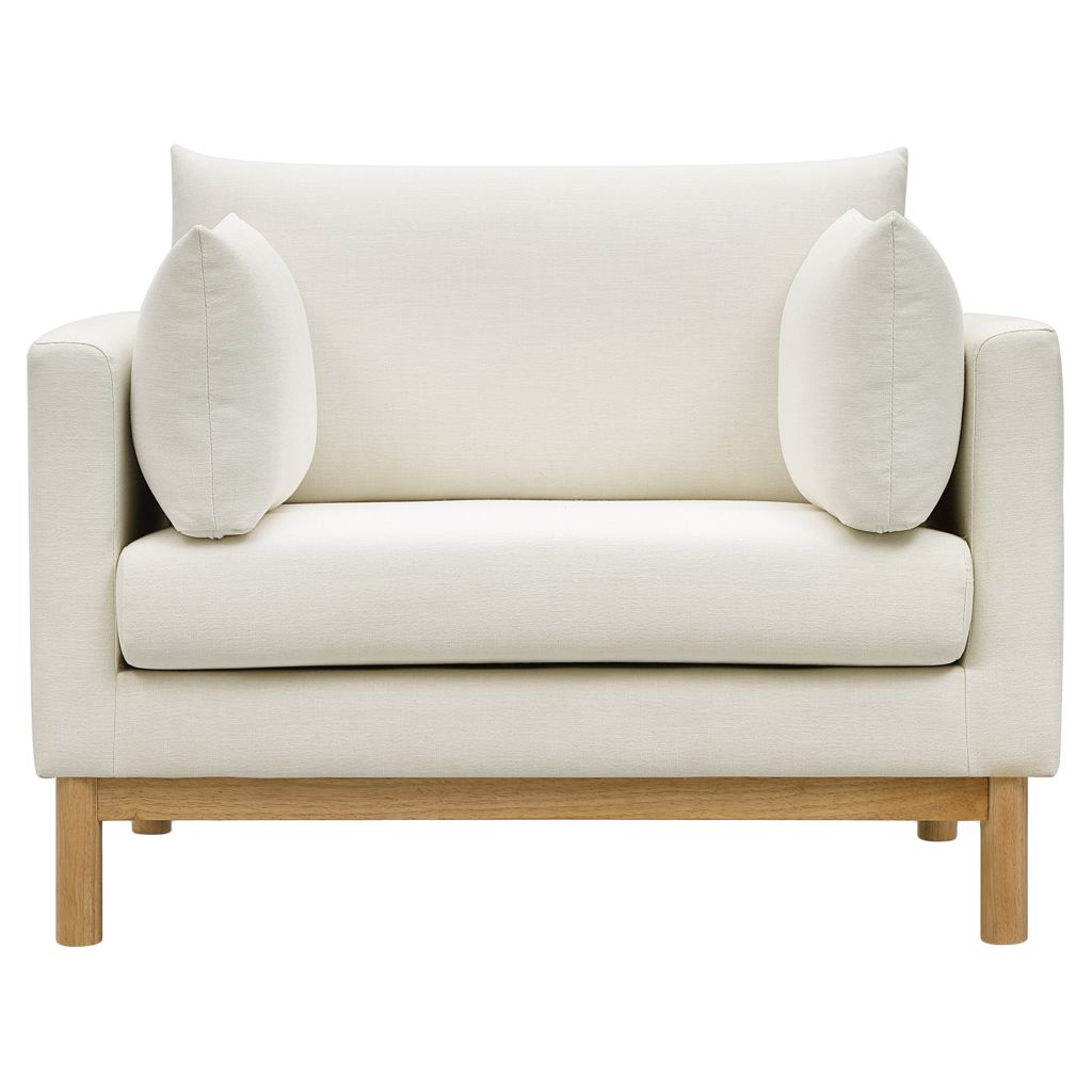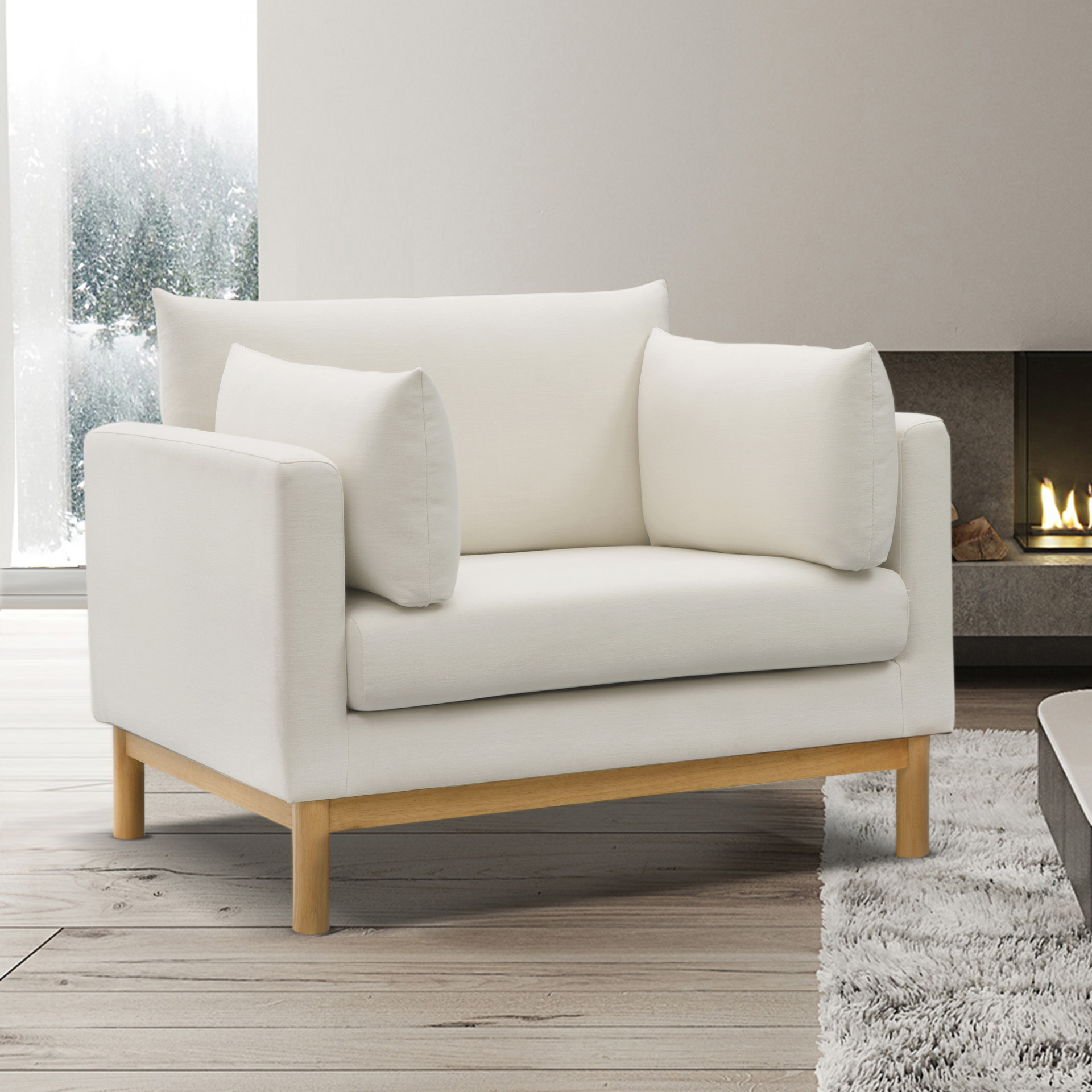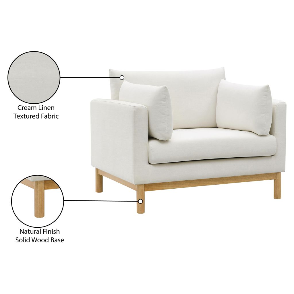 Le revêtement en tissu texturé en lin crème recouvre les côtés, le dossier et les coussins de la chaise, tandis que deux coussins moelleux de chaque côté en font une option d'assise très confortable que tout le monde adore.