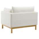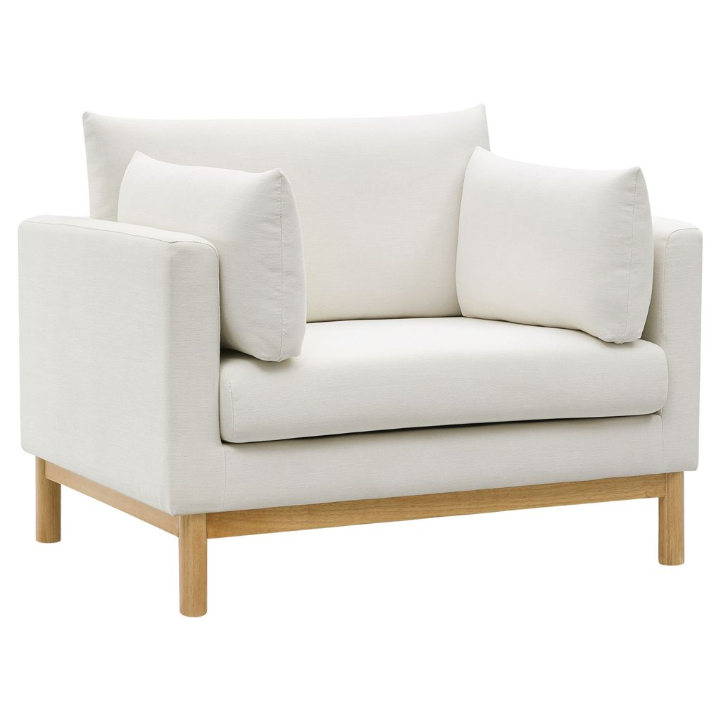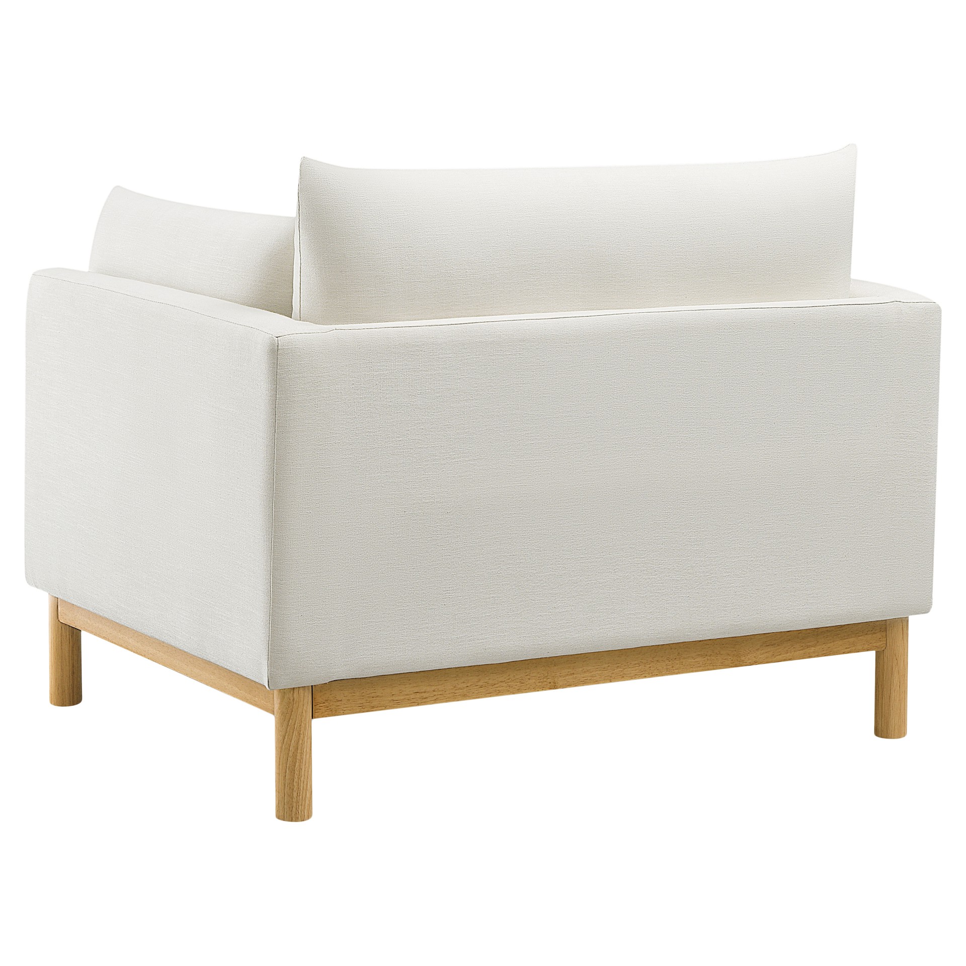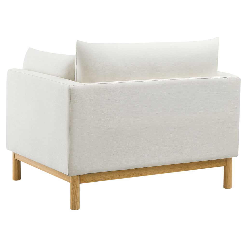 Le revêtement en tissu texturé en lin crème recouvre les côtés, le dossier et les coussins de la chaise, tandis que deux coussins moelleux de chaque côté en font une option d'assise très confortable que tout le monde adore.