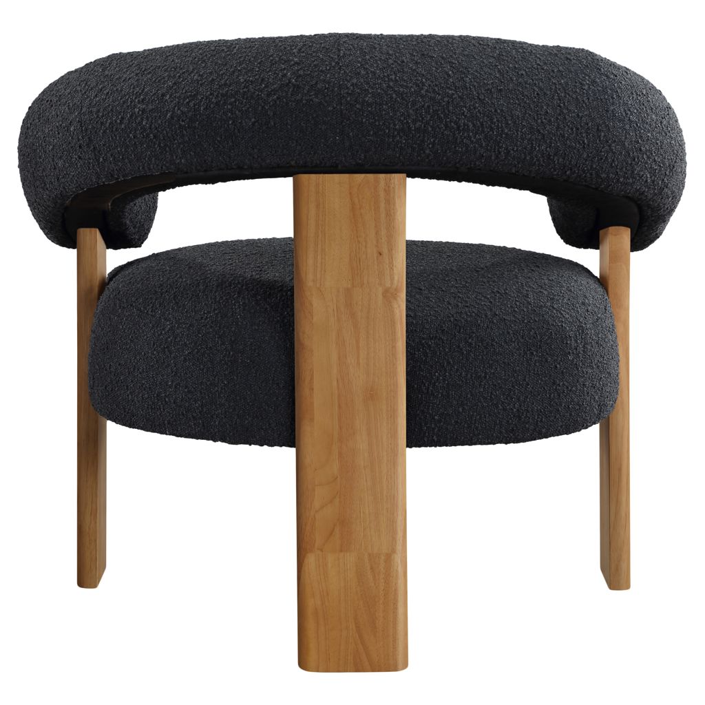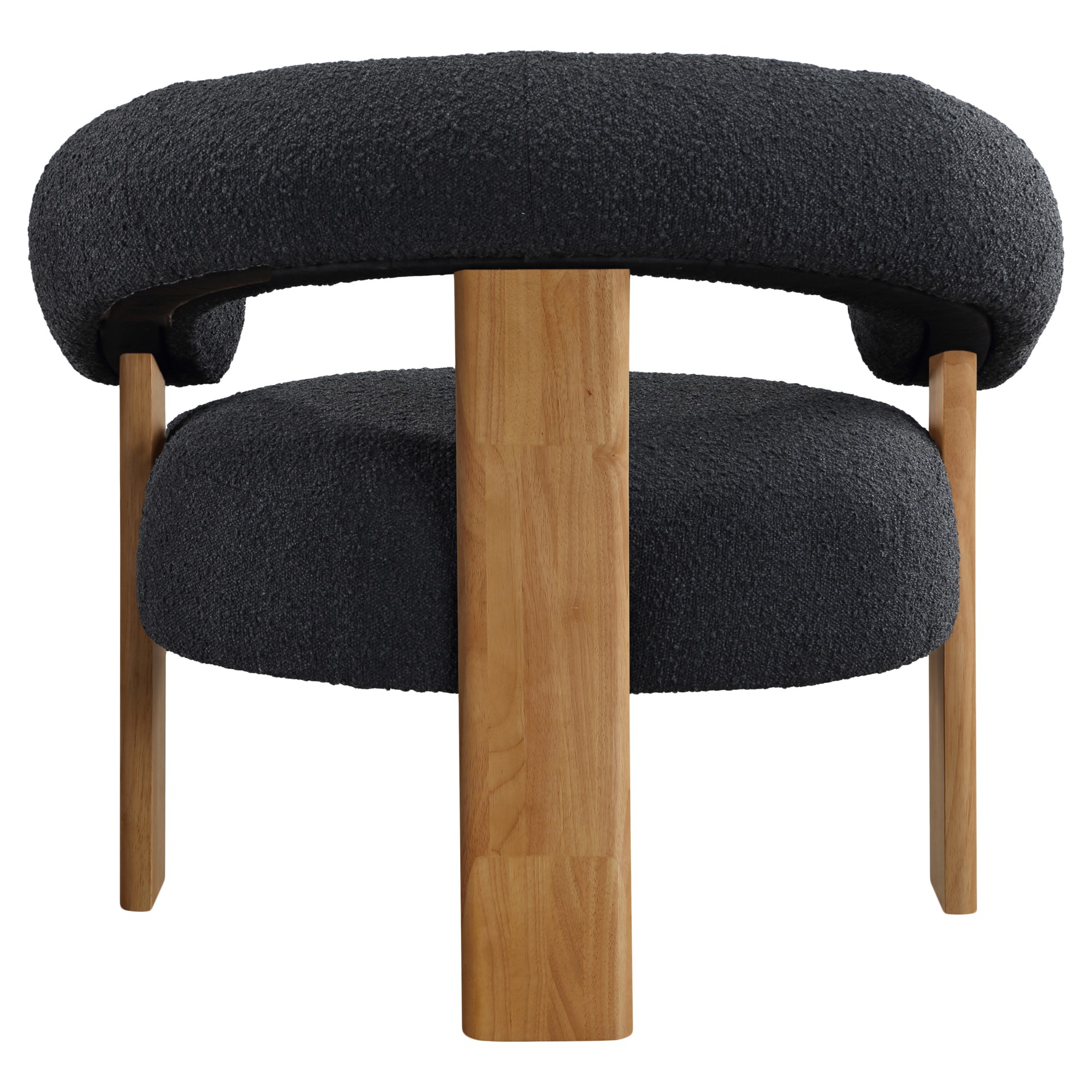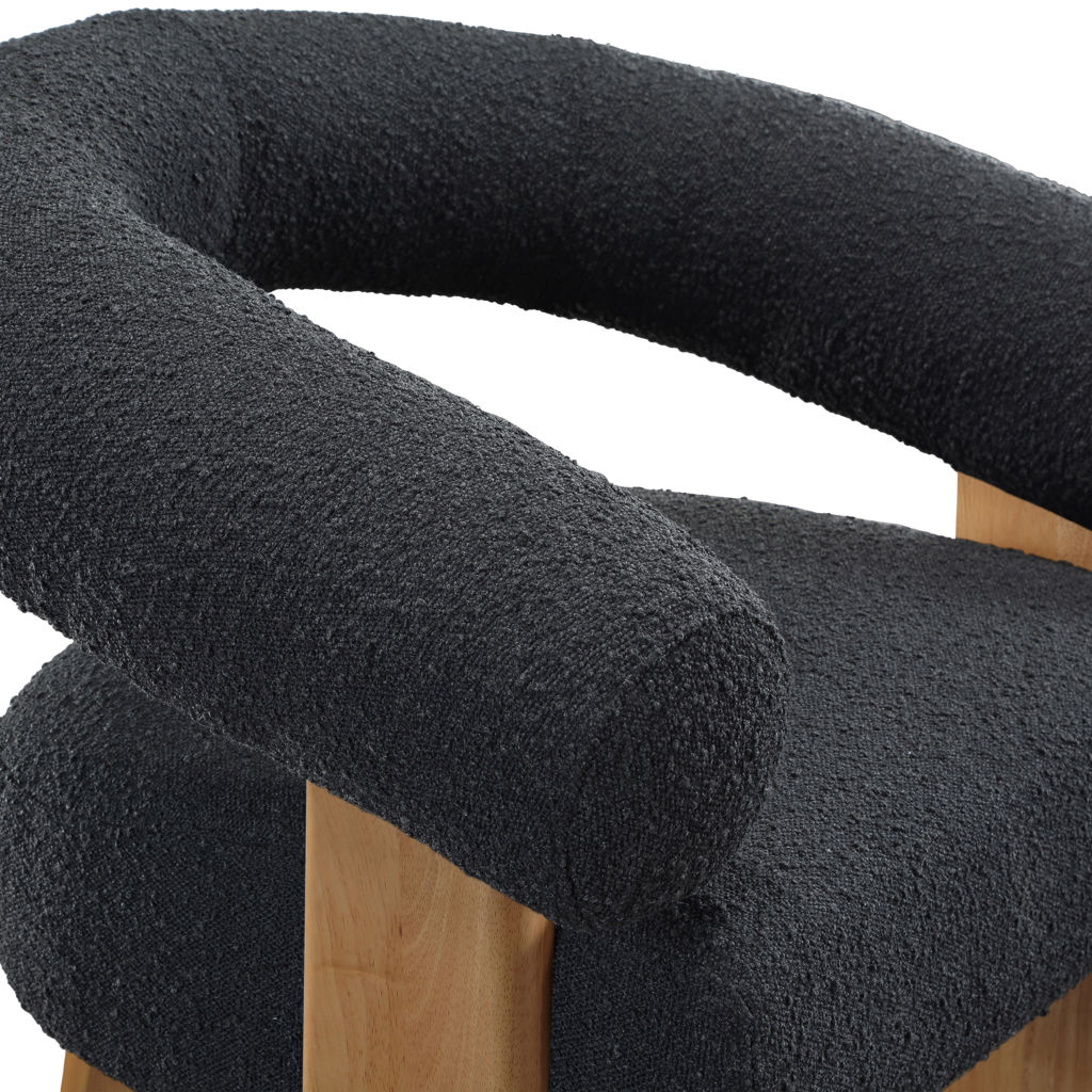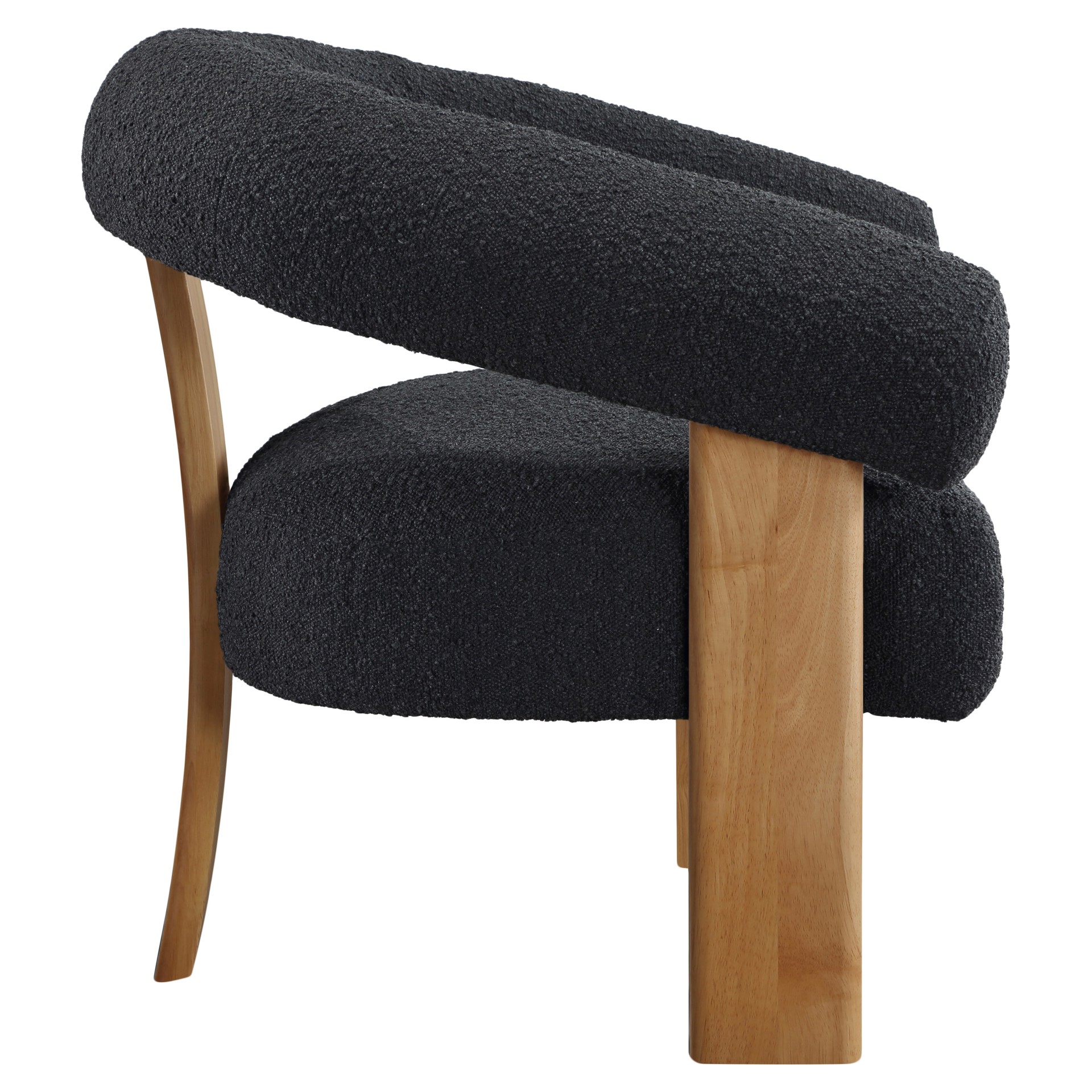Le tissu bouclé noir est doux au toucher et durable, ce qui confère au fauteuil longévité et résistance aux dommages. Les pieds en bois massif constituent une base solide pour ce joli siège, parfait pour le salon, la chambre à coucher ou tout autre espace.