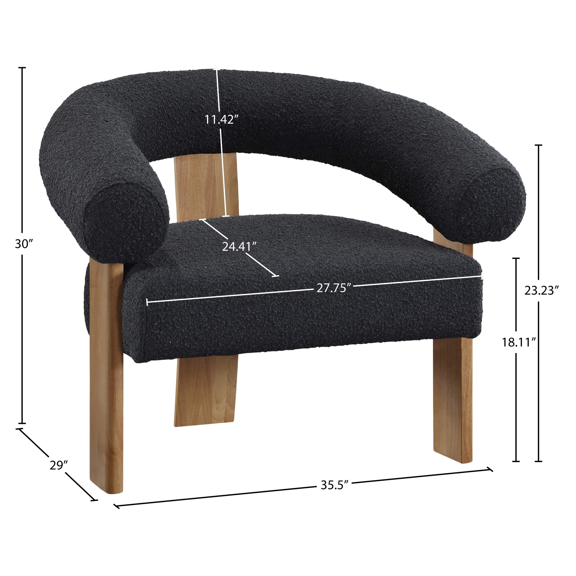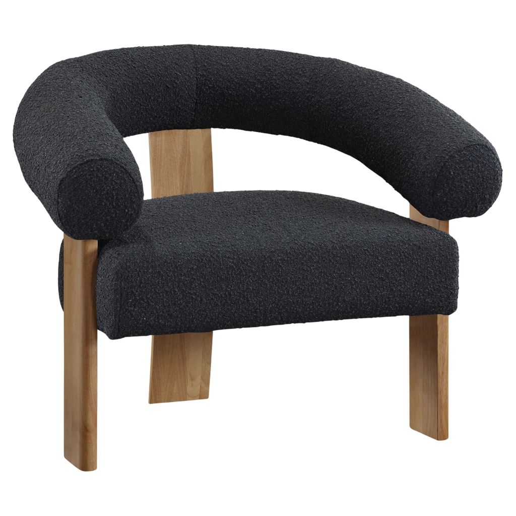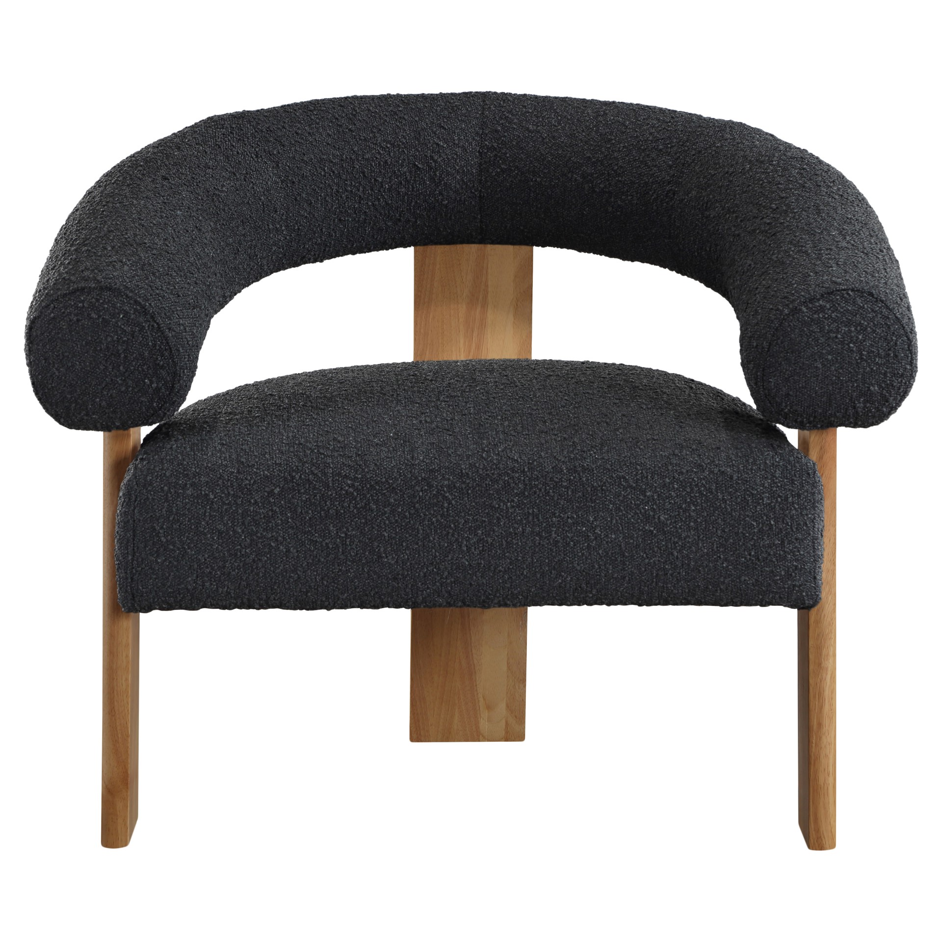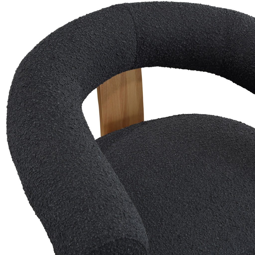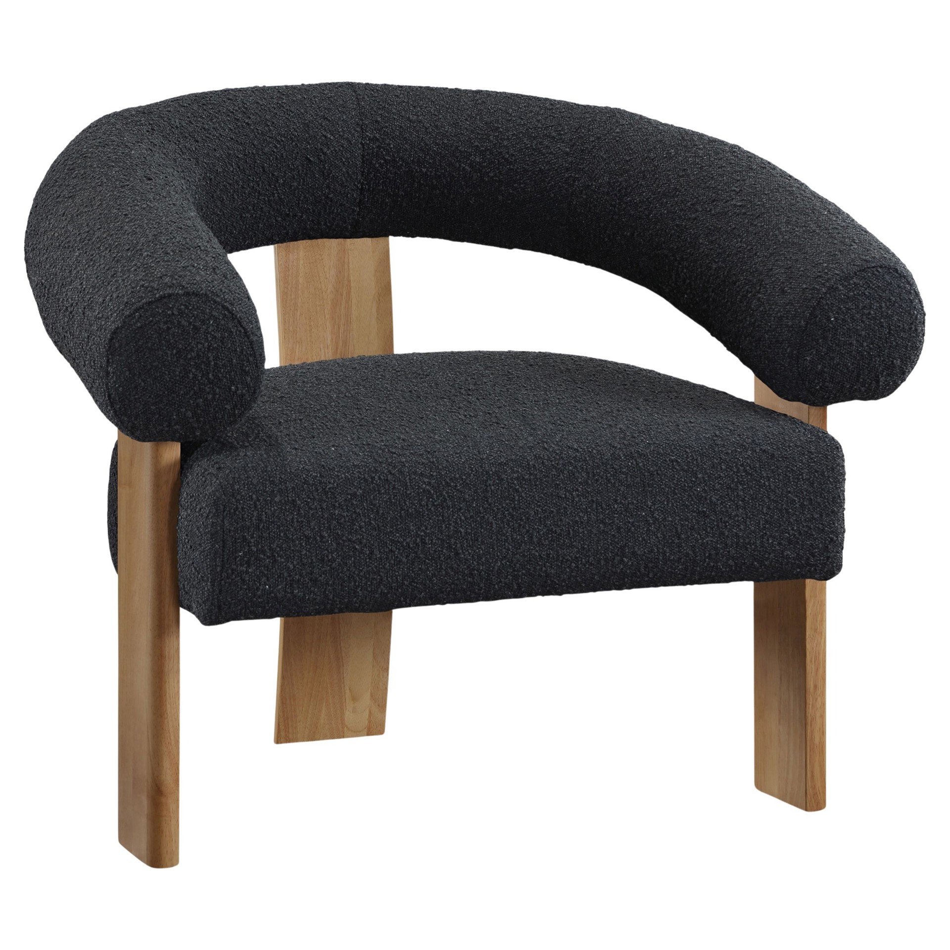 Le tissu bouclé noir est doux au toucher et durable, ce qui confère au fauteuil longévité et résistance aux dommages. Les pieds en bois massif constituent une base solide pour ce joli siège, parfait pour le salon, la chambre à coucher ou tout autre espace.