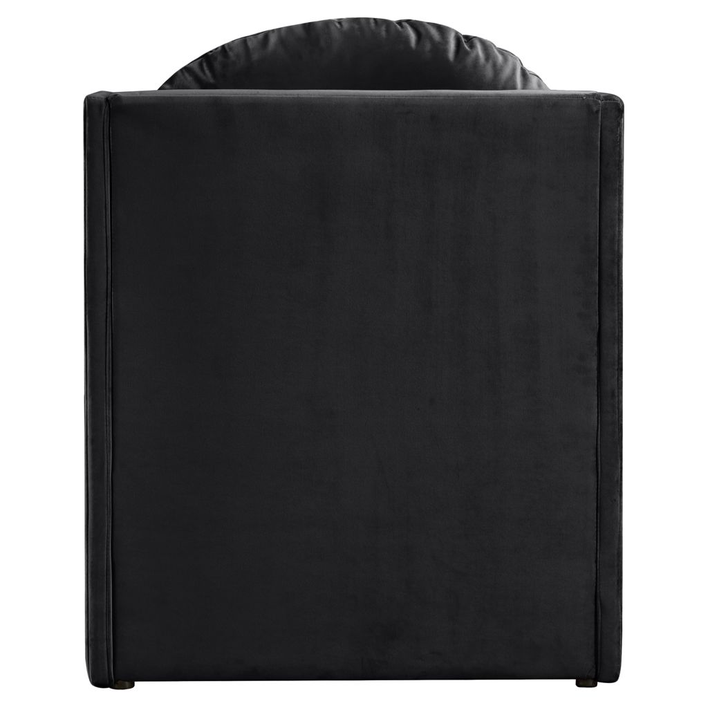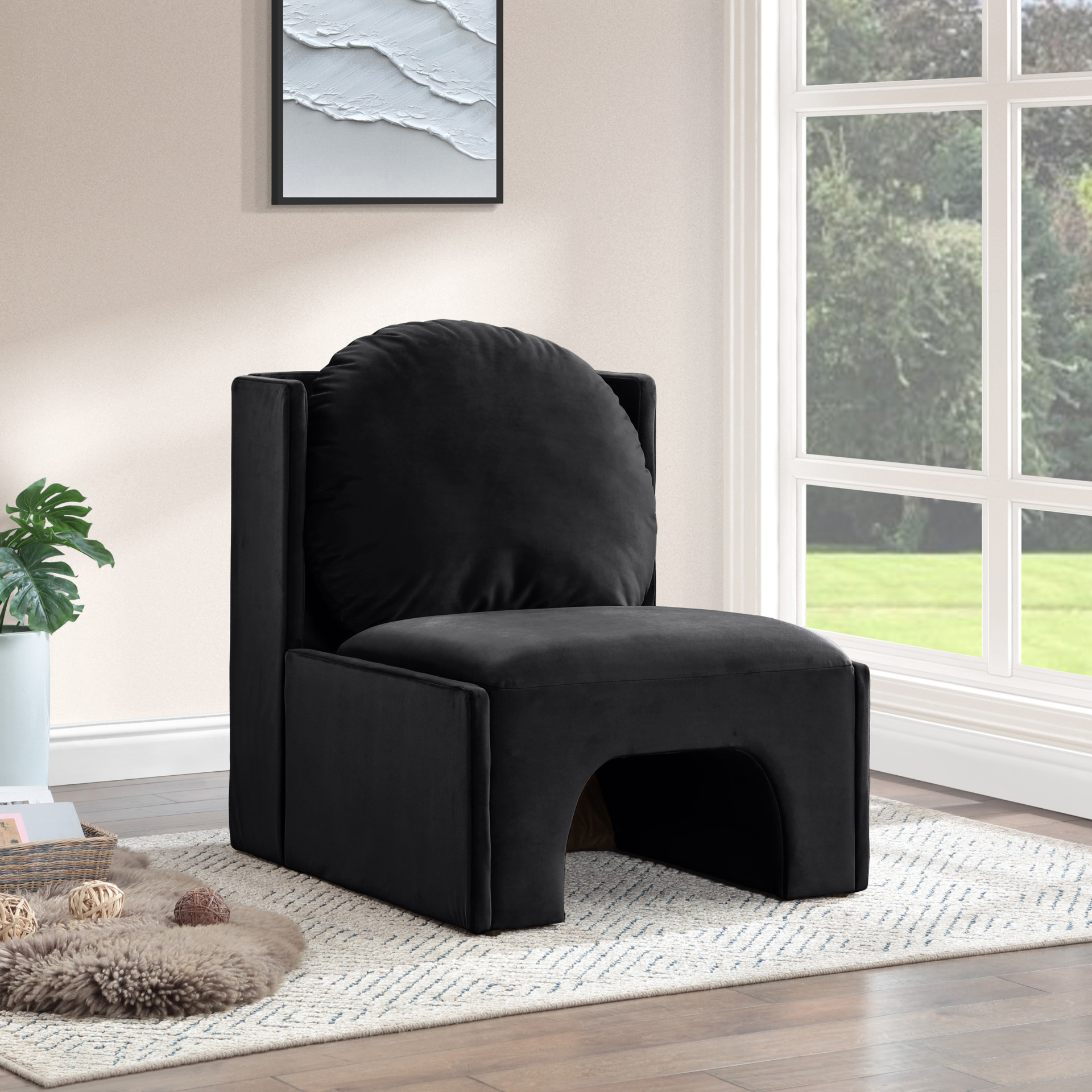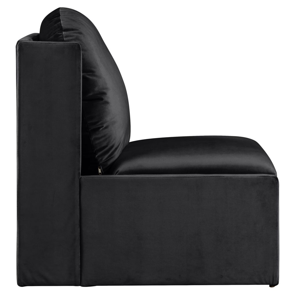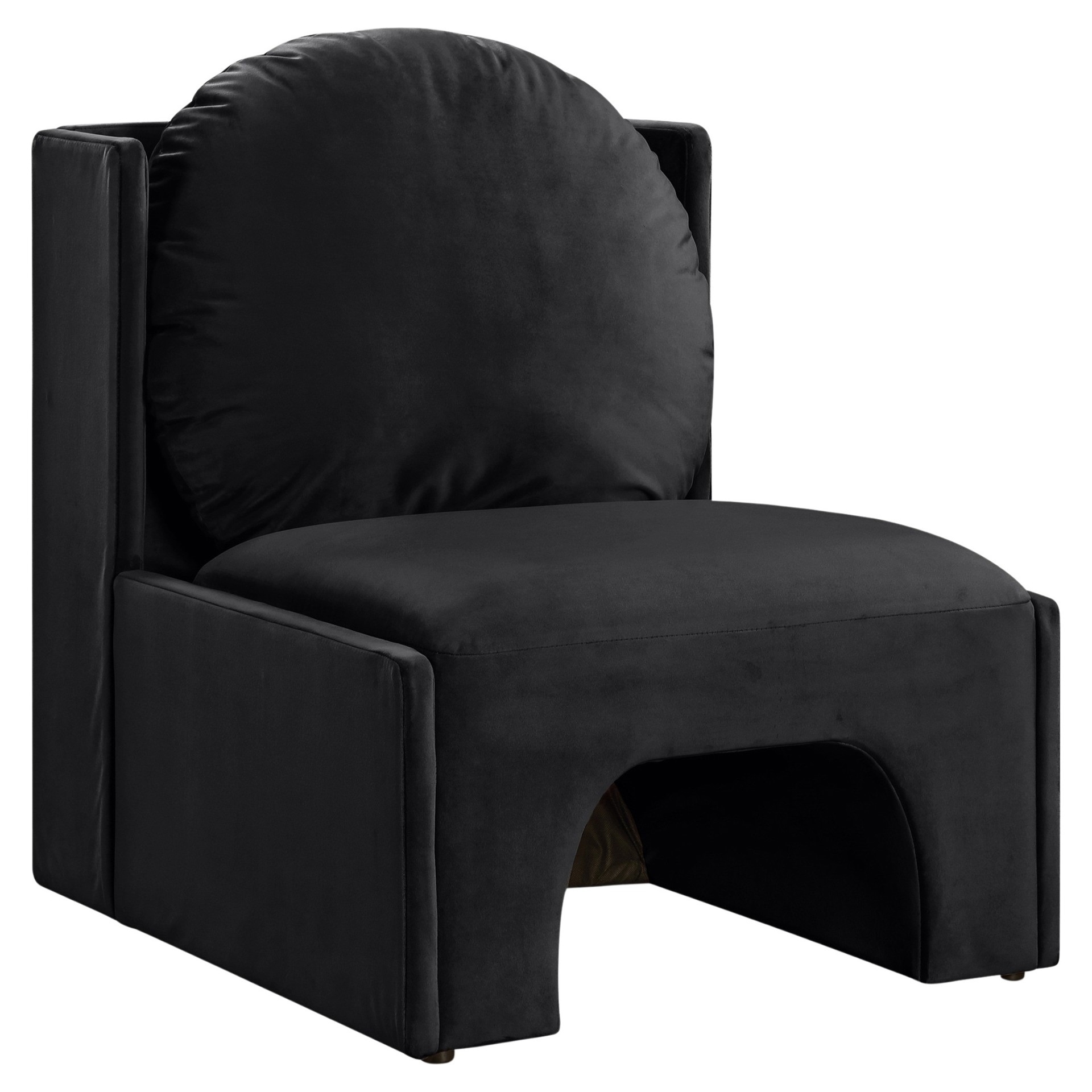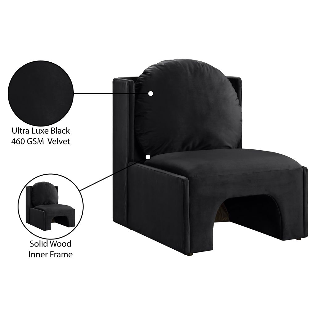 Laissez-vous séduire par le fauteuil d'appoint Sigma en velours noir de Meridian Furniture. Son design captivant et sa luxueuse finition en velours rehaussent n'importe quel espace avec une élégance sans effort.