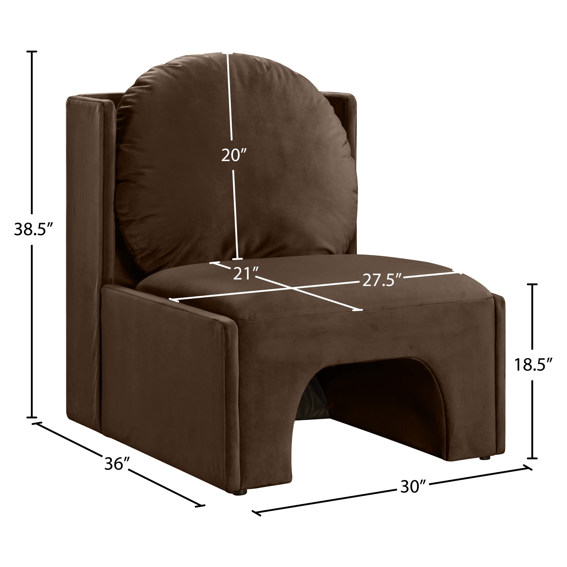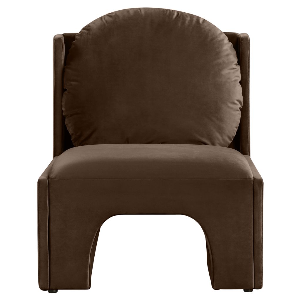 Laissez-vous séduire par le fauteuil d'appoint Sigma en velours brun foncé de Meridian Furniture. Son design captivant et sa luxueuse finition en velours rehaussent n'importe quel espace avec une élégance sans effort.
