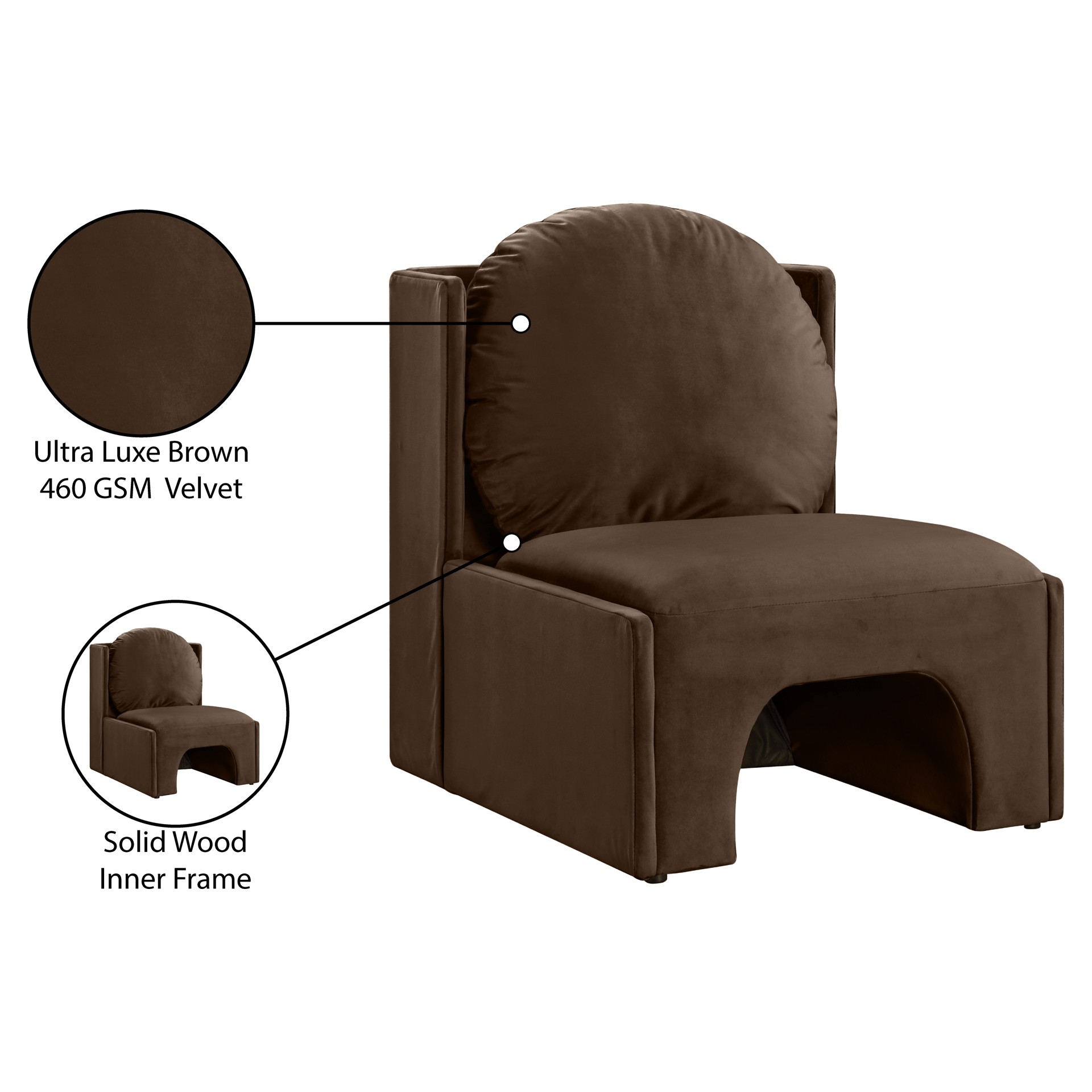 Fauteuil d'appoint en velours Sigma Meridian Furniture 33031BROWN