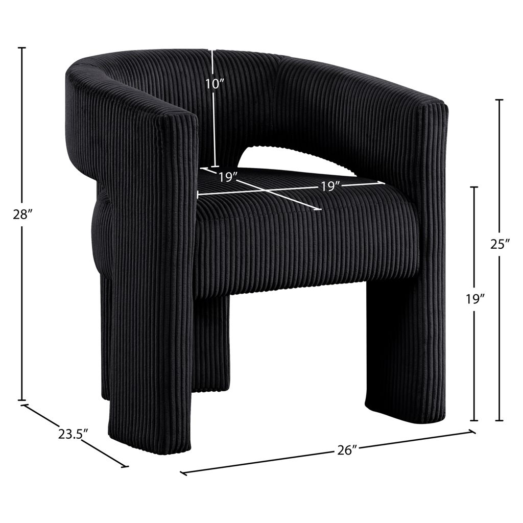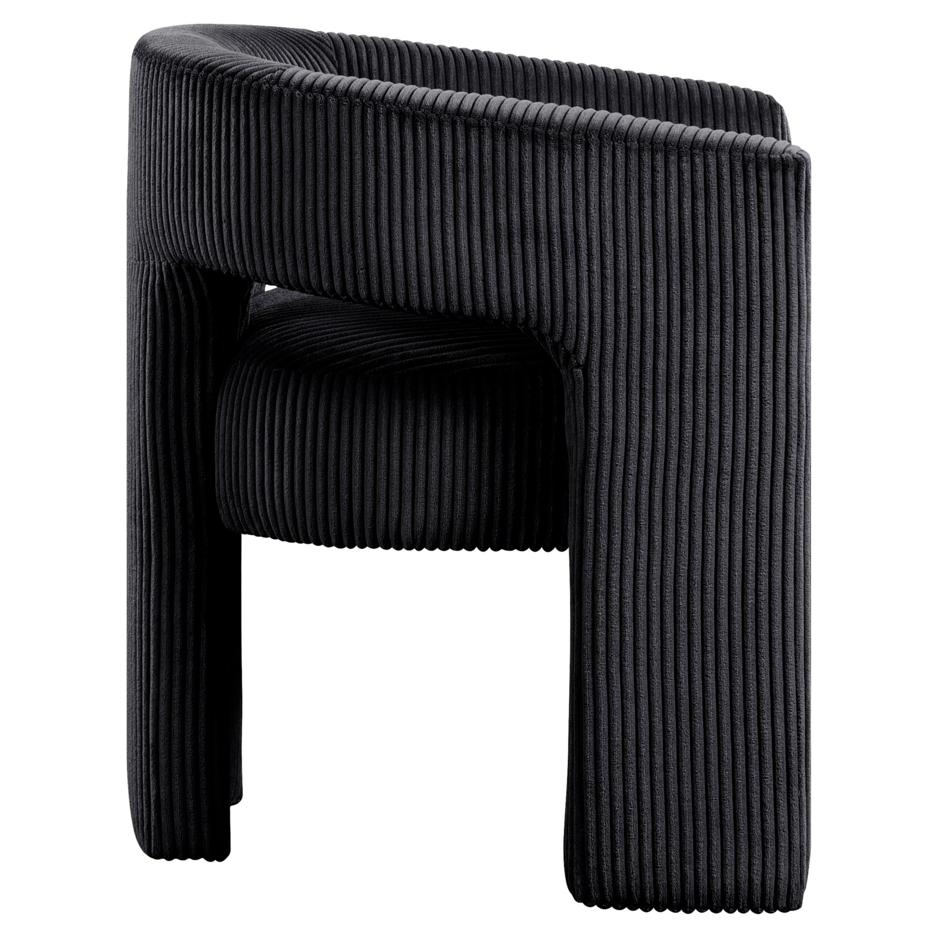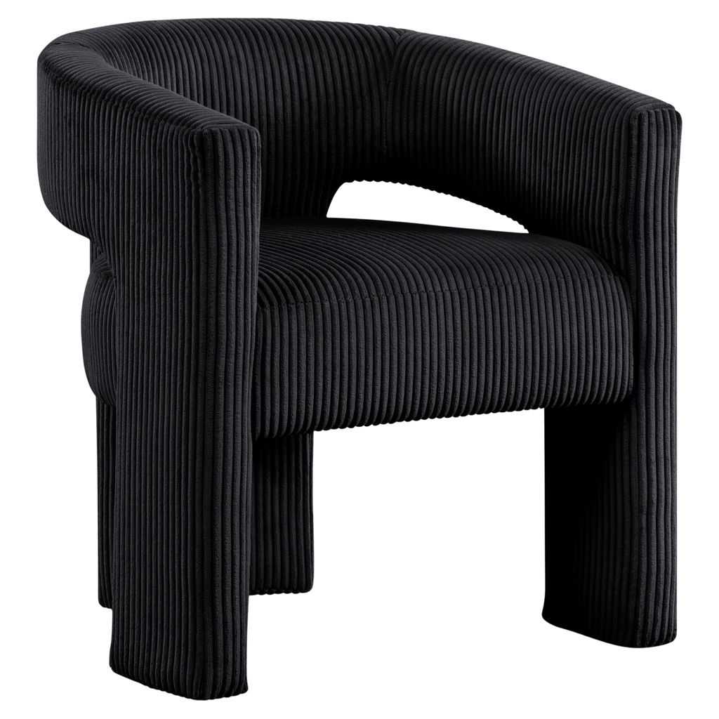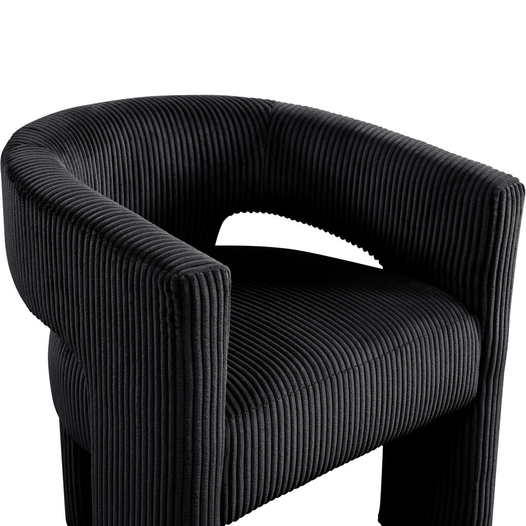 La chaise d'appoint rembourrée en velours côtelé noir Riz offre une touche moderne au confort classique.