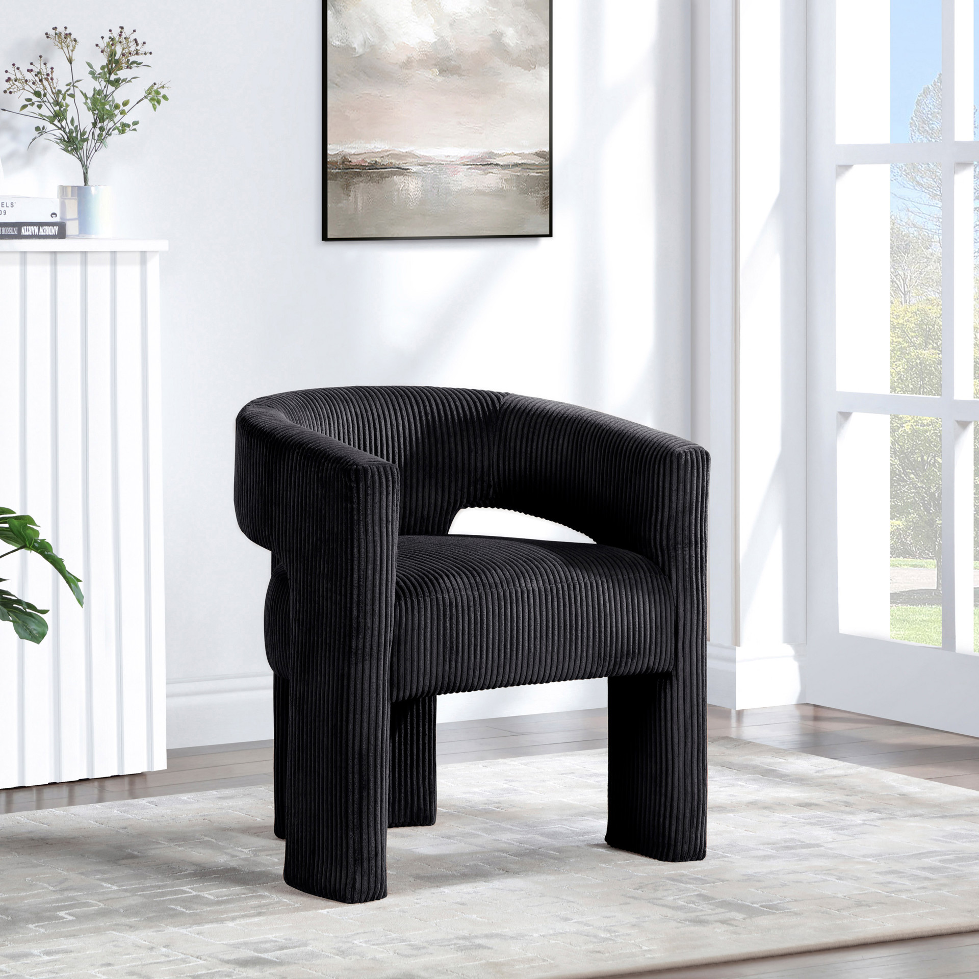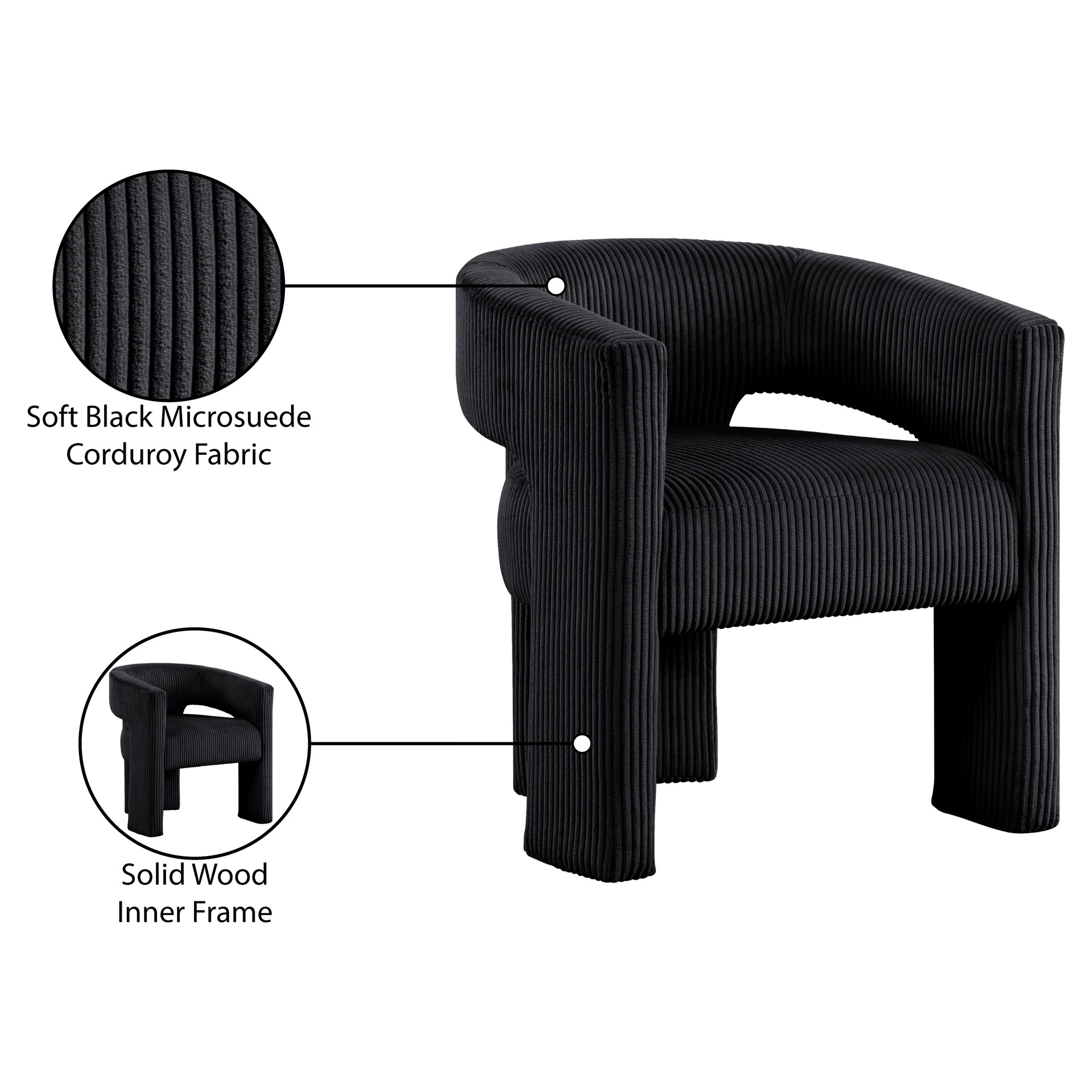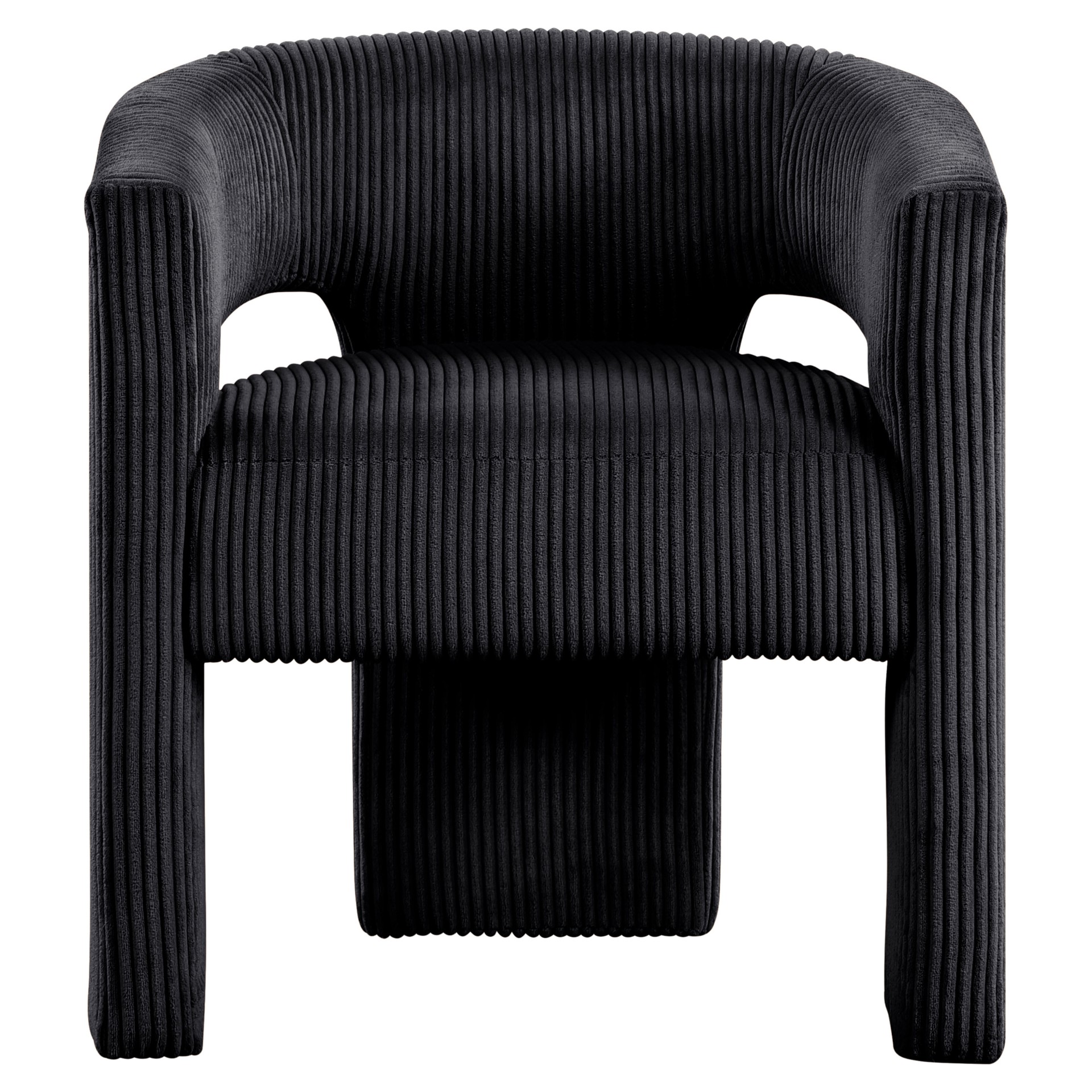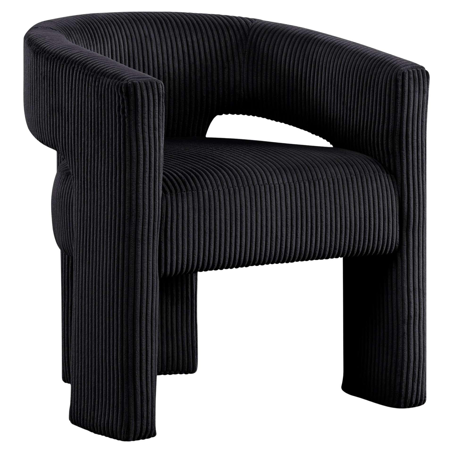 La chaise d'appoint rembourrée en velours côtelé noir Riz offre une touche moderne au confort classique.