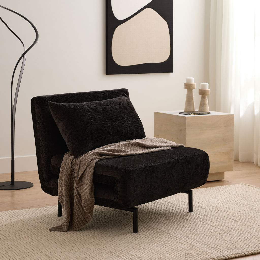Le fauteuil d'appoint multifonctionnel Swiv pivote à 360 degrés et se transforme en chaise longue inclinable en cinq positions différentes. Parfait pour les jeux, les marathons de cinéma ou les jours de pluie paresseux, plongé dans un bon livre. Ce fauteuil est doté de pieds cachés aux deux extrémités, qu'il suffit de dézipper de l'intérieur. Et voilà, vous avez un lit de jour!