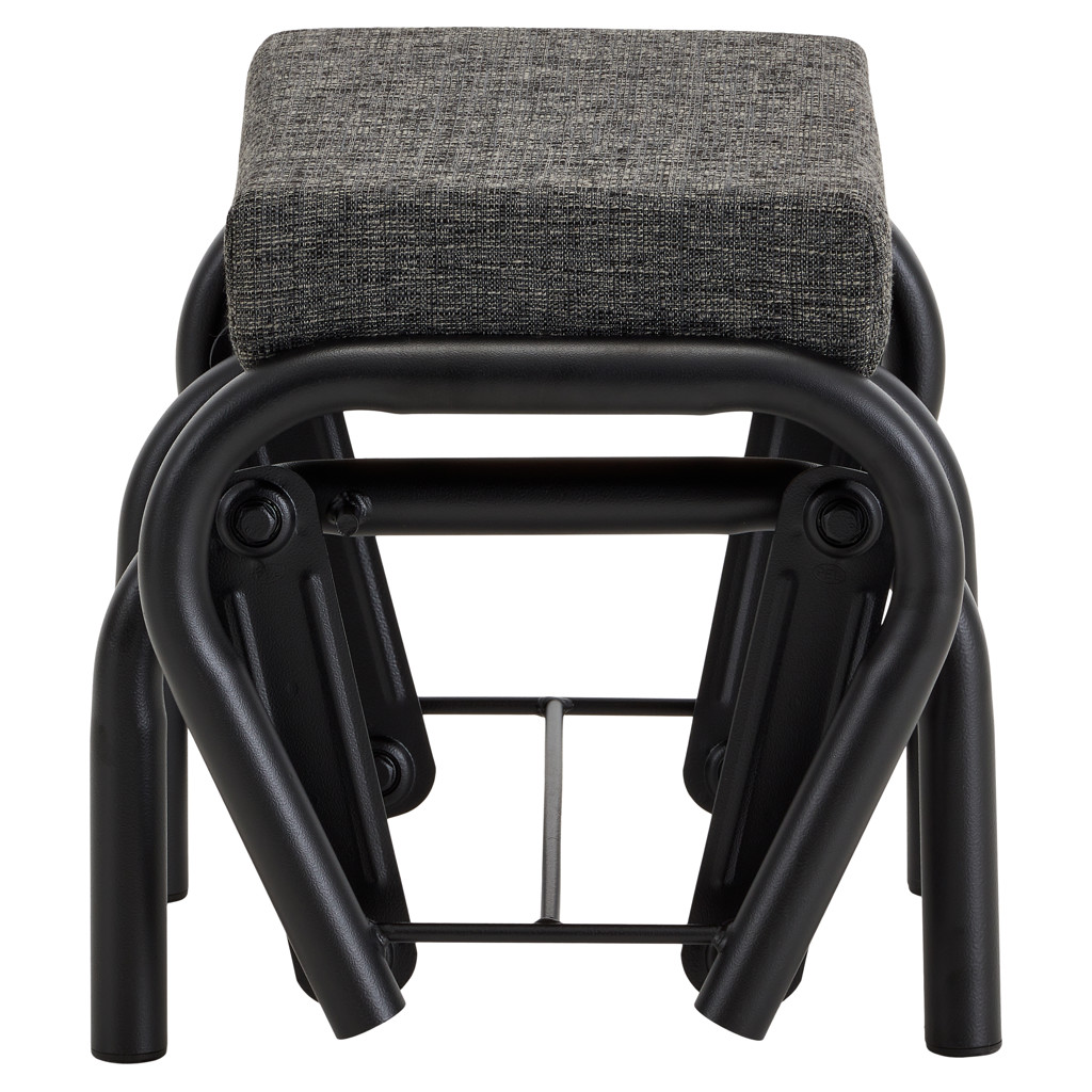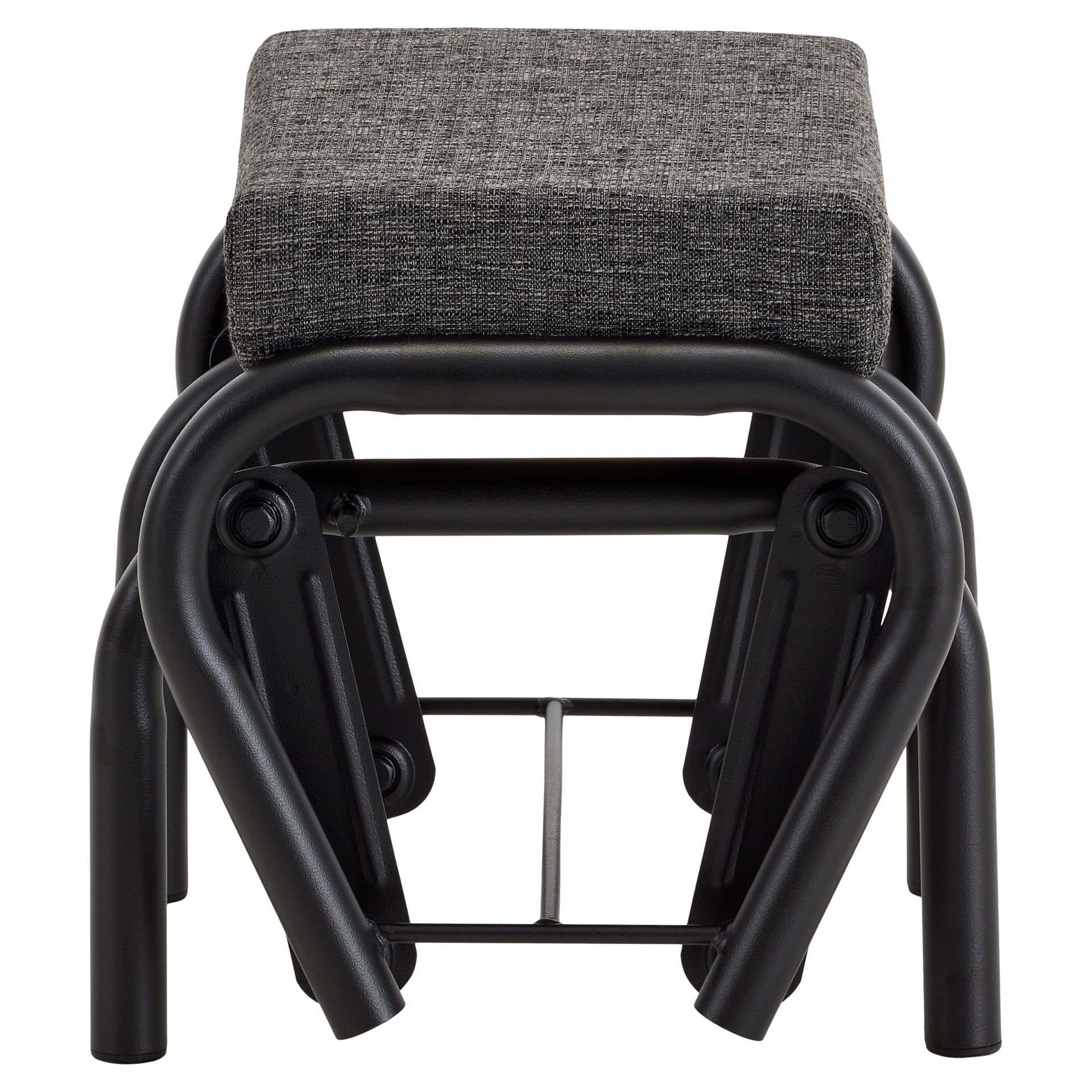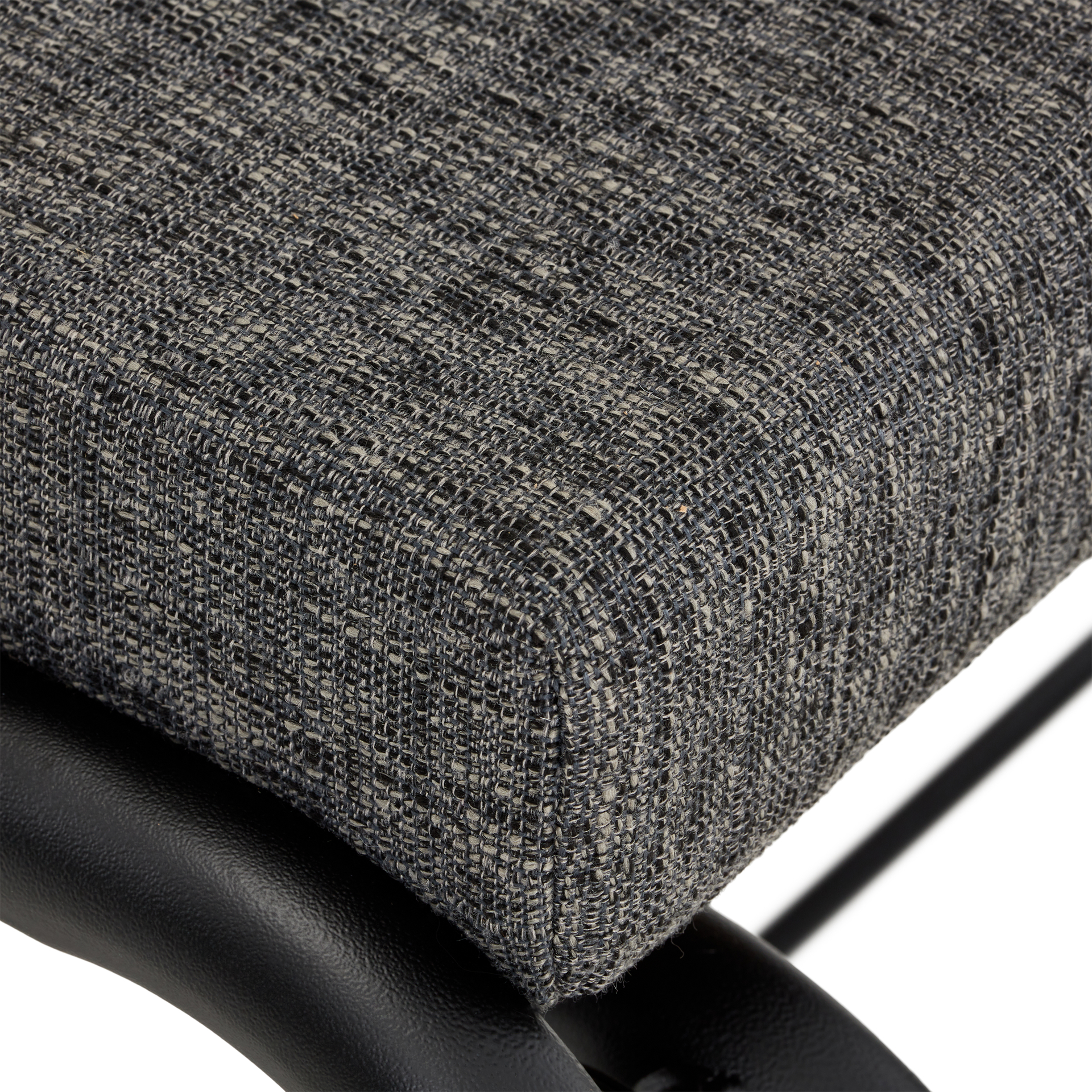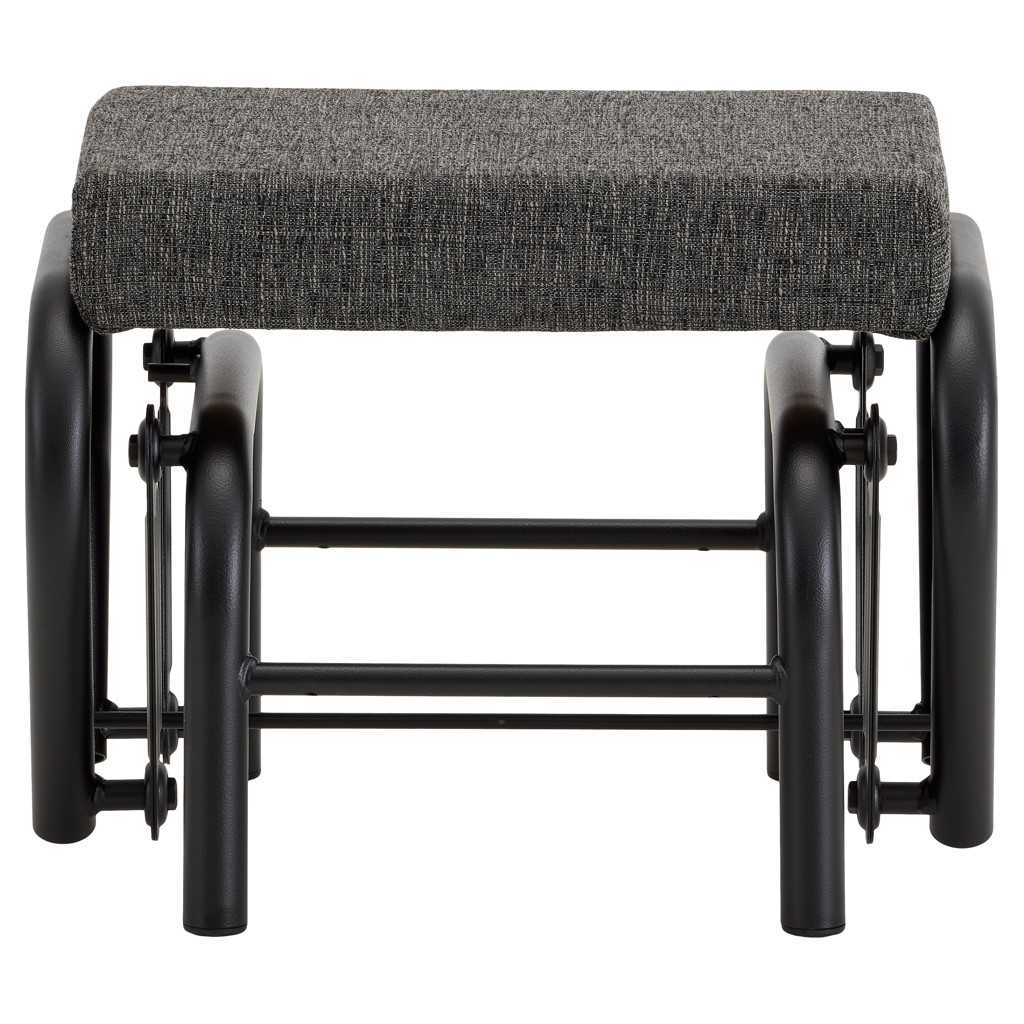 Ajoutez une touche de confort et de mouvement à votre espace avec ce repose-pieds berçant à la silhouette unique. Conçu pour accompagner votre fauteuil préféré, ce repose-pieds allie design industriel et fonction utilitaire. Sa base métallique noire robuste s'harmonise avec un coussin d'assise rembourré en tissu gris, assurant un confort optimal pour vos jambes et vos pieds.