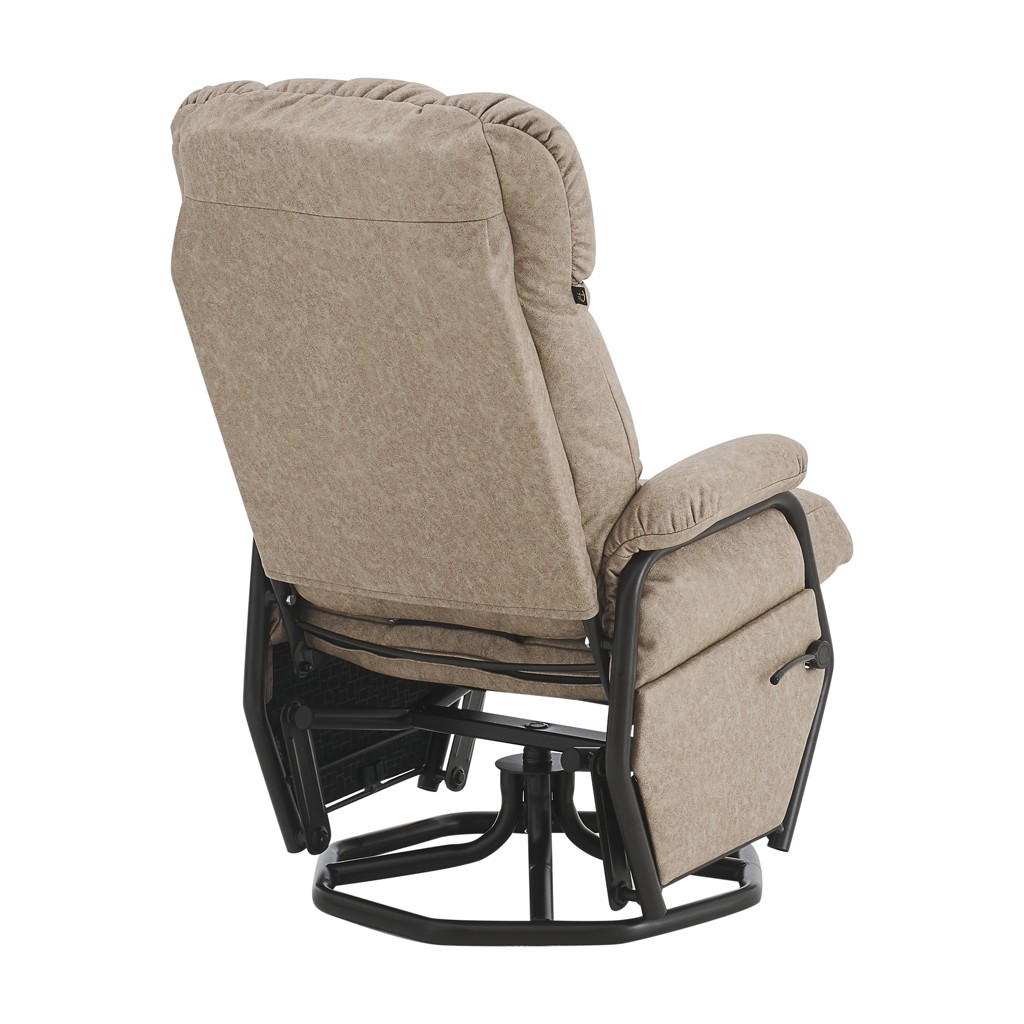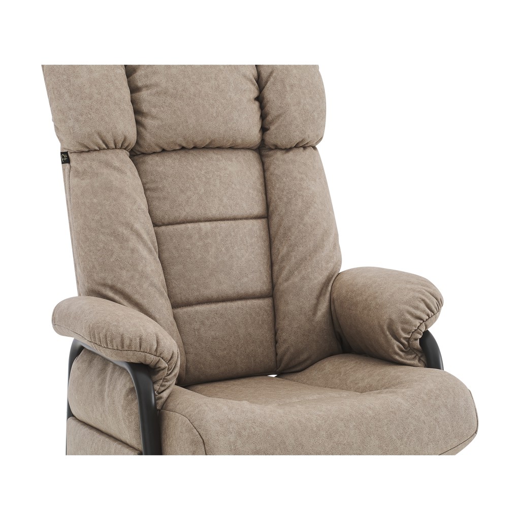Profitez de la douceur du mouvement de bascule pour vous relaxer, ou activez le mécanisme d'inclinaison pour un repos optimal. La structure robuste avec base pivotante offre une stabilité rassurante, tandis que le rembourrage généreux des accoudoirs, du dossier et de l'assise vous enveloppe dans un cocon de bien-être.