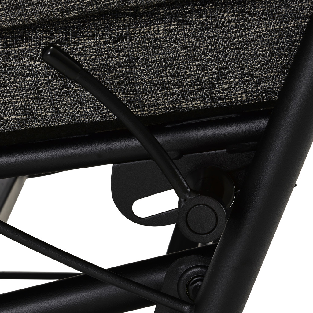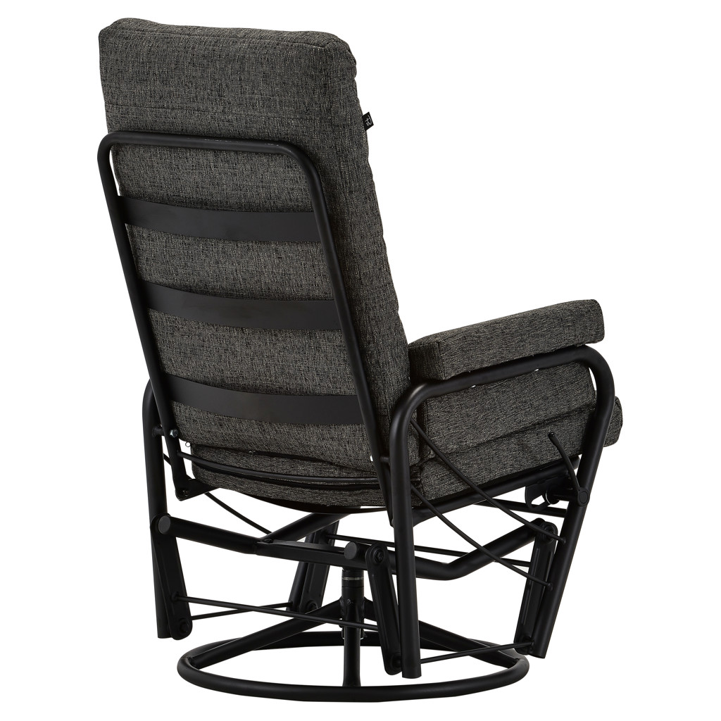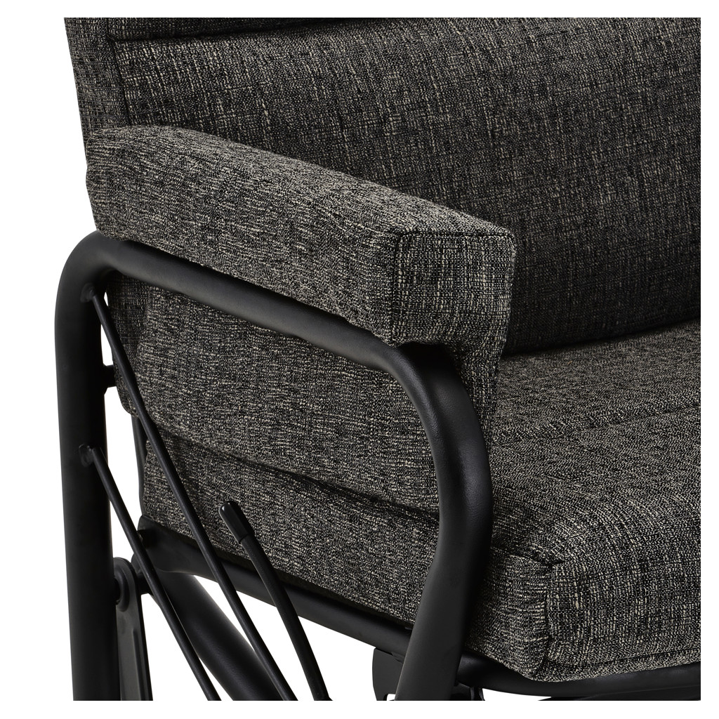 Découvrez le plaisir de la détente avec cette chaise berçante et inclinable au revêtement en tissu texturé d'un élégant noir. Son mécanisme fluide vous permet de basculer entre position droite et inclinée selon vos envies, tandis que le mouvement de bercement vous apporte une relaxation apaisante.