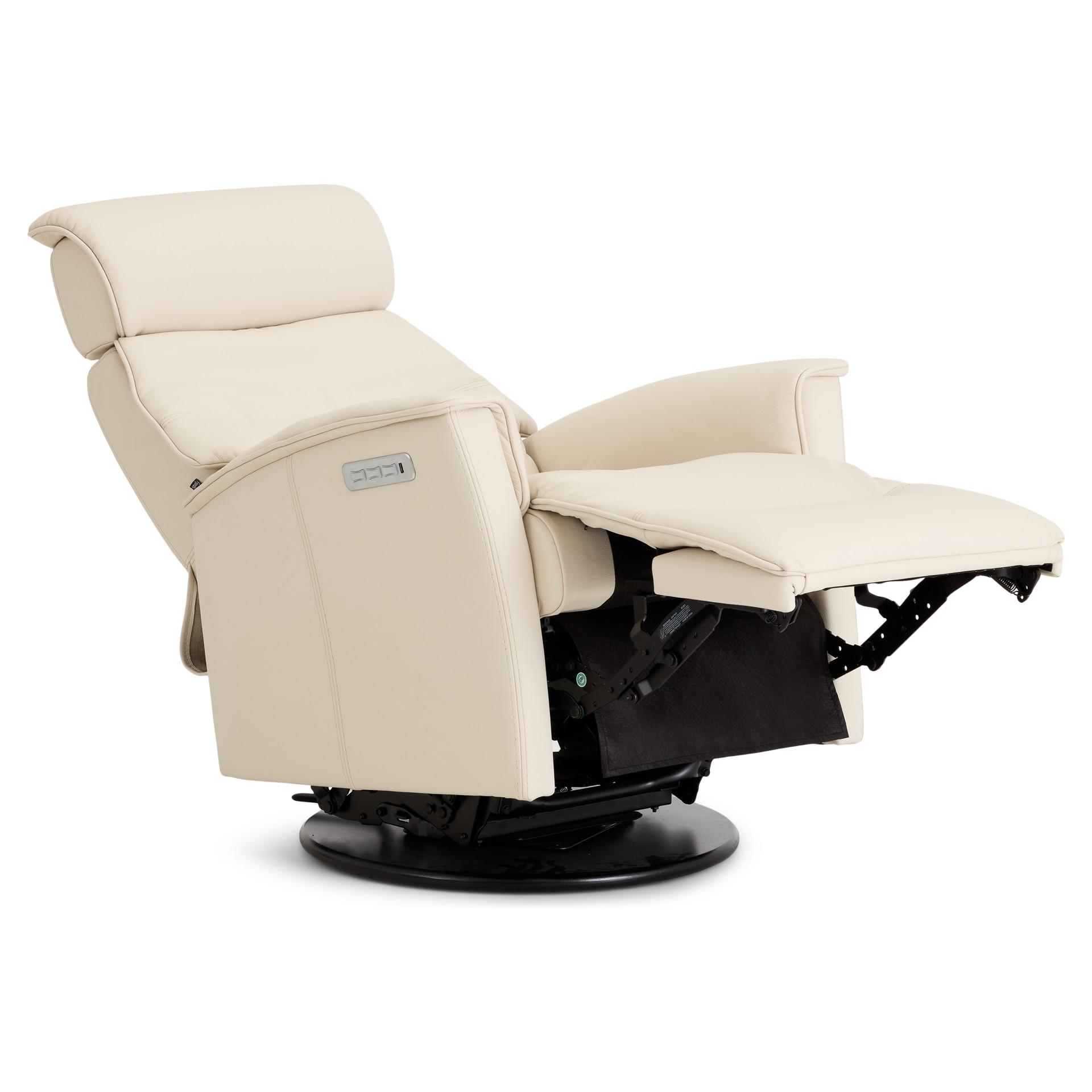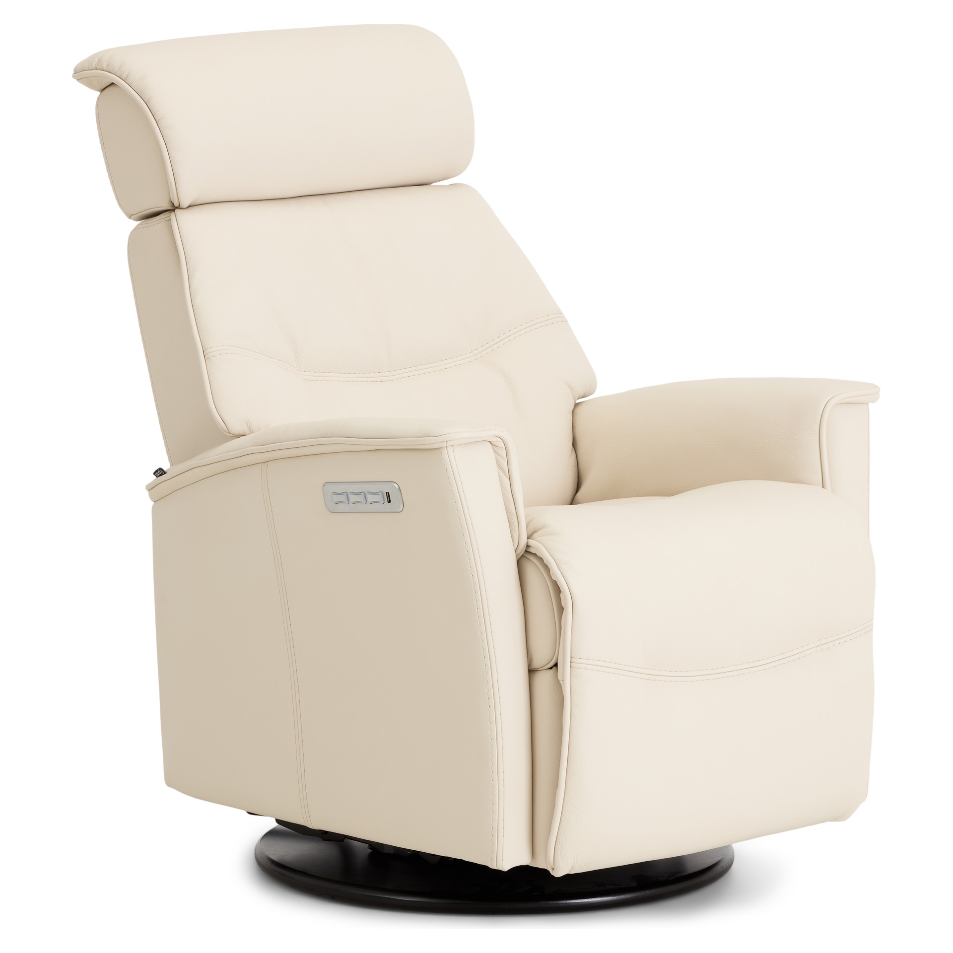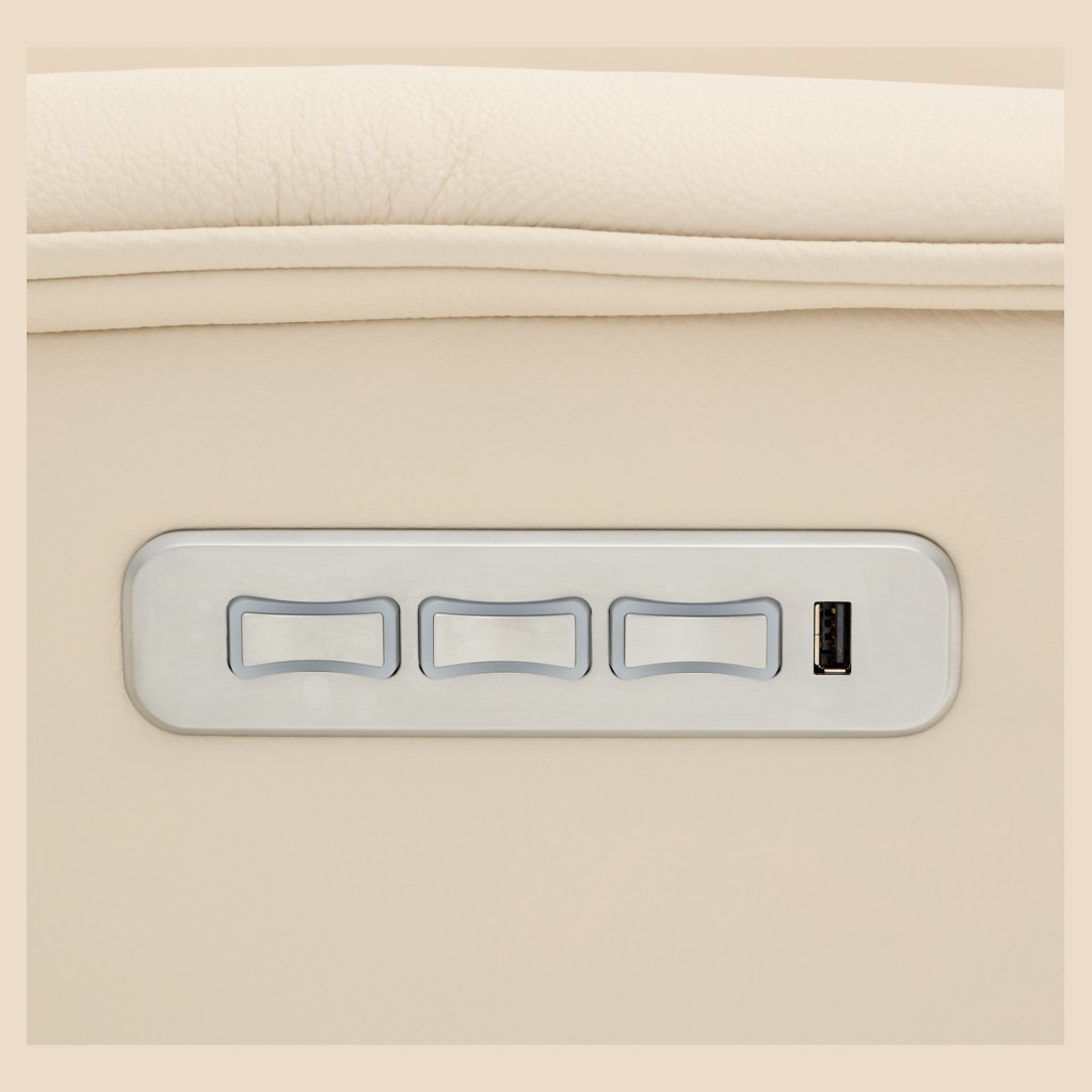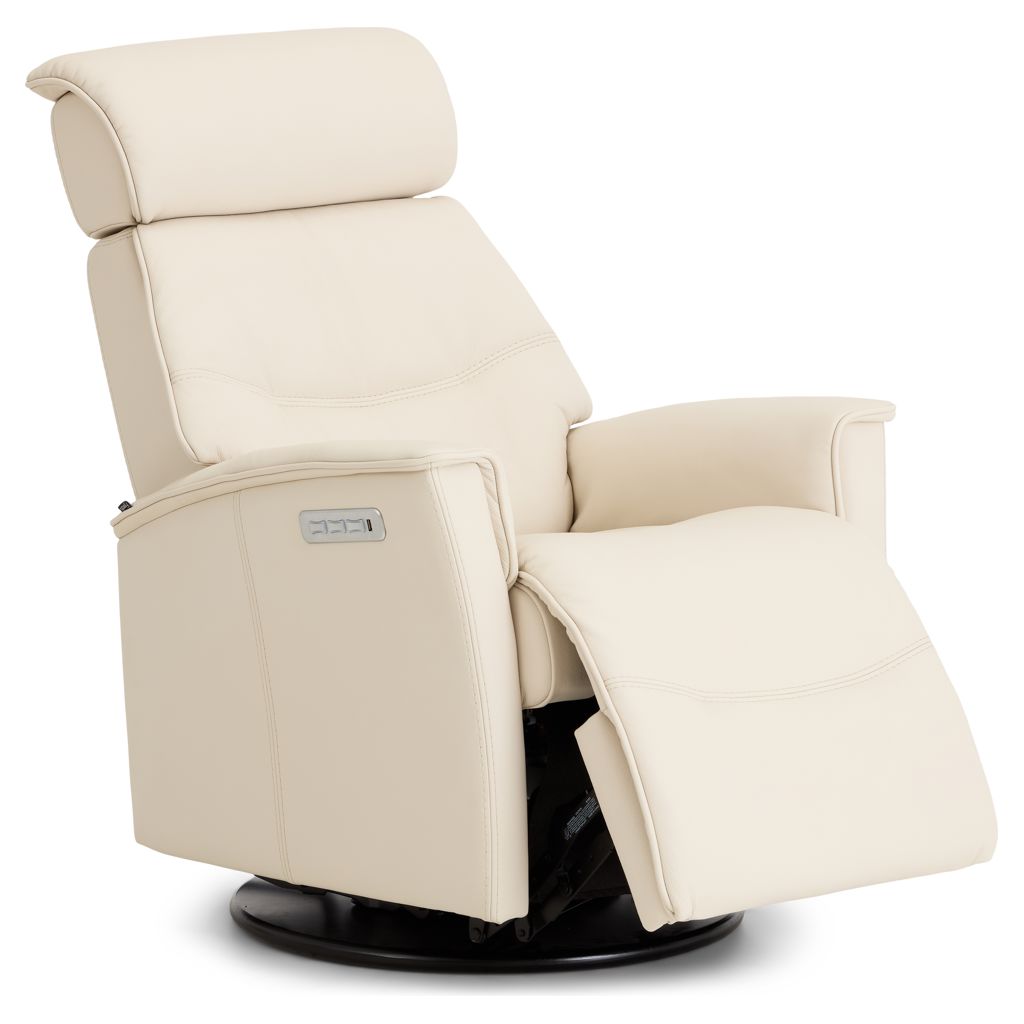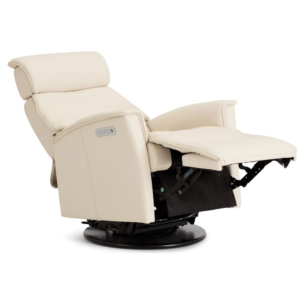 Apportez une touche de luxe à votre salon avec le fauteuil inclinable motorisé Major, un siège petit format qui allie design contemporain, technologie de confort et matériaux haut de gamme. Revêtu de cuir véritable ivoire, ce fauteuil pivotant et berçant transforme chaque moment de détente en une expérience exceptionnelle.