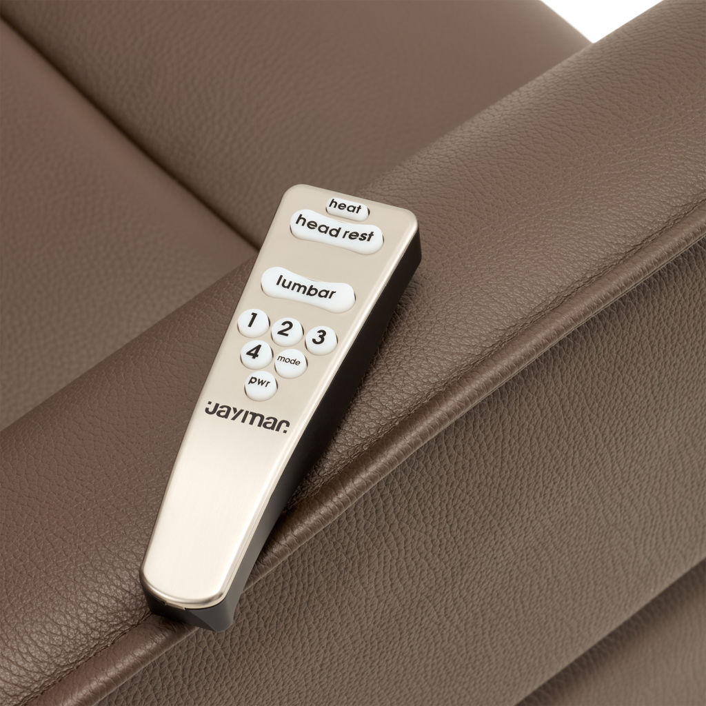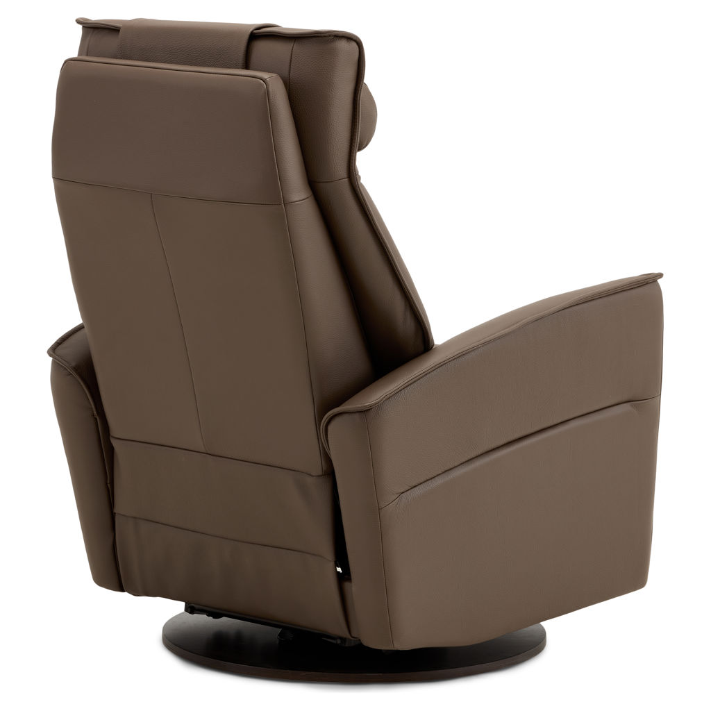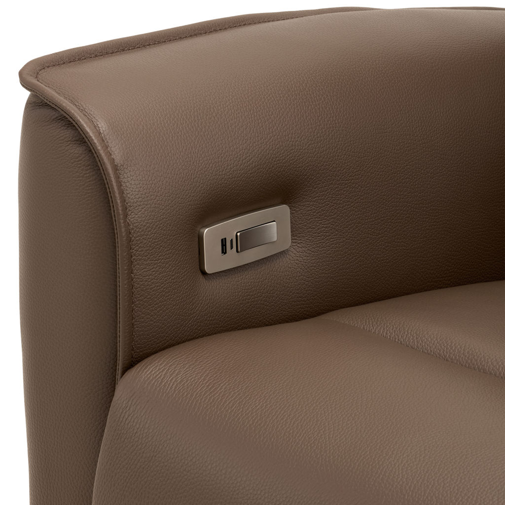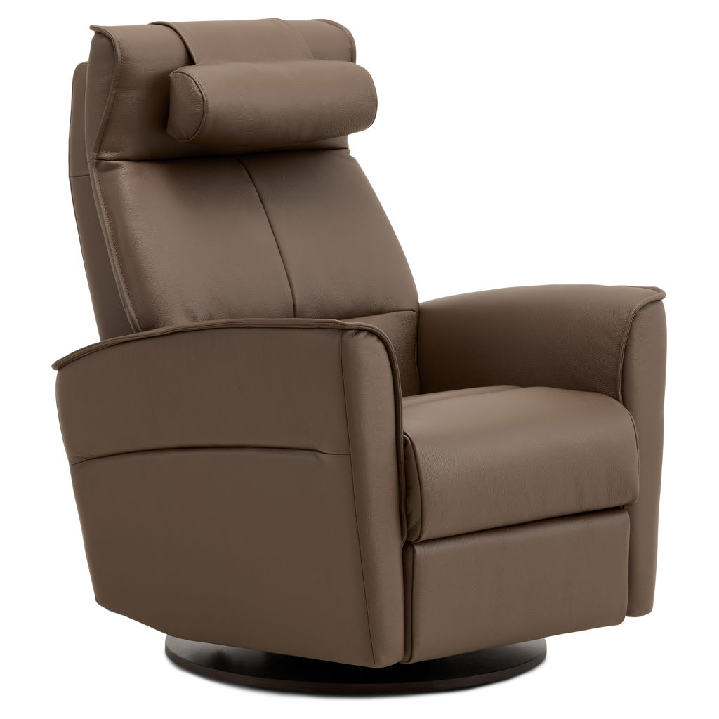 Fauteuil berçant, pivotant et inclinable doté d'un système à massage en 4 zones avec 3 modes différents ainsi que dos chauffant avec une intensité de chaleur et support lombaire. Télécommande sans fil inclus qui contrôle le système à massage ainsi que l'appui-tête électrique. Repose-pied pleine jambe et inclinable motorisé contrôlé par un bouton poussoir incluant un port USB. Coussin rondin pour appui-tête inclus.