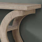Table d’entrée de fini bois naturel doté d'un design incurvé unique.