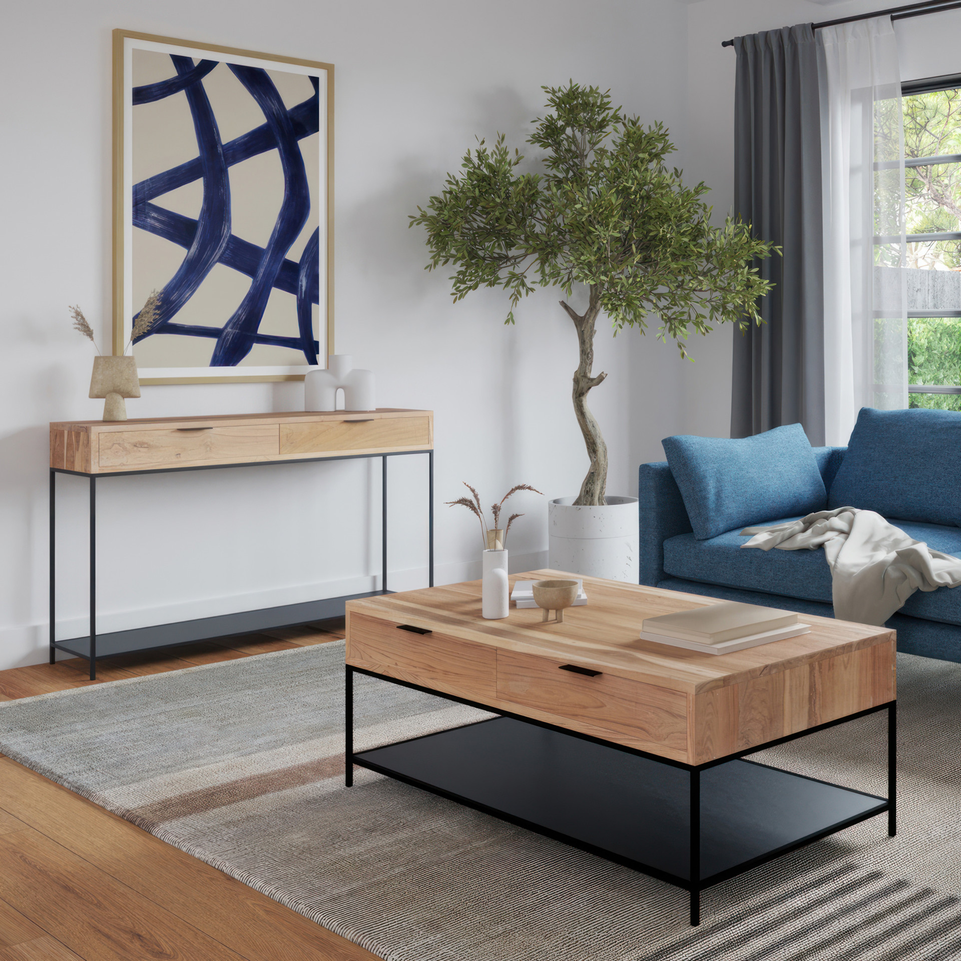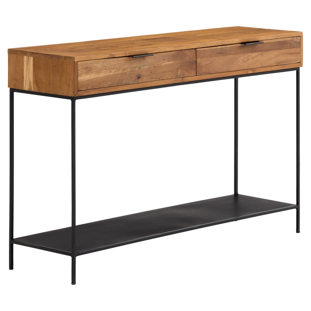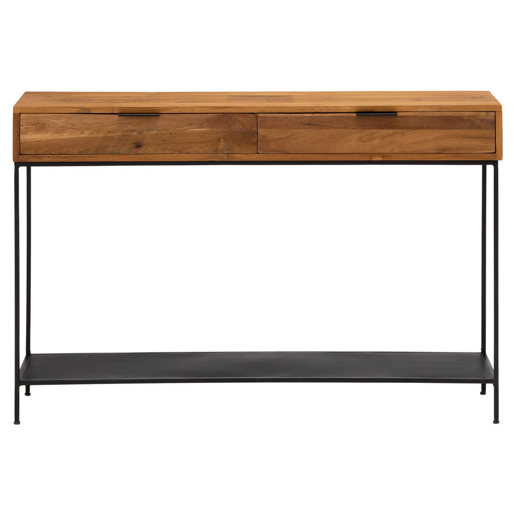 Avec ses deux tiroirs discrets, elle offre un rangement pratique pour vos essentiels tout en conservant ses lignes élégantes. L'étagère inférieure ajoute une dimension fonctionnelle supplémentaire, idéale pour exposer vos objets déco ou ranger vos affaires du quotidien.