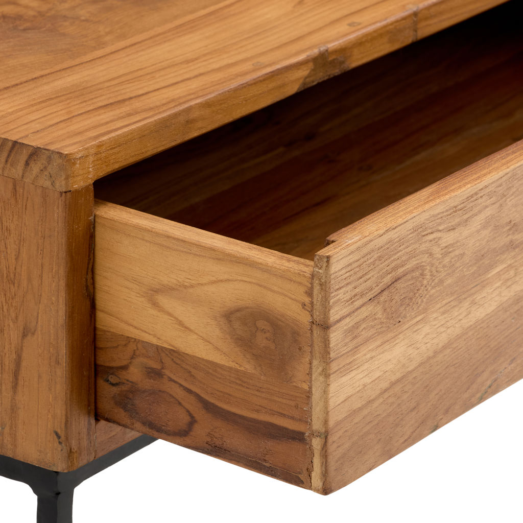 Cette magnifique console en teck massif apporte instantanément chaleur et caractère à votre intérieur. Son bois authentique révèle de superbes veinages naturels qui racontent une histoire unique, tandis que sa structure épurée s'adapte parfaitement aux espaces modernes.