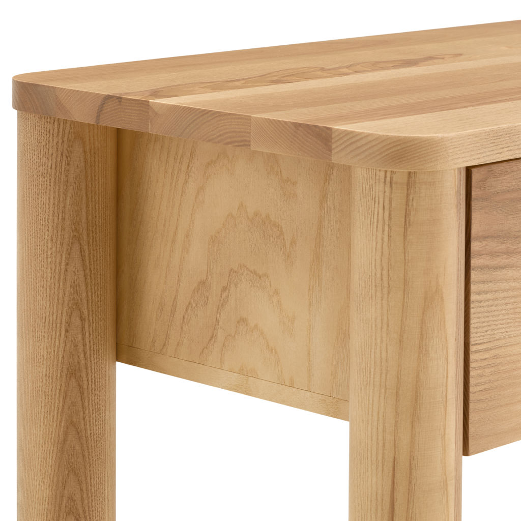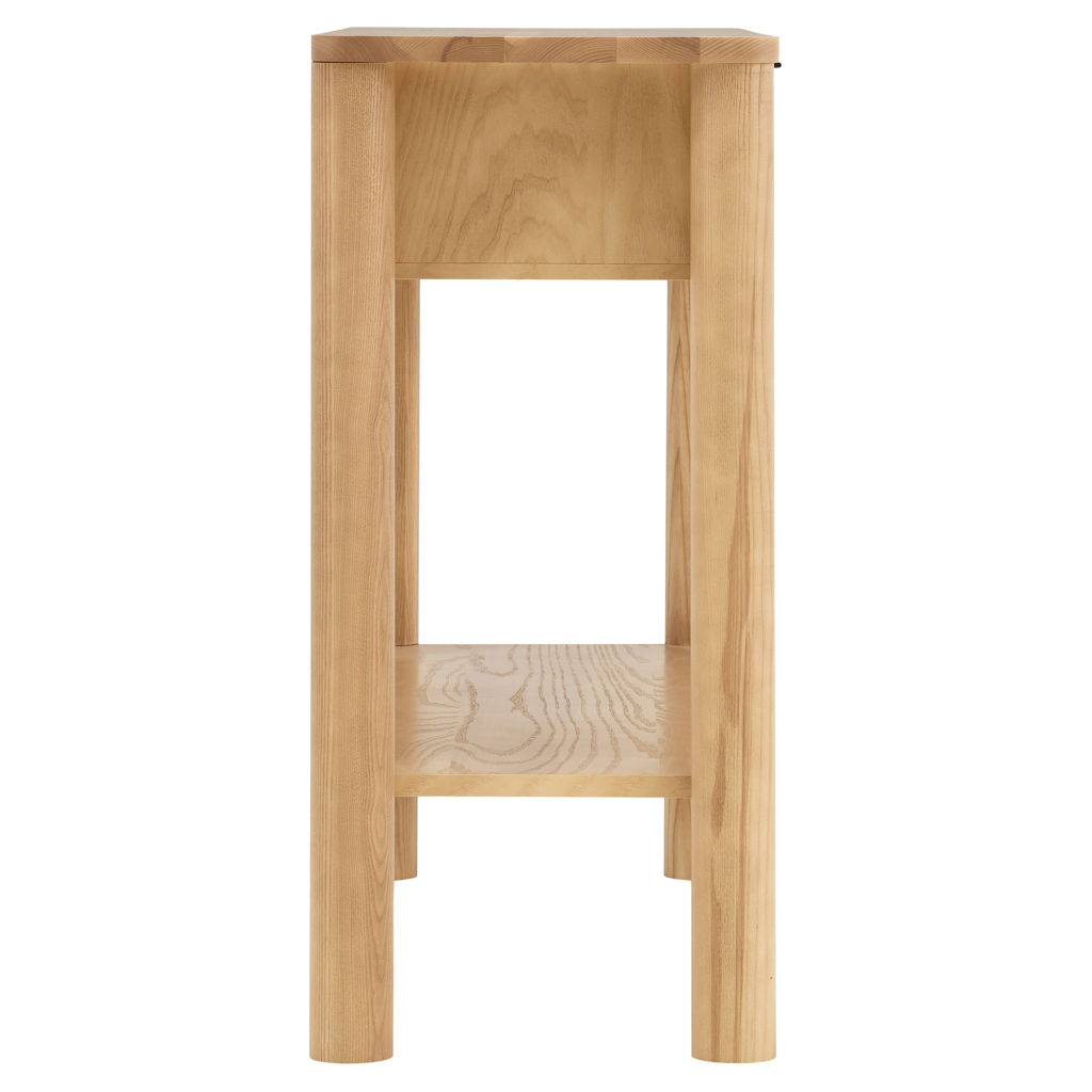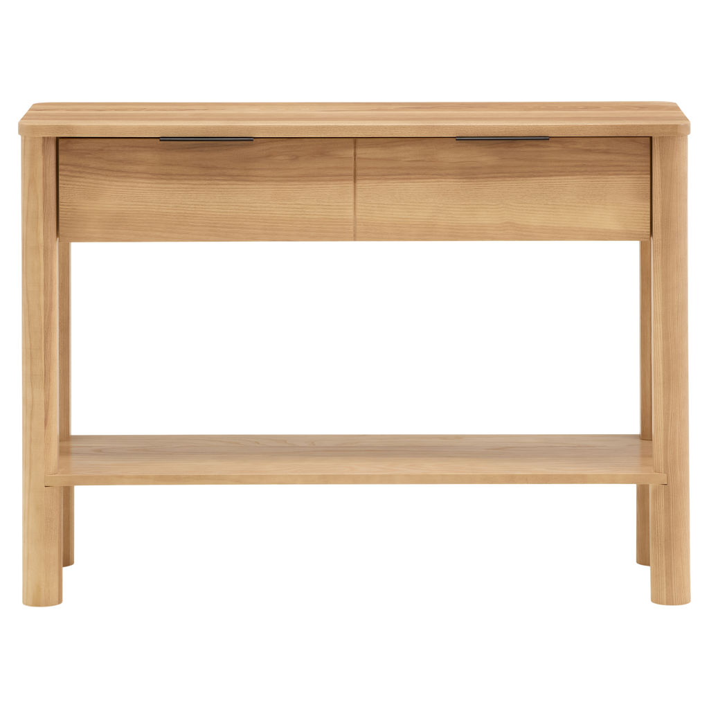 Cette table console d'inspiration mid-century, fabriquée en frêne massif se distingue par ses pattes  rondes élégantes, et apporte chaleur, équilibre et style sans effort à votre espace. Un look pensé, à la fois iconique et résolument contemporain.
