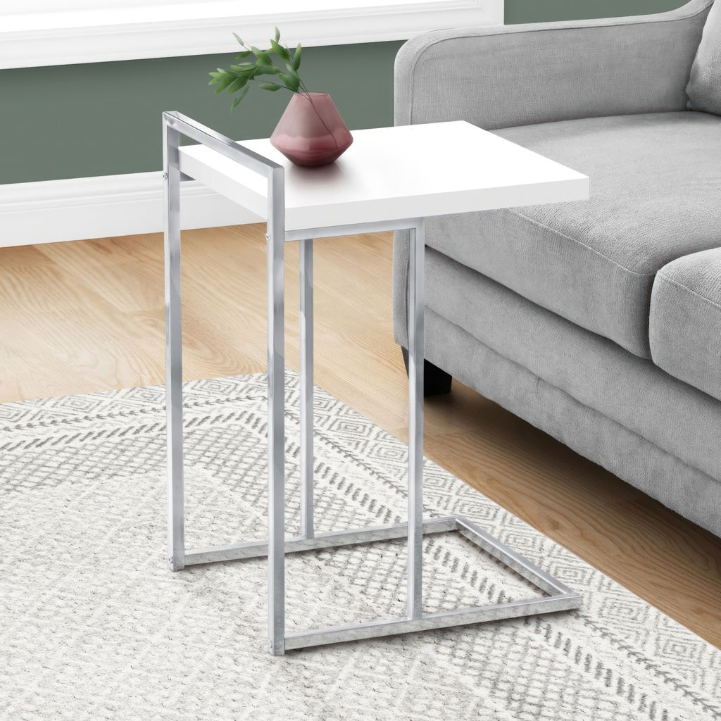 Cette table d'appoint en forme de C apporte quelque chose de plus à la table. Le dessus de table à panneaux épais dans un fini blanc lustré offre une surface plus large que la plupart des tables de taille C standard.