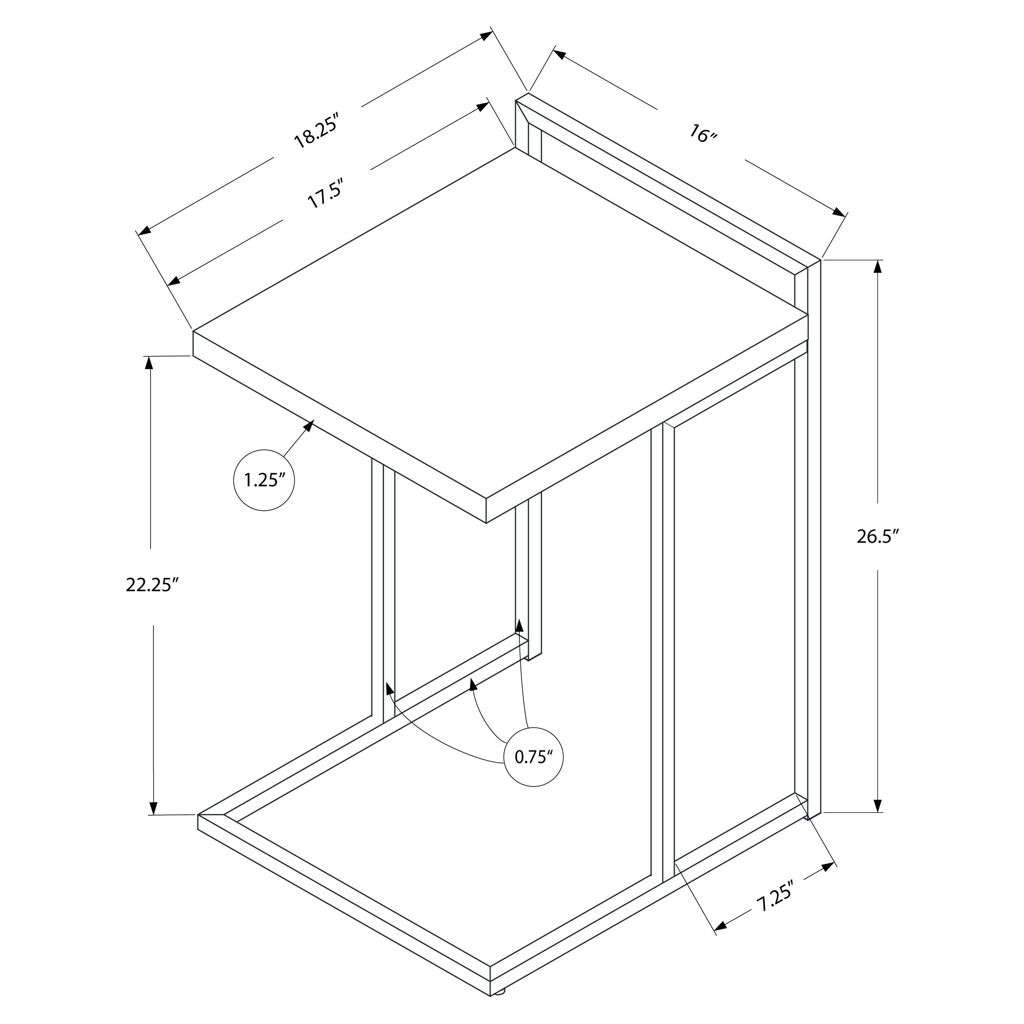 La base en métal chromé se glisse sous un canapé ou un lit pour rapprocher les articles de vous et offre une autre caractéristique pratique: le haut du cadre s'étend sur le dessus de la table pour créer une poignée qui facilite le levage et le déplacement de cette table d'appoint portable.