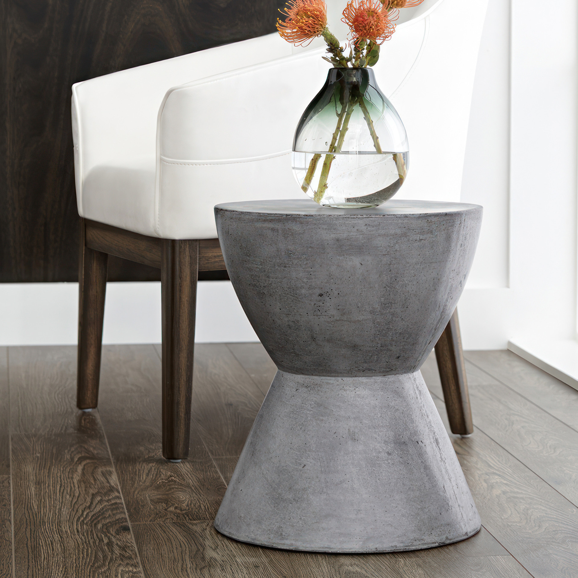 Une table de bout ronde sculpturale conçue pour les espaces contemporains et urbains. Fabriqué en béton au fini unique pour un look industriel. Cette table d'appoint est disponible en noir, blanc et gris anthracite. Fabriqué à partir d'un mélange de béton naturel, chaque pièce aura un aspect différent, avec des variations de teintes qui s'amélioreront avec le temps.