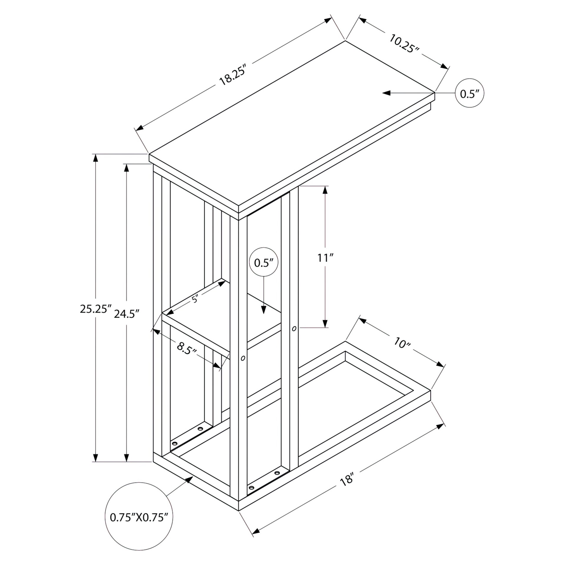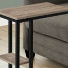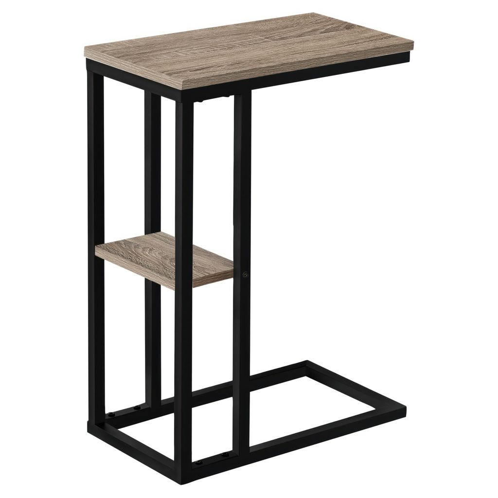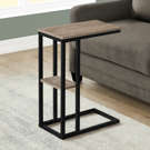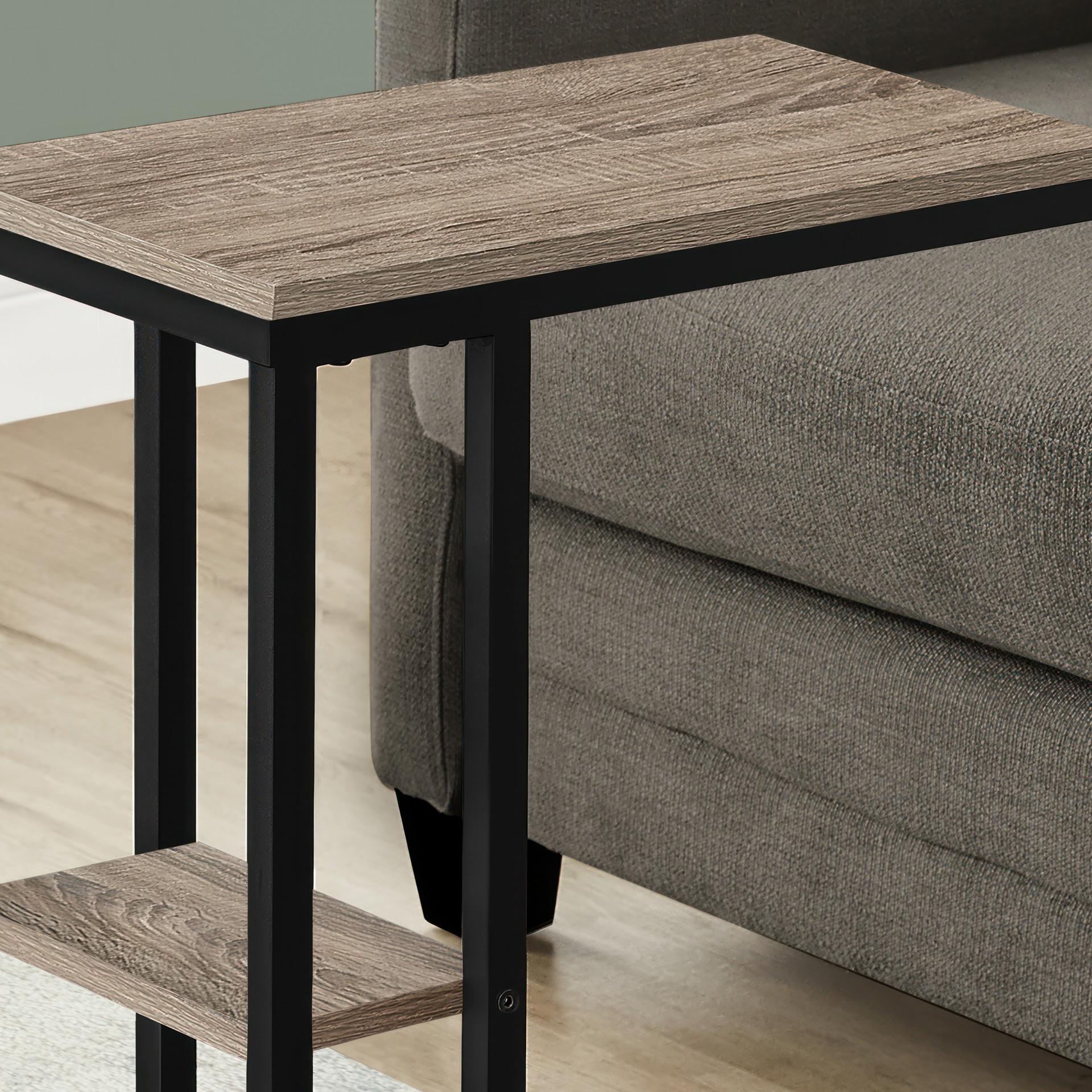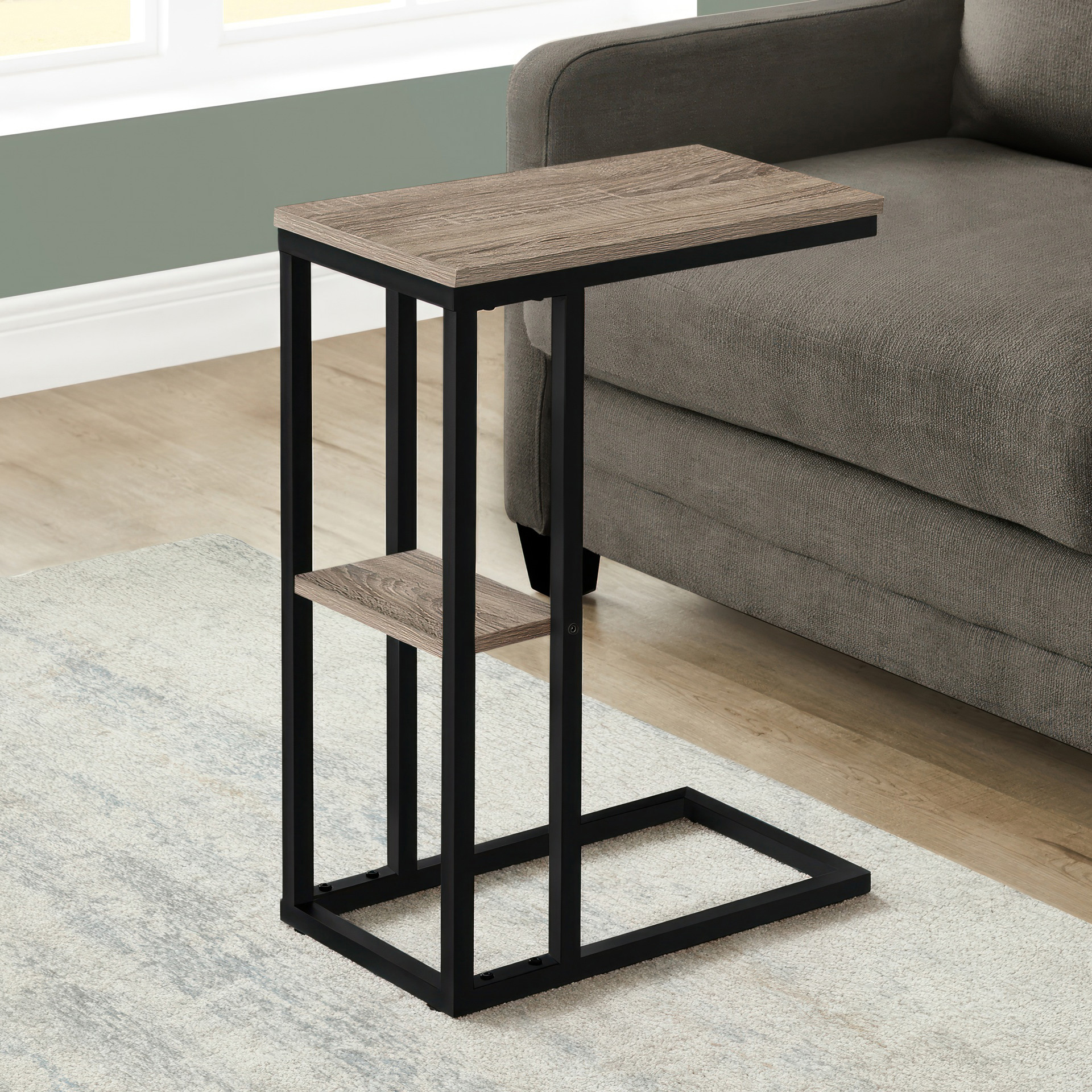 Ses lignes droites et ses angles droits donnent à cette table d'appoint en forme de C un look élégant et moderne. La table rectangulaire de couleur taupe foncé est supportée par un cadre en métal noir. Elle comprend une étagère sous la table permettant de ranger des petits objets. Faites glisser cette table d'appoint polyvalente sous un canapé ou une chaise pour des y servir des collations ou placer des appareils mobiles. Elle peut aussi être utilisée comme table d'appoint à côté d'un lit.