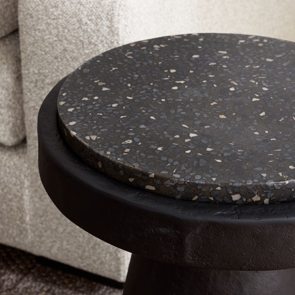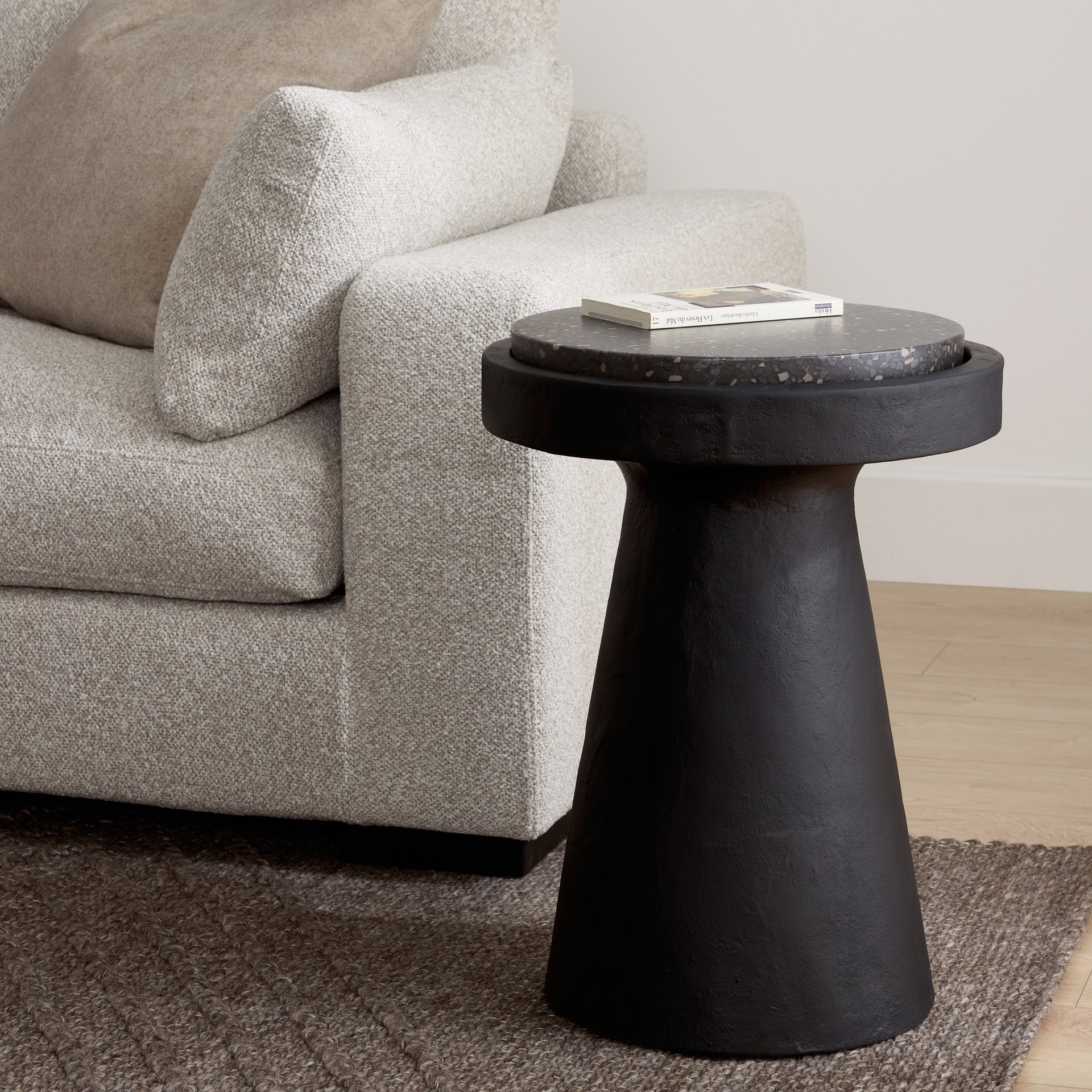 Brut mais raffiné. La table d'appoint Book est tout au sujet des matériaux, un affichage de ciment et de terrazzo combiné à une palette de couleurs sombres et maussades. Son socle en ciment sculpté a une allure rustique artisanale, avec une silhouette qui rappelle l'Antiquité. Un socle optimal pour vos boissons, bibelots ou (naturellement) livres, le plateau de table est en terrazzo noir magnifiquement moucheté. Parfaitement imparfaite, la table d'appoint Book ajoutera une touche tactile à n'importe quel espace de vie.