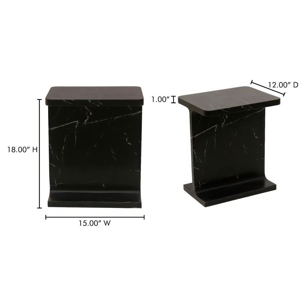 La table d'appoint Tullia allie architecture moderne et luxe. La forme en marbre noir et poutre en I est une intersection de design et de fonctionnalité, polyvalente dans sa fonctionnalité. Un mélange parfait de style et d'élégance, la table d'appoint Tullia ajoute une touche intemporelle à n'importe quel espace.