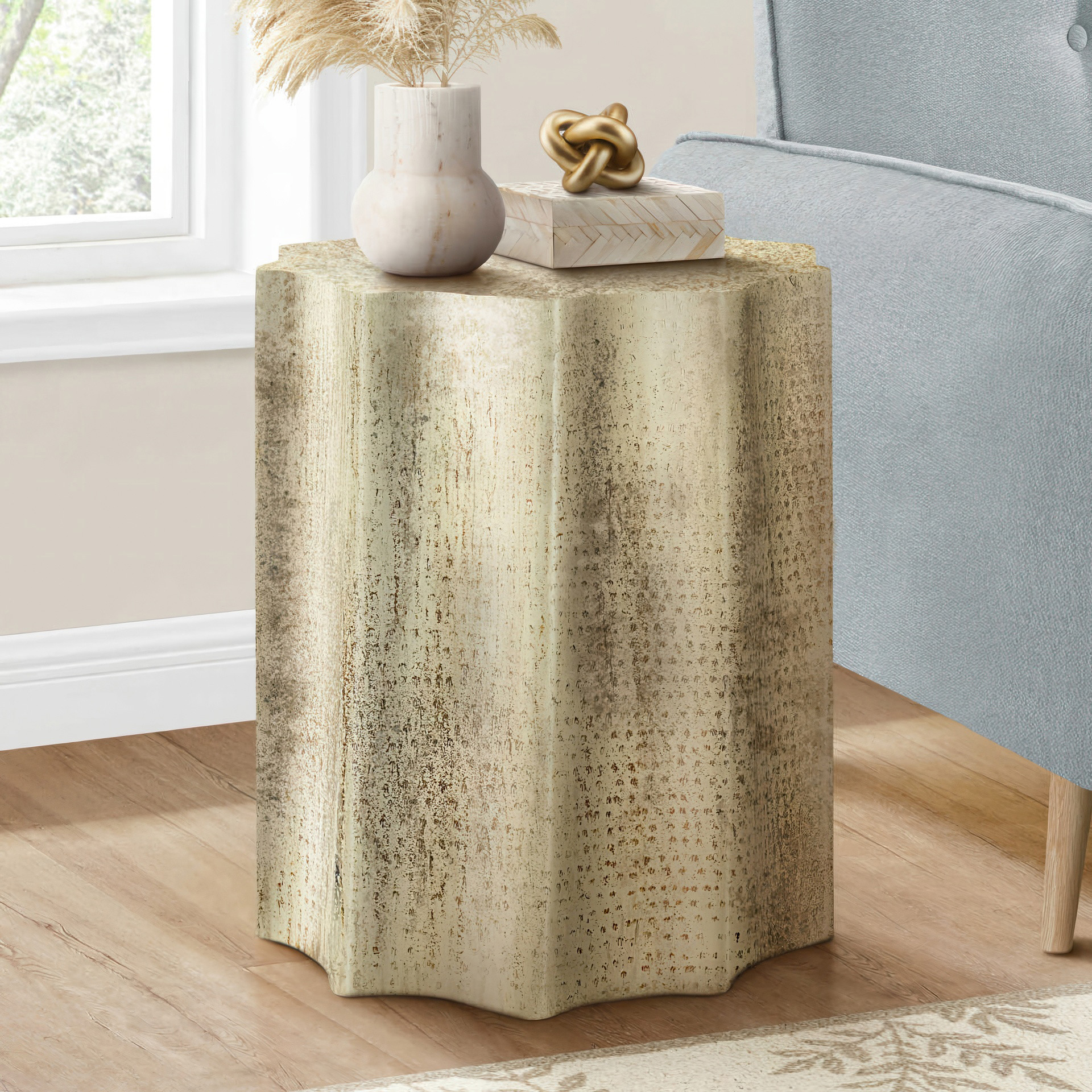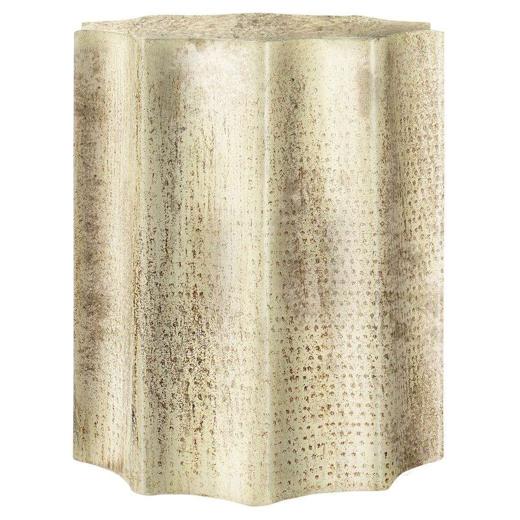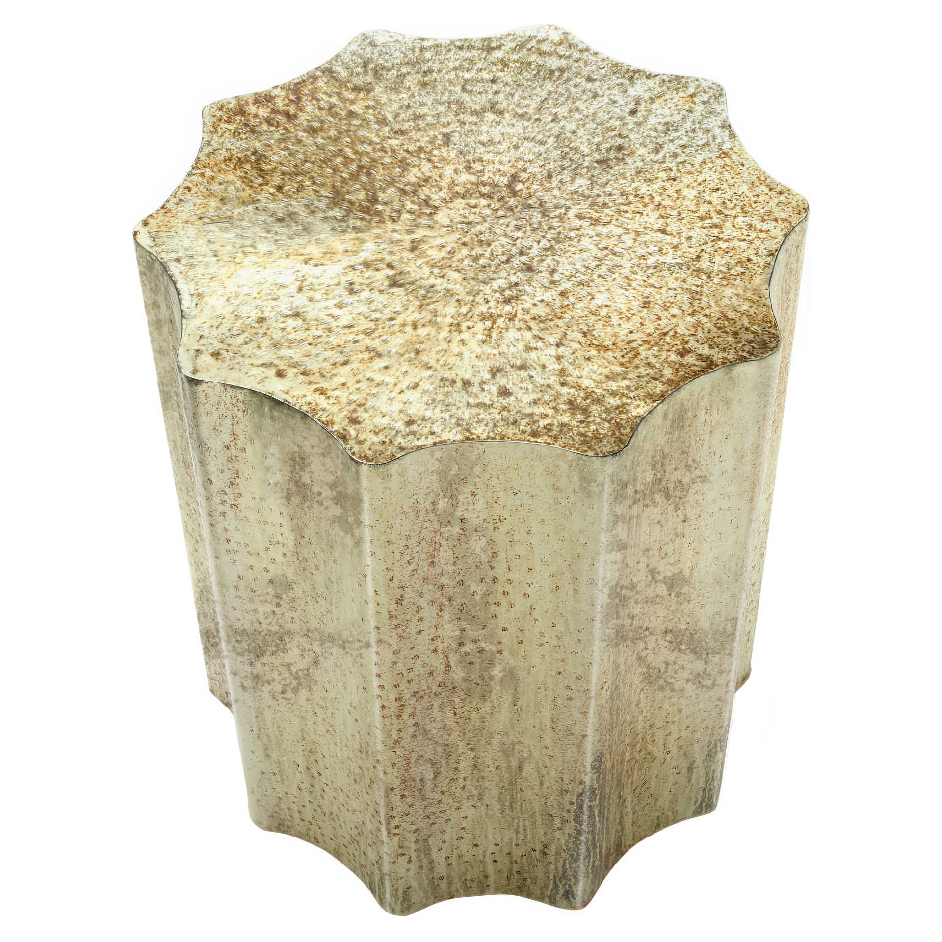 Avec un design festonné unique, cette table tonneau de 22 pouces d'hauteur avec une finition métallique dorée antique apportera une touche d'élégance à votre salon ou à votre chambre à coucher.