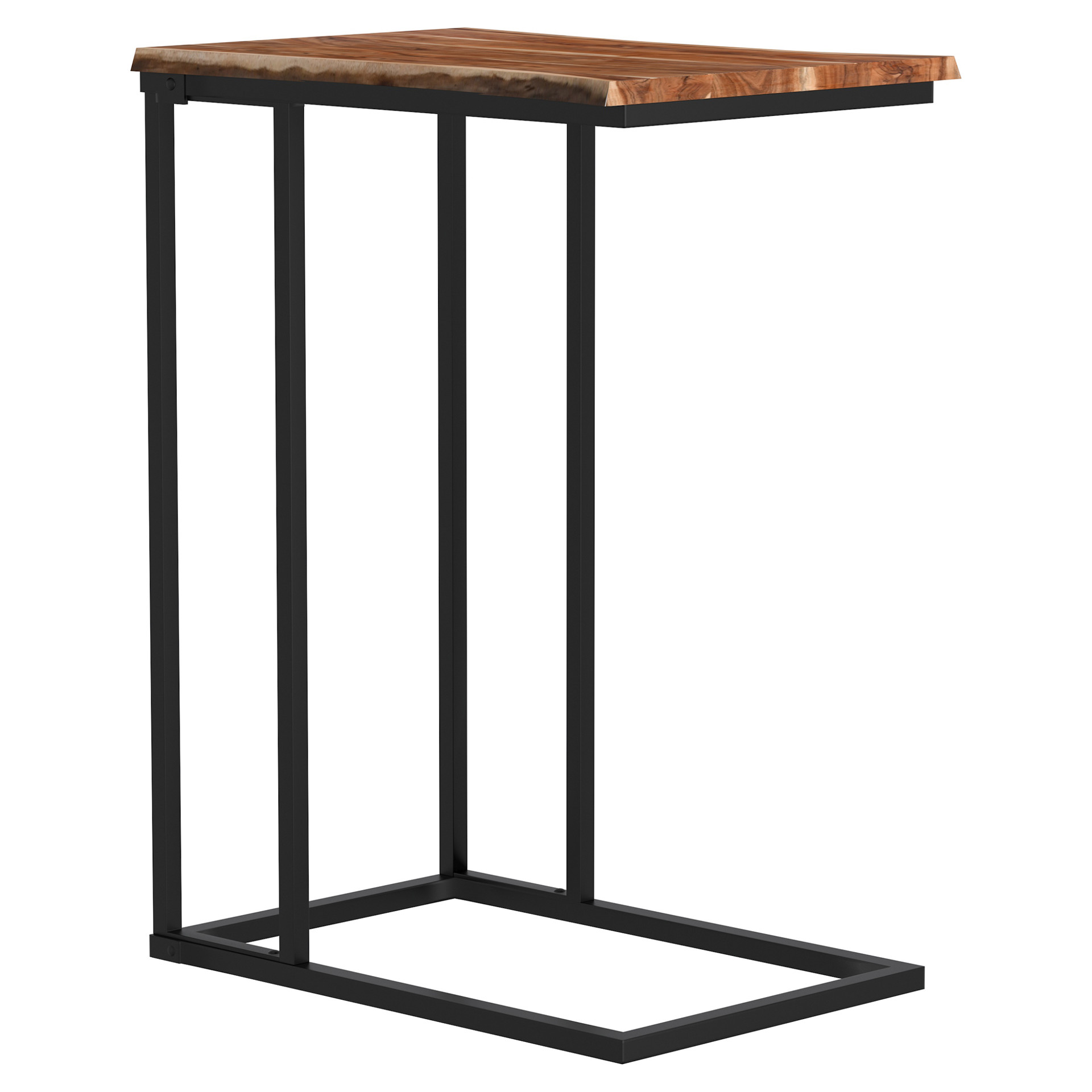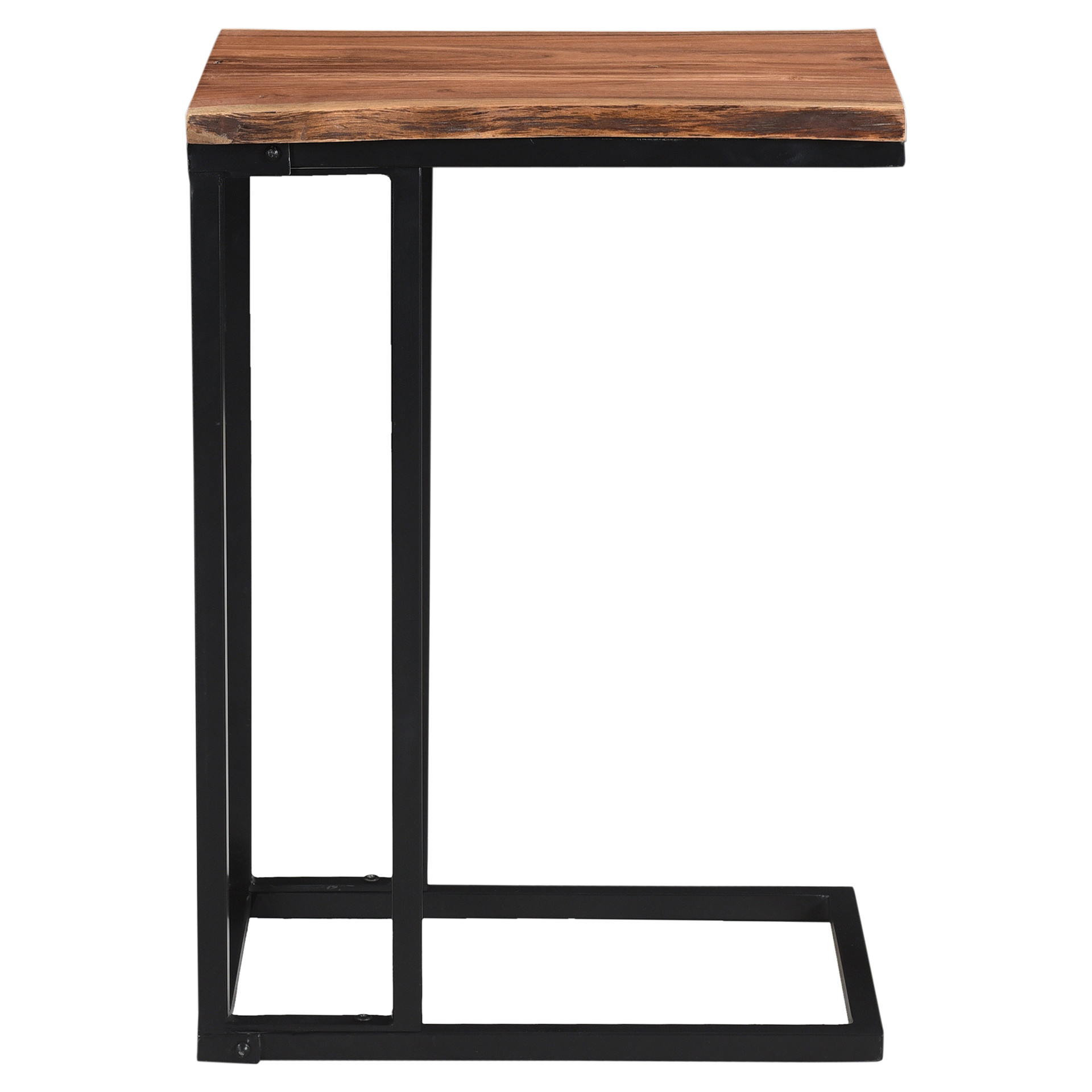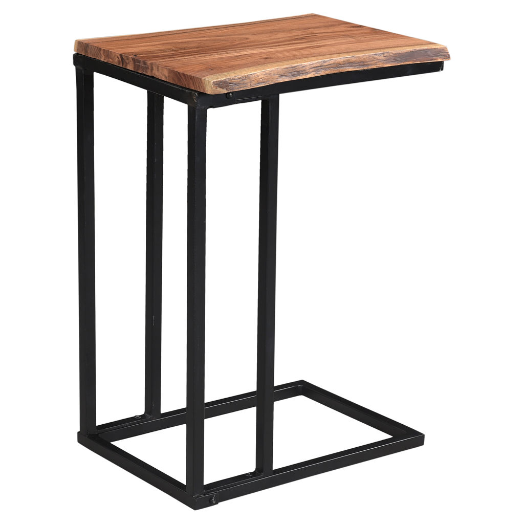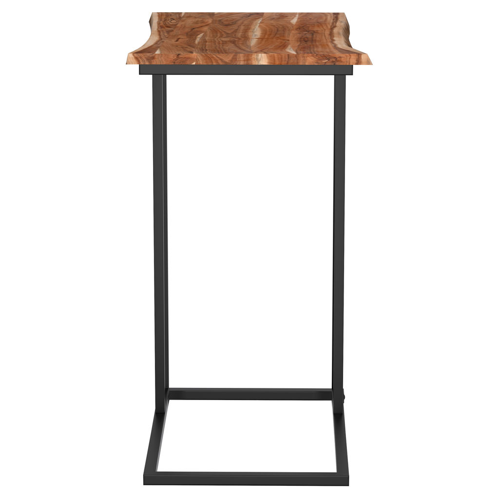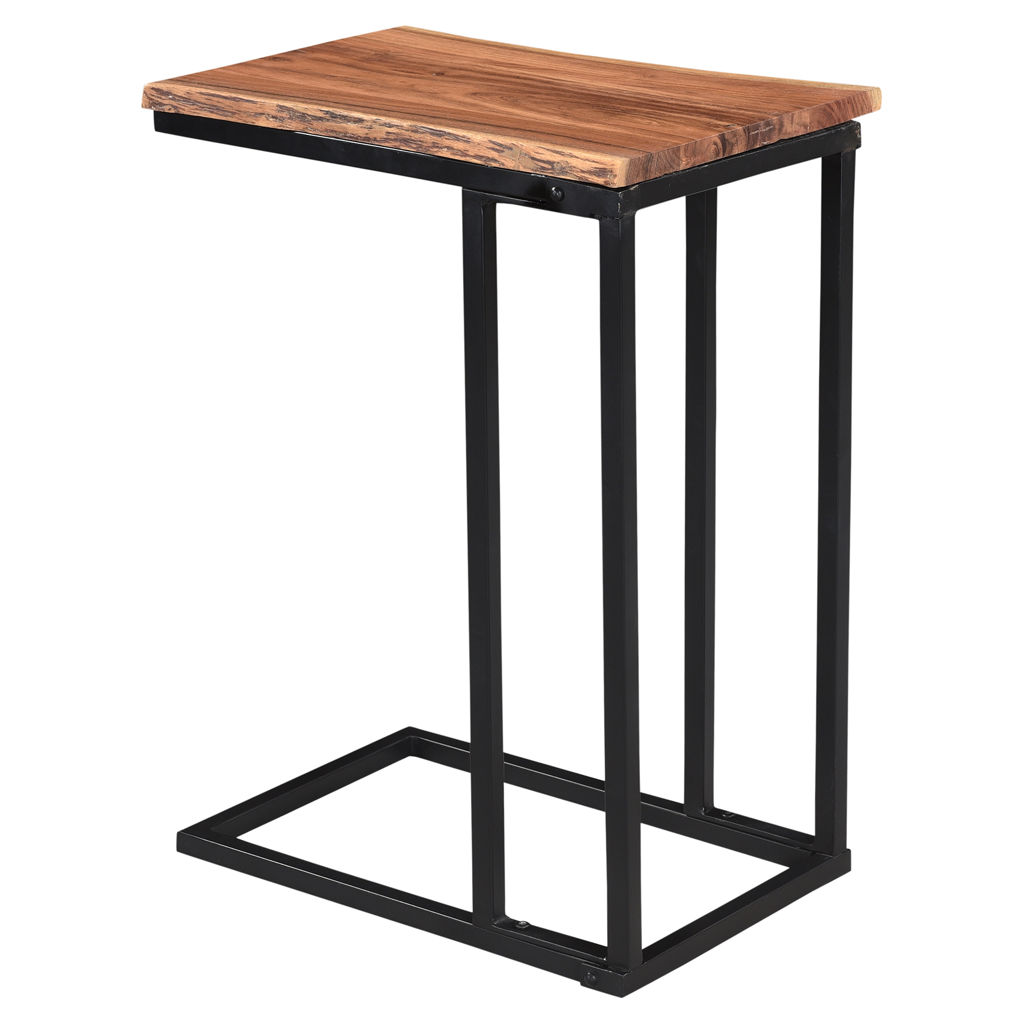 Cette table d´appoint en C, arbore un magnifique dessus de table en bois d'acacia massif avec des détails avivés qui repose sur un cadre en fer noir solide assoyez-vous et profitez-en!