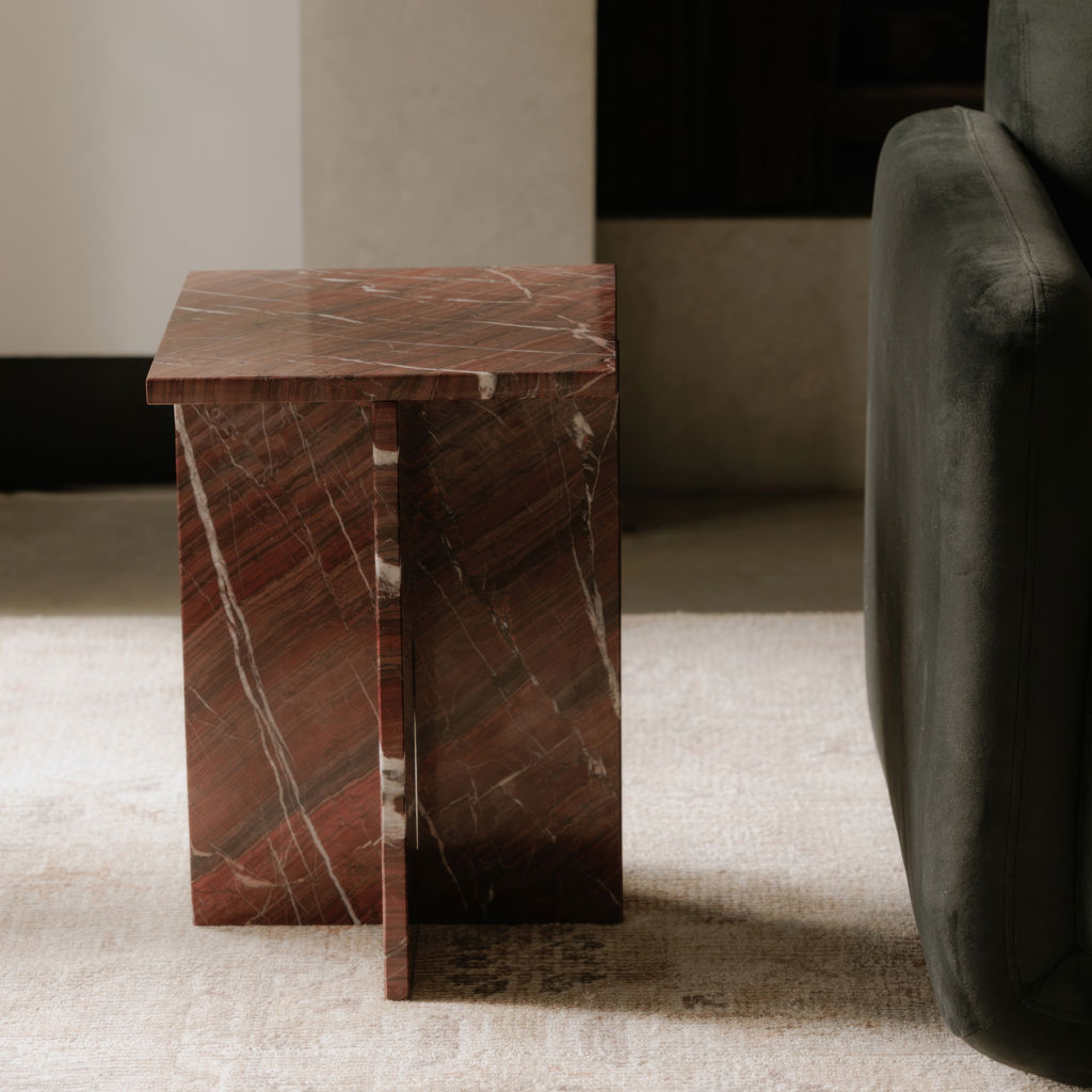 Le design épuré et linéaire de la table d'appoint Blair accentue l'allure captivante de la construction en marbre aux couleurs expressives.
