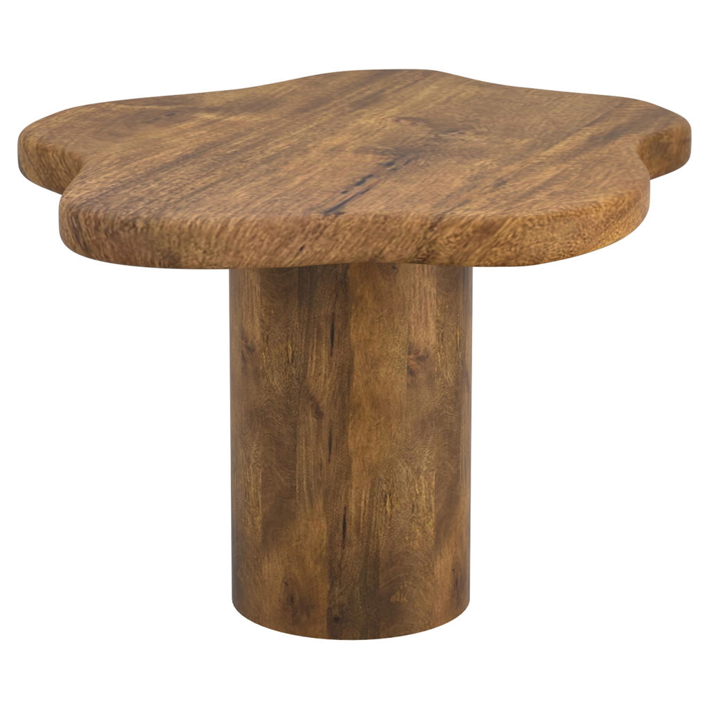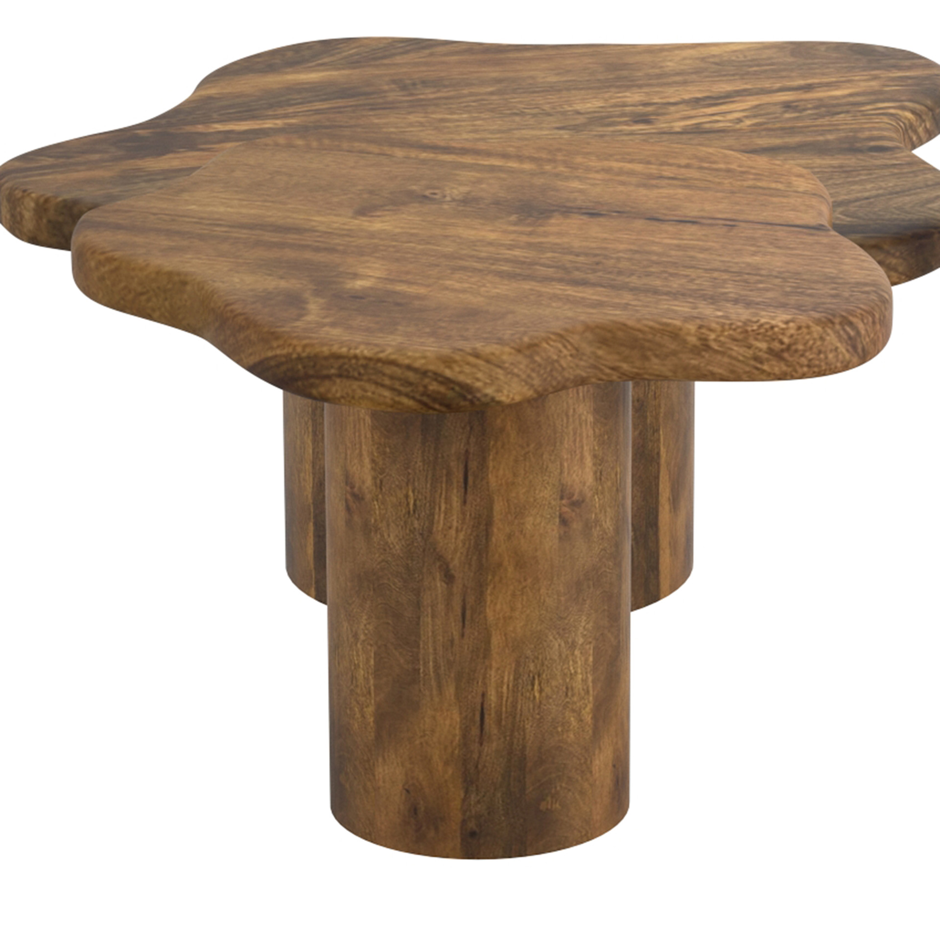 Ne faites qu'un avec les éléments avec cette table fluide inspirée du design. La construction en bois de manguier massif est issue de sources durables et est parfaitement finie avec une finition en noyer naturel. Les détails du grain du bois sont toujours visibles, ce qui permet un mélange harmonieux avec des styles de décoration modernes ou plus rustiques ou bohèmes. La petite table basse est parfaite seule ou imbriquée à côté de la grande table coordonnée
