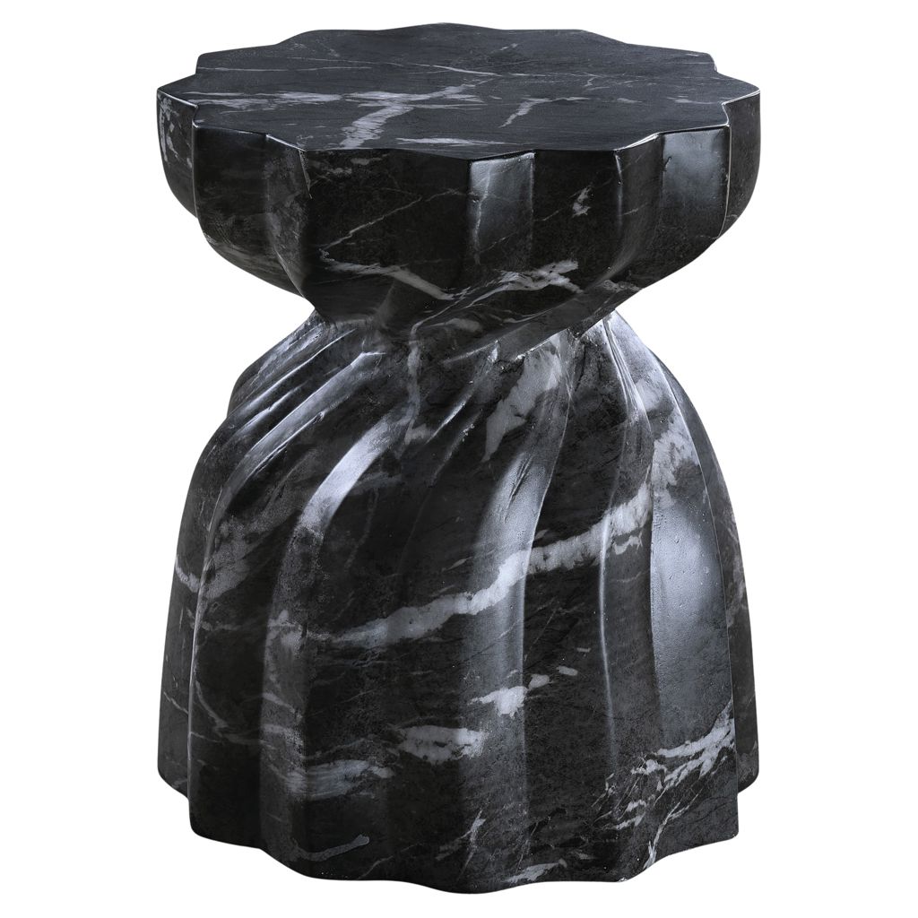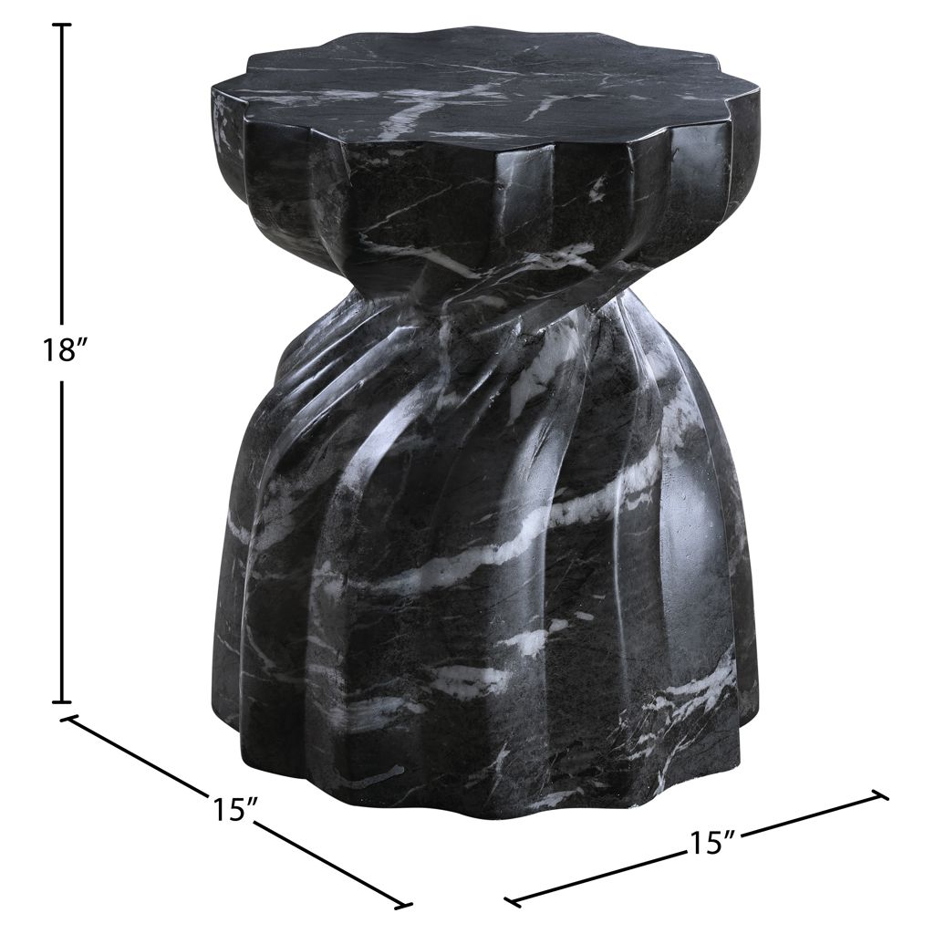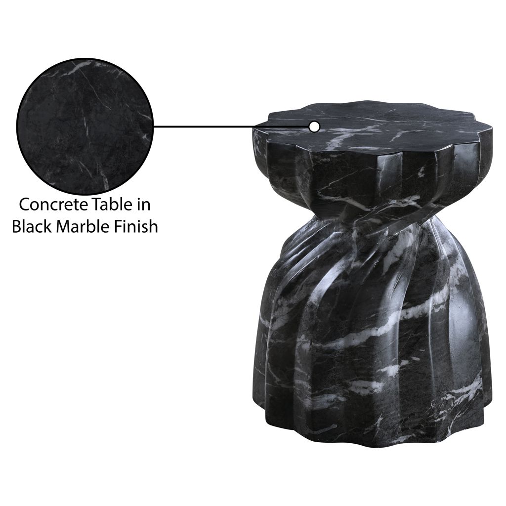 Laissez-vous tenter par le charme de la table de bout en béton au fini marbre Caserta. Son design captivant et sa finition noire luxueuse rehaussent n'importe quel espace avec une élégance sans effort.