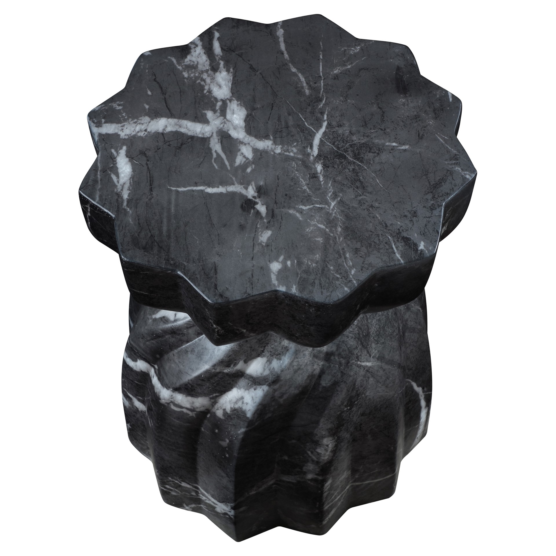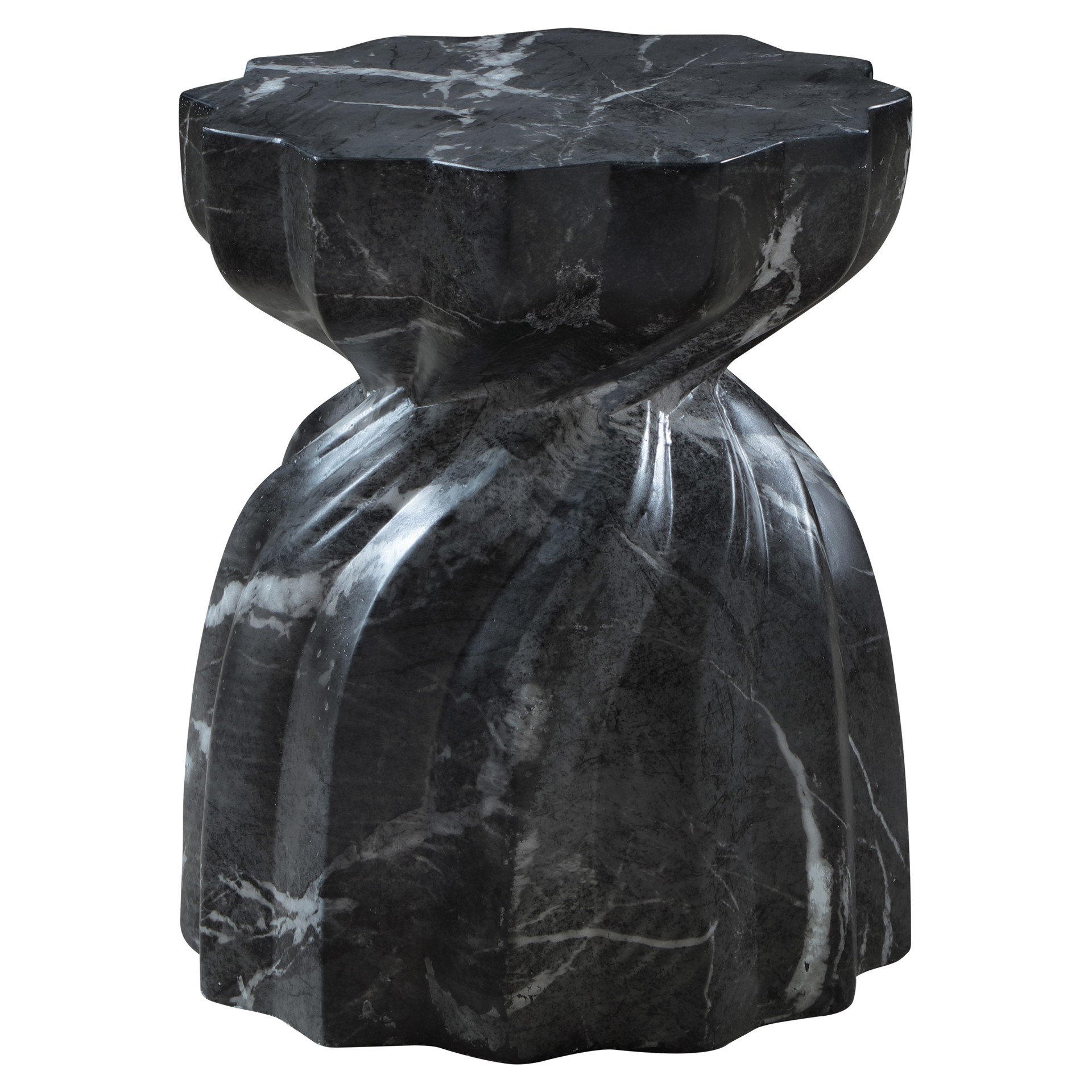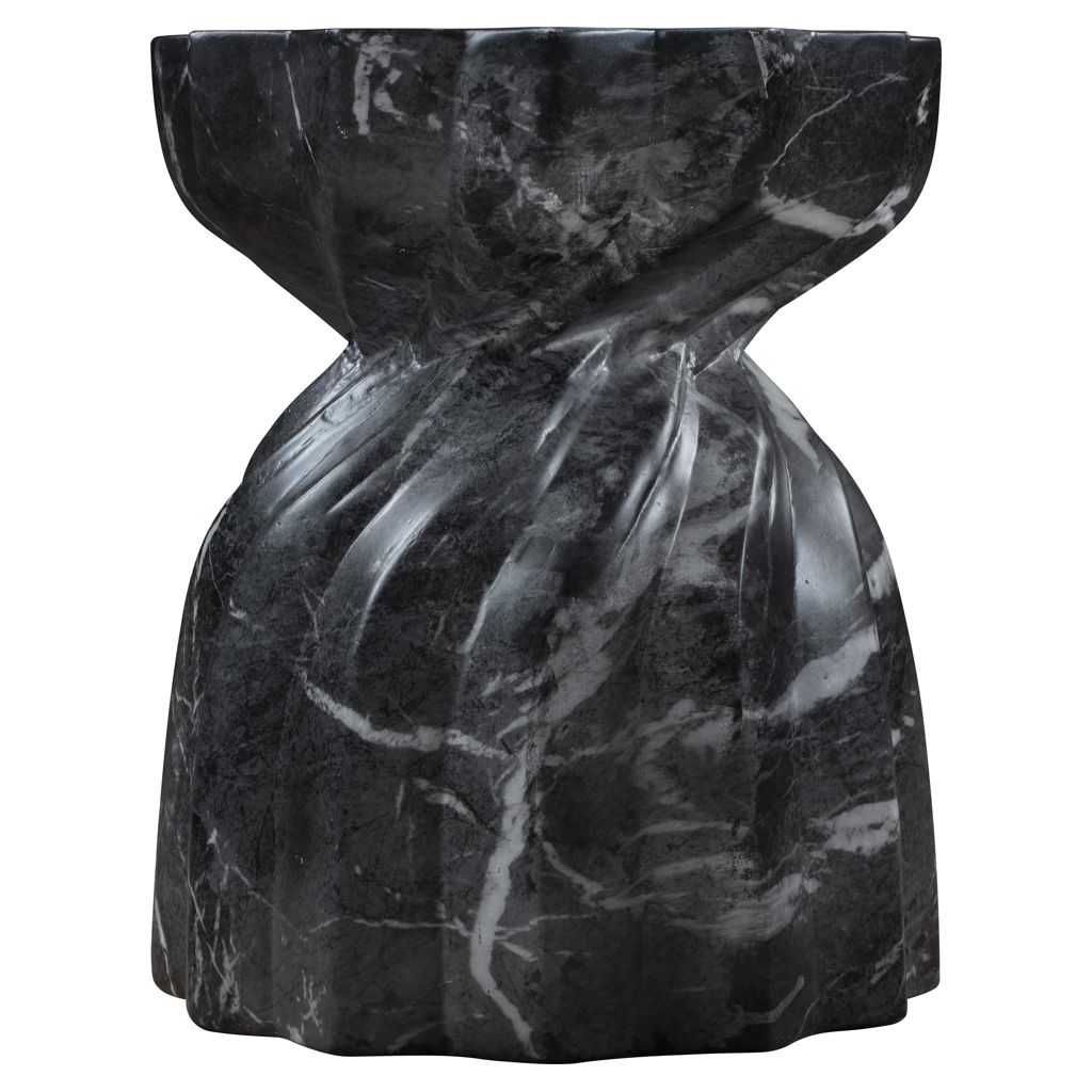 Laissez-vous tenter par le charme de la table de bout en béton au fini marbre Caserta. Son design captivant et sa finition noire luxueuse rehaussent n'importe quel espace avec une élégance sans effort.