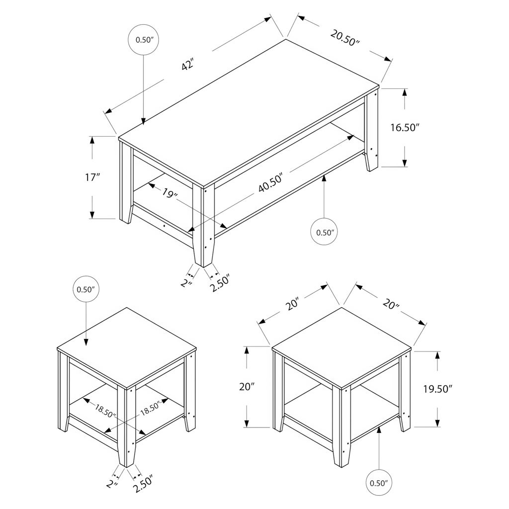 Ensemble de 3 tables de salon Monarch Specialties I 7992P