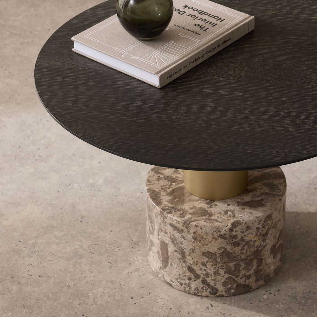 Cette table basse allie harmonieusement trois matériaux nobles pour créer une pièce d'exception dans votre salon. Son plateau en bois sombre aux nuances riches offre une surface généreuse et élégante, parfaite pour vos moments de détente.